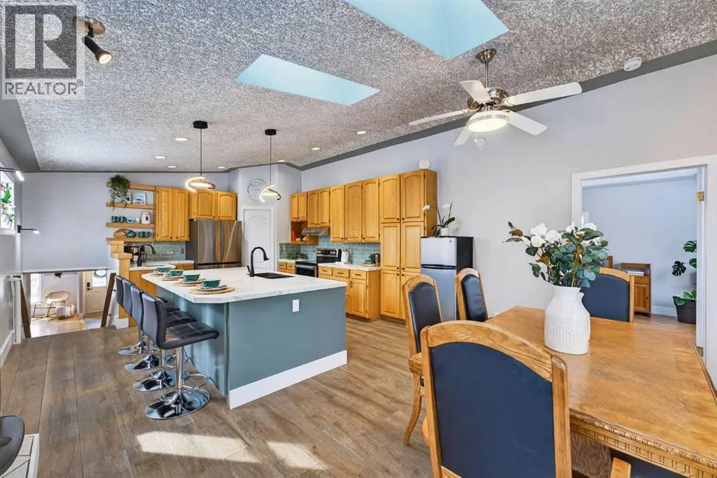 Lovingly cared for by one incredible family, this charming and spacious home in Fairview offers over 1,900 sq ft above grade and more than 2900 sq ft of total developed living space. With a flexible layout and separate side entry to the basement, this property offers excellent potential for multigenerational living or for families seeking space, comfort, and convenience in the well-established central community of Fairview.The main floor features a comfortable, open-concept living room with a gas fireplace, offering flexible use as a sitting area, dining space, or family gathering area. This level includes three bedrooms with large windows, one with access to the front porch through new sliding glass doors, perfect for a home office. Laundry is conveniently located on the main floor along with a 4-piece family bathroom.Up a few steps youâll find the sun-filled primary retreat, complete with vaulted ceilings, a cozy window seat, walk-in closet, and ensuite with dual vanity.The renovated kitchen is a true standout, featuring a huge island, quartz countertops, abundant cabinetry and pantry storage, stainless steel appliances (2024), skylights, and a second fireplace. The eating area opens to a deck overlooking the beautifully landscaped backyard with a peaceful pond, garden beds, greenhouse, and hot tub.The lower level offers incredible additional space, including two more bedrooms, a large recreation area, and a spacious bathroom with a jetted tub. Whether for movie nights, games, a home gym, or hobbies, thereâs room for it all. The separate side entrance provides added flexibility and future potential.Step outside and enjoy a yard that feels like your own private park, complete with mature trees, gardens, pond, and relaxing outdoor spaces including the sunny west-facing front deck, perfect for entertaining or watching the kids play.Parking and storage are plentiful with a large driveway, double garage, and carport.Recent updates include 23 solar panels (202 4) for excellent energy efficiency. Home owners RECEIVED a $1700 CREDIT in 2025 from their utility provider and paid $285.00 for ELECTRICITY IN 2025 while running a kiln and hot tub. Roof (2022), hot water tank (2020), and stainless steel appliances (2024). Ideally located near schools from Kâ12 including Fairview Bilingual School, shopping and amenities at Deerfoot Meadows and Chinook Centre, and outdoor recreation at Fish Creek Provincial Park.A truly special home in a fantastic location - book your showing today to truly appreciate this property's charm. (id:27476)
