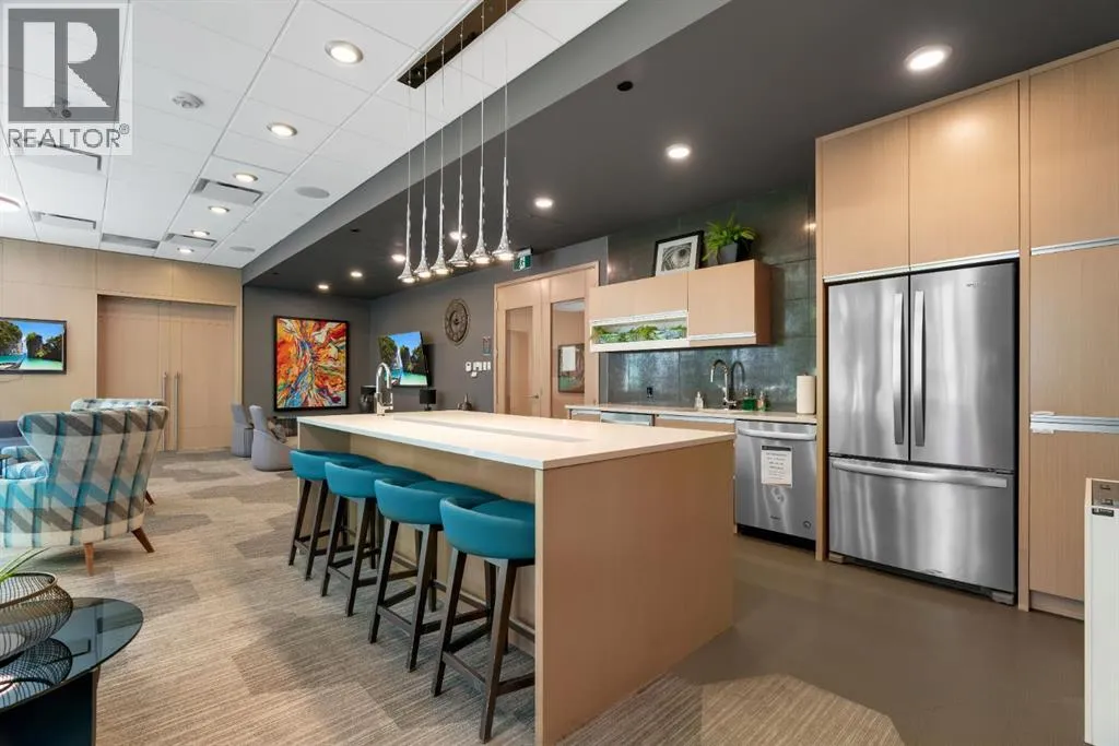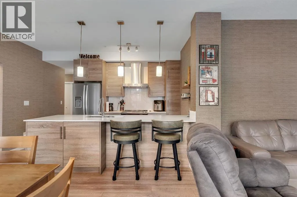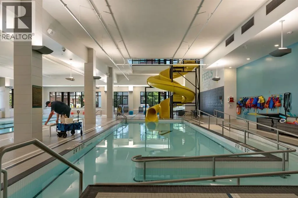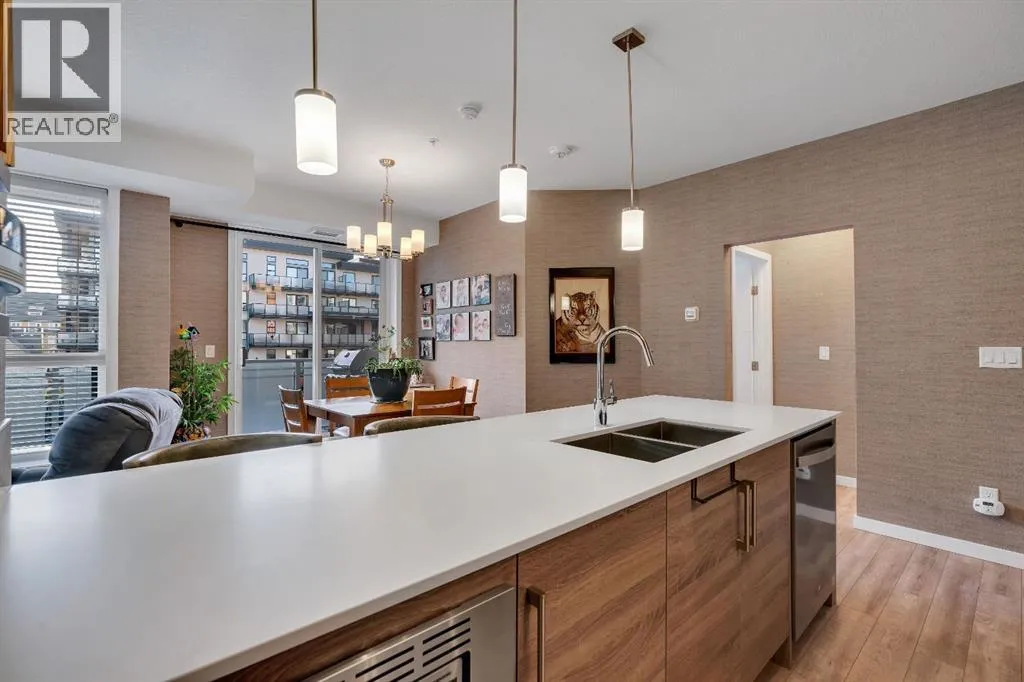 Welcome to Calligraphy with resort style living at Westman Village on Mahogany Lake. This fabulous corner unit has two bedrooms, 2 full bathrooms and two parking stalls, one with private storage. The former show suite updates add character in this well-appointed unit. The living/dining room combination has west facing windows to allow the sun to shine in. The kitchen features sliding drawers and a breakfast bar with built-in storage. The primary bedroom accommodates a king-sized bed with room for a dresser, and it has two closets and a 3-piece ensuite with a walk-in shower. The second bedroom is located at the other end of the unit and is great space for an additional sleeping, office, den or craft room and has a walk-in closet for additional storage. There is a 4-piece main bathroom adjacent to the second bedroom. Sliding doors off the dining room lead to a wrap-around, west-facing balcony overlooking the courtyard with a water feature. The unit has additional storage with a pantry and a laundry area. This unit also has two underground titled parking stalls; one has a private storage room. Now letâs talk about the 40,000SF Village Centre and its many amenities, it is a must see, ask the concierge for your tour. In the amenity center, you will be able to enjoy the lane pool, activity pool, hot tub, steam room, exercise room, full gymnasium, theatre, industrial kitchen, virtual golf, party room, billiards and darts, craft room, woodworking shop, library, green thumb room, walking track, wine room, fire pit, playground, car wash, dog wash and there are electric vehicle charging stations. Also located in the complex are your favourite retailers, award winning Chairmanâs Steakhouse and Alvinâs Jazz Club, more restaurants, amenities. A 5-minute walk to Sobeys and more shops. The complex is located on Mahogany Lake with its unique pathways. You will be able to enjoy the Mahogany Beach Club and all it has to offer. Call today and come view this fabulous unitâ¦. donât just m ove to a condo, move to a lifestyle! Welcome Home! (id:27476)