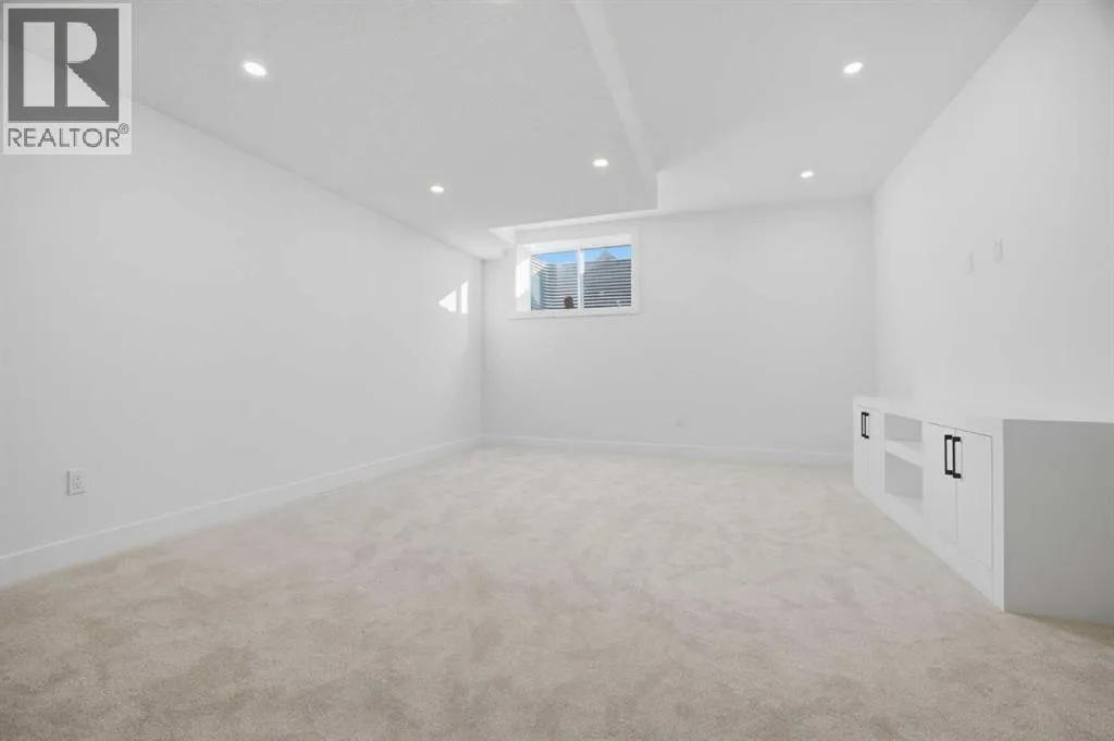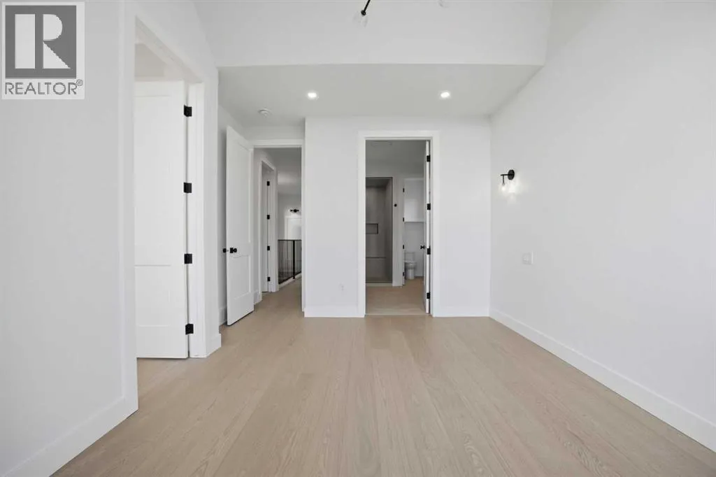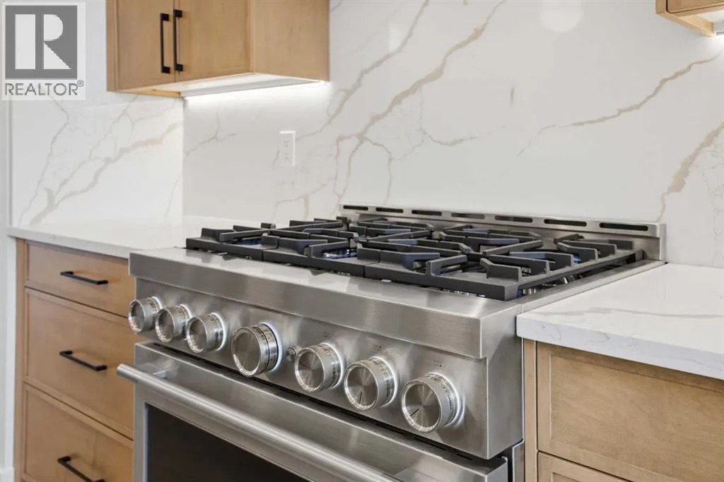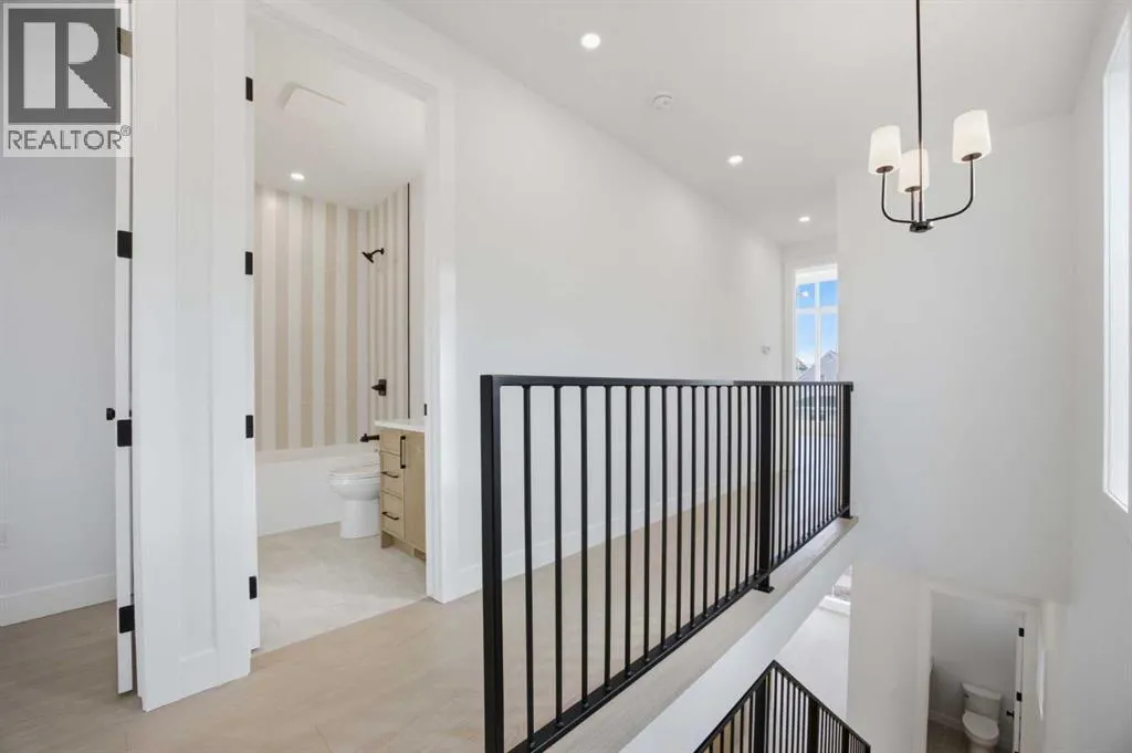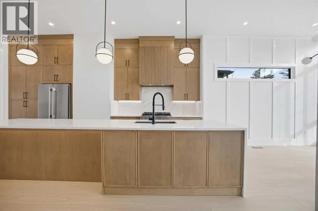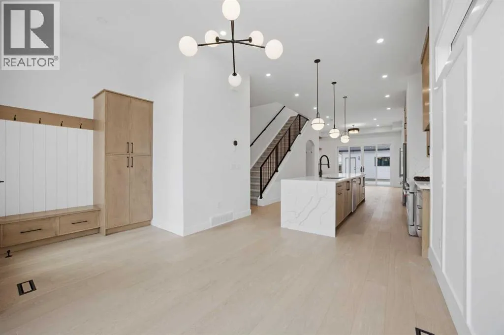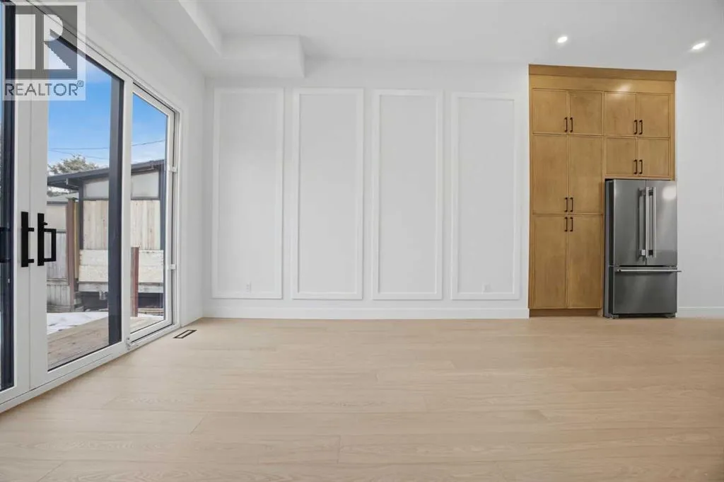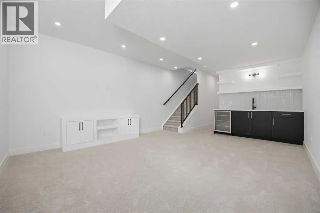 ***OPEN HOUSE: Saturday, April 4 1:00-4:00pm & Sunday April 5 1:00-4:00pm***. Welcome to Ramsay and its newest luxury infill on the picturesque 23 Ave SE. This exceptional home blends architectural character with modern design, creating timeless curb appeal with its triple-arch front elevation, detailed masonry, and durable Hardie Board siding, all complemented by clean, low-maintenance landscaping.Step inside and you will immediately notice the scale and craftsmanship that make this home stand out. The main floor features impressive 11-foot ceilings, a striking 10-foot custom entry door, and 10-foot Lux windows that fill the space with natural light. The open-concept layout is centered around a stunning 14-foot quartz waterfall island and micro-shaker cabinetry, creating the perfect space for both everyday living and entertaining. A cozy gas fireplace and a beautifully designed powder room add character, while continuous site-finished engineered hardwood flooring ties the entire level together.Upstairs you will find three bright and spacious bedrooms, thoughtfully designed for comfort and functionality. The primary suite feels like a private retreat, highlighted by a soaring 13-foot vaulted ceiling. The spa-inspired ensuite features heated tile floors, and the custom walk-in closet is finished with a dramatic barrel ceiling and continued hardwood flooring.The fully developed basement offers even more space to relax and entertain. It includes a fourth bedroom, a large recreation room, and a stylish cocktail bar that is perfect for hosting guests.Located just steps from downtown, breweries, coffee shops, restaurants, parks, and a Kâ6 school, this home offers an ideal blend of lifestyle and convenience. (id:27476)