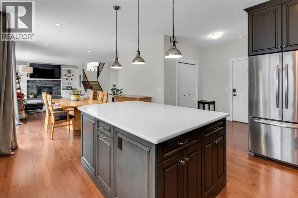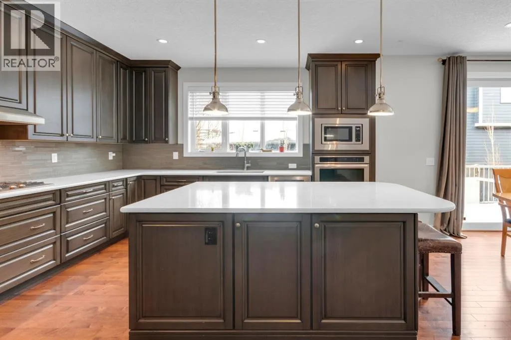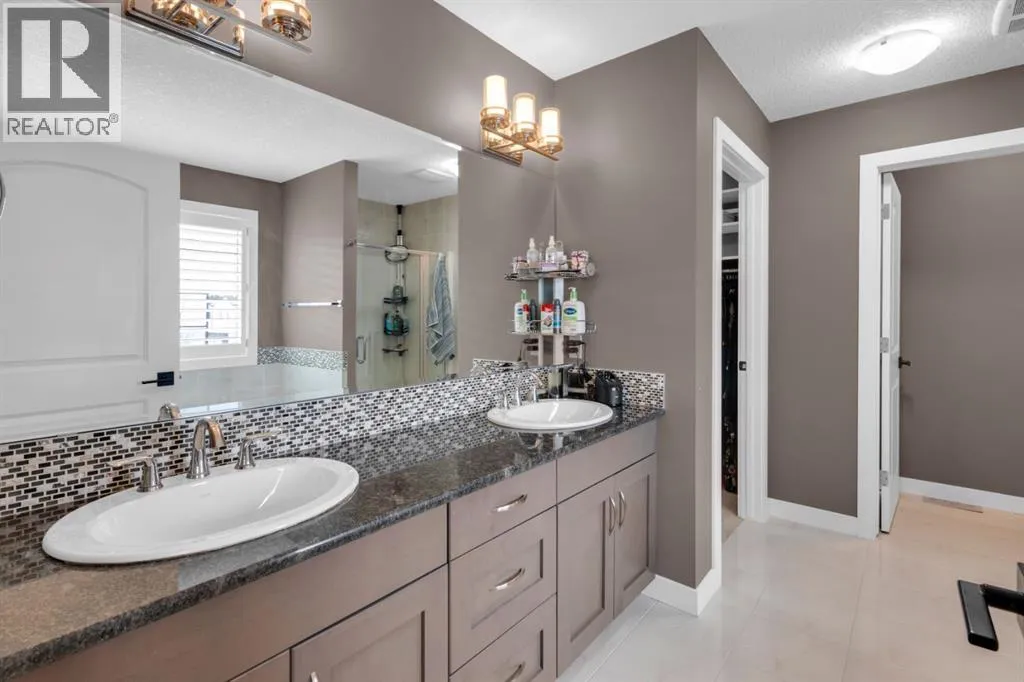 Welcome to the sought-after community of West Springs! This beautifully designed home offers over 3,000 sq. ft. of developed living space and the rare convenience of an ELEVATOR accessing all three floors. The upper level features two spacious primary suites, one with a luxurious 5-piece ensuite and the other with a 4-piece ensuite, plus a large bedroom or bonus room. The main floor boasts a grand foyer, chefâs kitchen with quartz countertops, and a warm, inviting living room with gas fireplace and custom built-in shelving. Large windows with motorized blinds fill the home with natural light and lead to the back deck with motorized awning. The fully developed basement includes a bedroom, 3-piece bath, and an oversized storage room with a large window, offering potential for an additional bedroom. Situated on a quiet street with fantastic neighbours, and within walking distance to schools, parks, shopping, and playgrounds. Seeing truly is believingâcome experience everything this exceptional West Springs home has to offer. (id:27476)