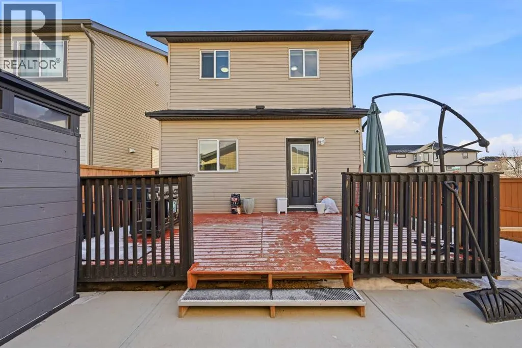 Welcome to your new home! Situated on a prime corner lot in the vibrant NE community of Skyview Ranch, this 2-story residence offers the perfect blend of modern comfort and smart investment potential. Step onto the charming front porch and into an inviting main floor bathed in natural light. The open-concept layout features a spacious living area and a bright dining zone framed by an oversized window. The upgraded kitchen is a chefâs delight, boasting sleek stainless steel appliances, extensive cabinetry, and a dedicated pantry for extra storage. A convenient 2-piece powder room completes this level. The upper floor serves as a private retreat, featuring a large primary suite with a private ensuite and a walk-in closet. Two additional well-sized bedrooms share a full common bathroom, and the upper-floor laundry room adds a level of convenience every family appreciates. The lower level (illegal suite) is a massive value-add, featuring a separate side entrance, its own kitchen, a full bathroom, a bedroom, and a sprawling living areaâperfect for extended family. Outside, enjoy summer hosting on your massive deck within a low-maintenance yard, leading to an oversized double detached garage. Located minutes from Stoney Trail, the Airport, and local schools, this home is a must-see! Book your private showing today and discover everything Skyview Ranch has to offer. (id:27476)