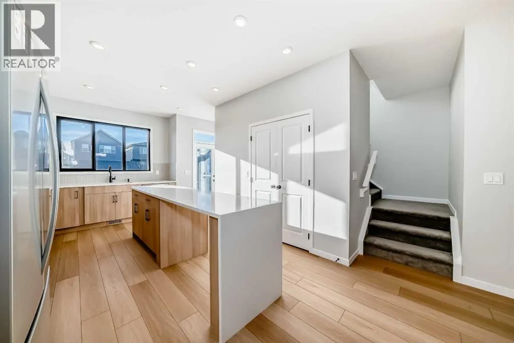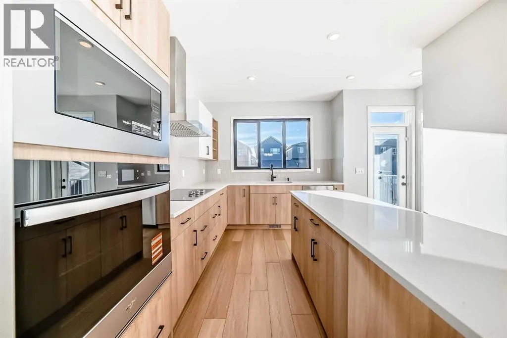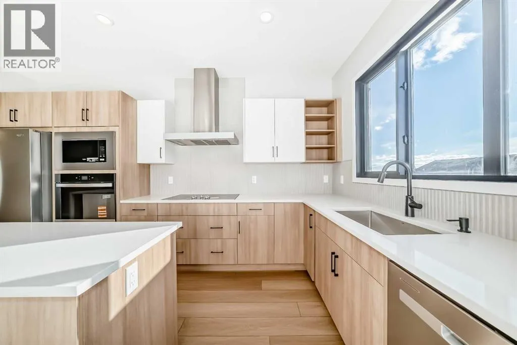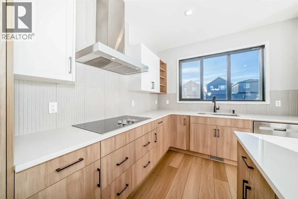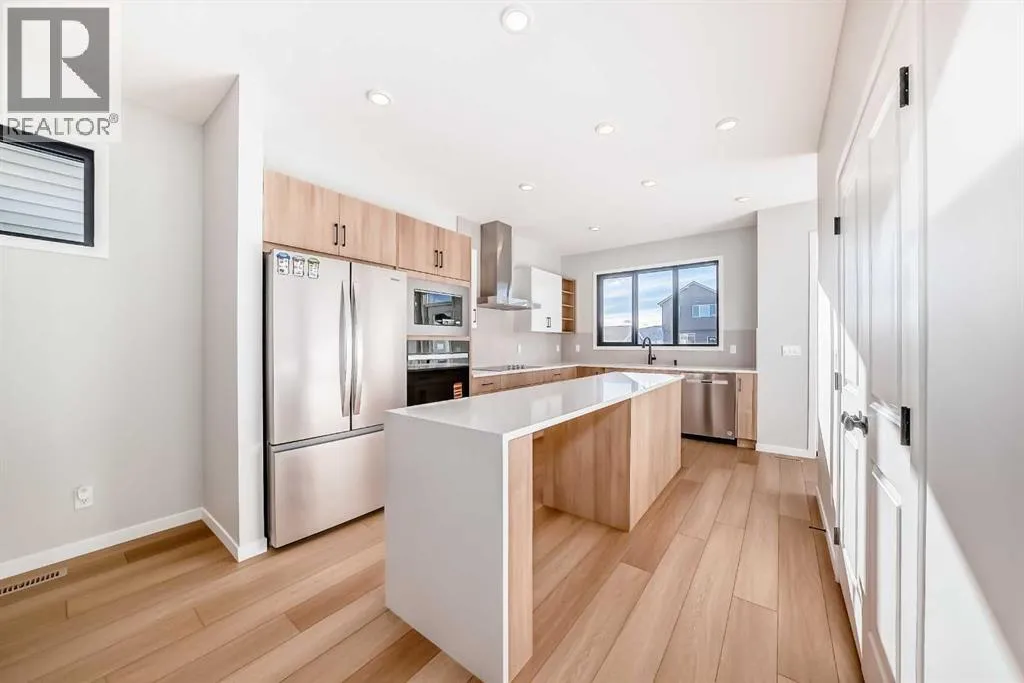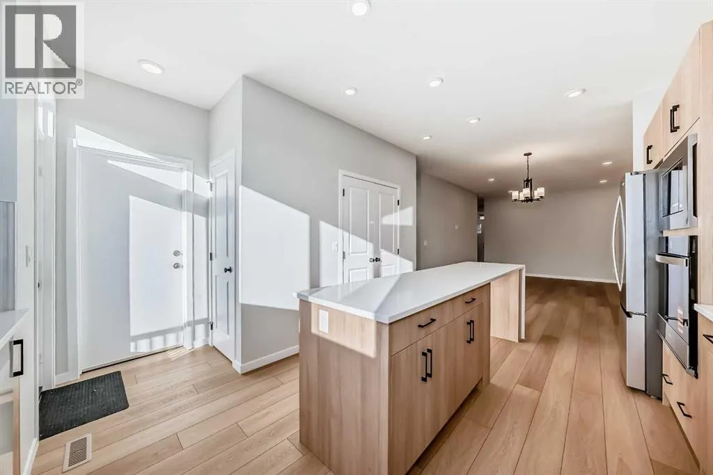Open House March 14-15 from 1-3pm. Welcome to this brand new, upgraded home in the vibrant community of Pine Creek! Known for blending nature, family living, and modern homes, Pine Creek offers scenic pathways, nearby parks, and easy access to city conveniences. This beautifully designed property features extensive upgrades throughout and is perfect for homeowners looking for a mortgage helper opportunity with its thoughtfully designed basement living space. The main floor showcases luxury vinyl plank flooring throughout the entire main and second floor, a spacious layout, and a gorgeous extended kitchen with two-tone cabinetry, waterfall island with additional cabinet storage, upgraded backsplash tiles, built-in appliances, and a modern upgraded hood fan. A larger walk-in pantry adds both convenience and storage. The home also features upgraded black window frames, adding a striking modern exterior and interior aesthetic. A versatile additional room on the main floor is complemented by a full bathroom with an upgraded standing shower and full wall tile finish, perfect for guests or multi-generational living. Upstairs, youâll find spacious bedrooms and an upgraded ensuite featuring a beautifully finished standing shower with full wall tiles. The extended basement bedroom enhances the lower levelâs functionality, making it ideal for extended family or rental potential. Both the main floor and basement kitchens feature stylish two-tone cabinetry, creating a cohesive and upscale look throughout. Additional highlights include: Upgraded washer and dryer sets for both main floor and basement, Upgraded stair carpet, Pressure-treated backyard deck with sleek black railings, Upgraded exterior stone detailing, Doorbell camera system for both the main entrance and basement entrance.This move in ready home combines style, functionality, and income potential in one of Calgaryâs growing communities. (id:27476)