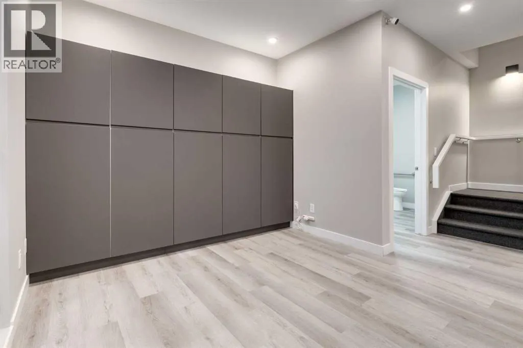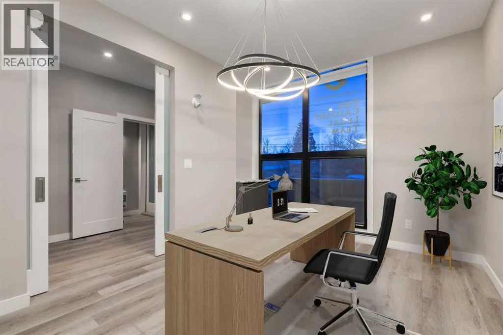 SPECTACULAR INNER-CITY MIXED-USE COMMERCIAL OPPORTUNITY ON ICONIC 17TH AVENUE SW! Located in the highly sought-after community of Bankview, this MODERN 2-STOREY CORNER UNIT w/BASEMENT offers 1,713 SQ. FT. OF DEVELOPED SPACE designed for MAXIMUM VISIBILITY, FUNCTIONALITY + PROFESSIONAL PRESENCE. Featuring 3 PRIVATE OFFICES, 2 BULLPEN WORKSPACES, 3 TWO-PIECE BATHS, A CONTEMPORARY KITCHENETTE + A PRIVATE PARKING STALL, the layout provides exceptional flexibility for a wide range of business uses.A bright, welcoming foyer finished w/LUXURY VINYL PLANK FLOORING, NEUTRAL PAINT + MODERN LIGHTING sets the tone, while built-in cabinetry enhances organization + efficiency. The first private office sits immediately to your left - ideal for a RECEPTION OR EXECUTIVE OFFICE - while the spacious bullpen further down the hall accommodates multiple desks and is complemented by a full wall of sleek cabinetry. The adaptable design allows the front office to function as a RECEPTION WITH WAITING AREA, or the rear bullpen to serve as a DEDICATED CLIENT LOUNGE, complete w/an accessible two-piece bathroom for clients + staff.Upstairs, SOARING VAULTED CEILINGS & FLOOR-TO-CEILING WINDOWS W/NORTH & EAST VIEWS flood the space w/natural light, enhanced by large roll-down blinds for privacy + light control. The upper level features a second expansive bullpen suitable for multiple workstations, a BOARDROOM CONFIGURATION OR COLLABORATIVE OPEN WORKSPACE â ideal for creative studios, professional services, or corporate office use â along with a 2nd private office + additional two-piece bath.The fully developed basement continues the modern aesthetic w/LARGE WINDOWS + A STYLISH KITCHENETTE COMPLETE W/ FULL FRIDGE, MICROWAVE + DISHWASHER, plus a 3rd private office w/ access to the utility room. Added highlights include CENTRAL A/C, UPGRADED FIRE SAFETY FEATURES + REAR/SIDE ACCESS FOR STAFF OR DELIVERIES. Perfect for LAW FIRMS, ACCOUNTING OFFICES, AGENCIES, or CREATIVE STUDIOS, this MIXED-USE space adapts effortlessly to professional + client-focused businesses. Boutique retail, WELLNESS STUDIOS, SALONS, + SPECIALTY SHOWROOMS also thrive here, taking full advantage of 17th Avenue SWâs HIGH VISIBILITY + foot traffic. Located in one of Calgaryâs most dynamic commercial corridors, the property offers IMMEDIATE ACCESS to shops, restaurants, transit, and major routes. With the seller OPEN TO LEASING, this RARE OPPORTUNITY provides FLEXIBILITY in a premier urban setting.A RARE BLEND OF LOCATION, VISIBILITY & MODERN DESIGN â LET YOUR BUSINESS THRIVE WHERE CALGARY COMES ALIVE. (id:27476)