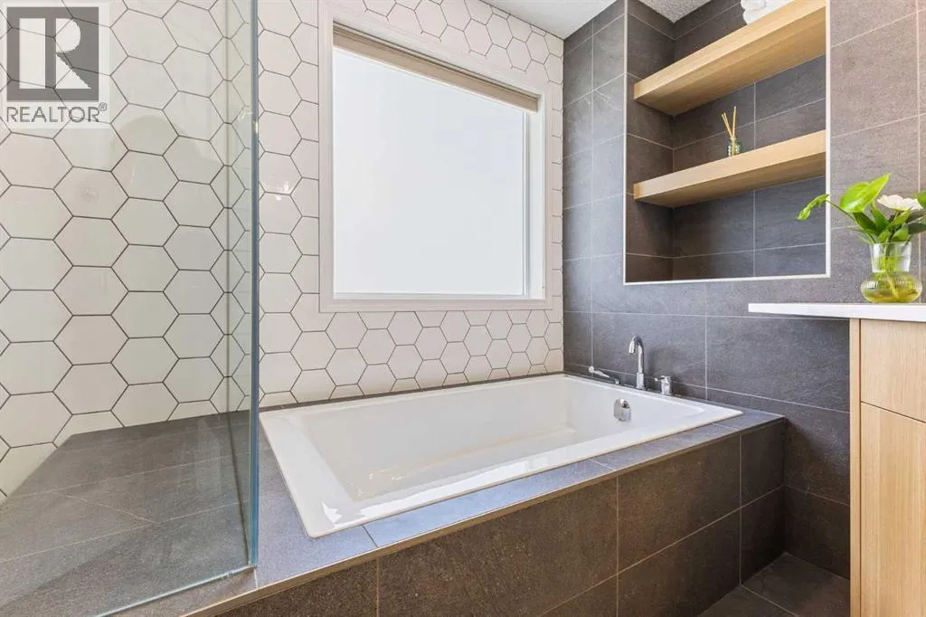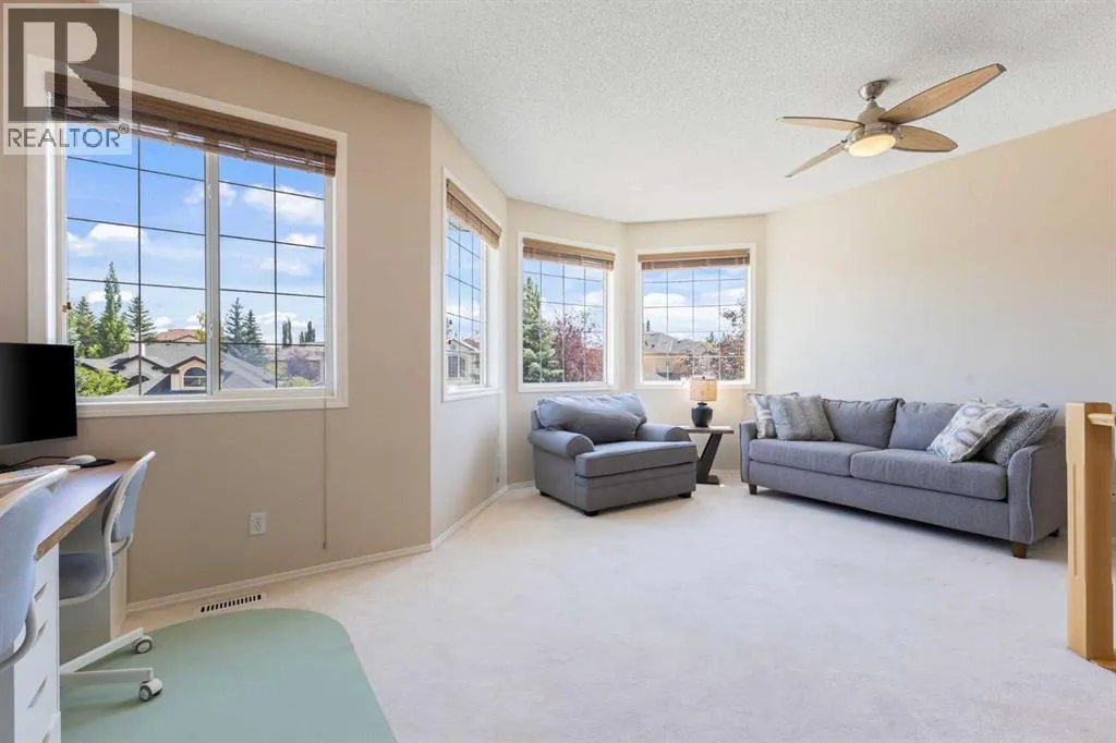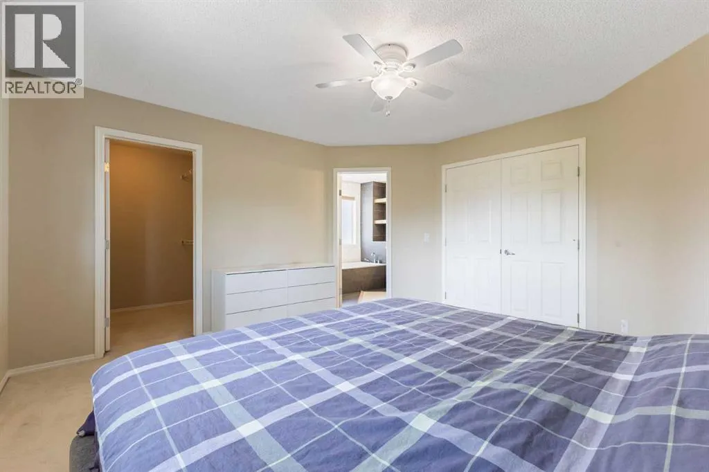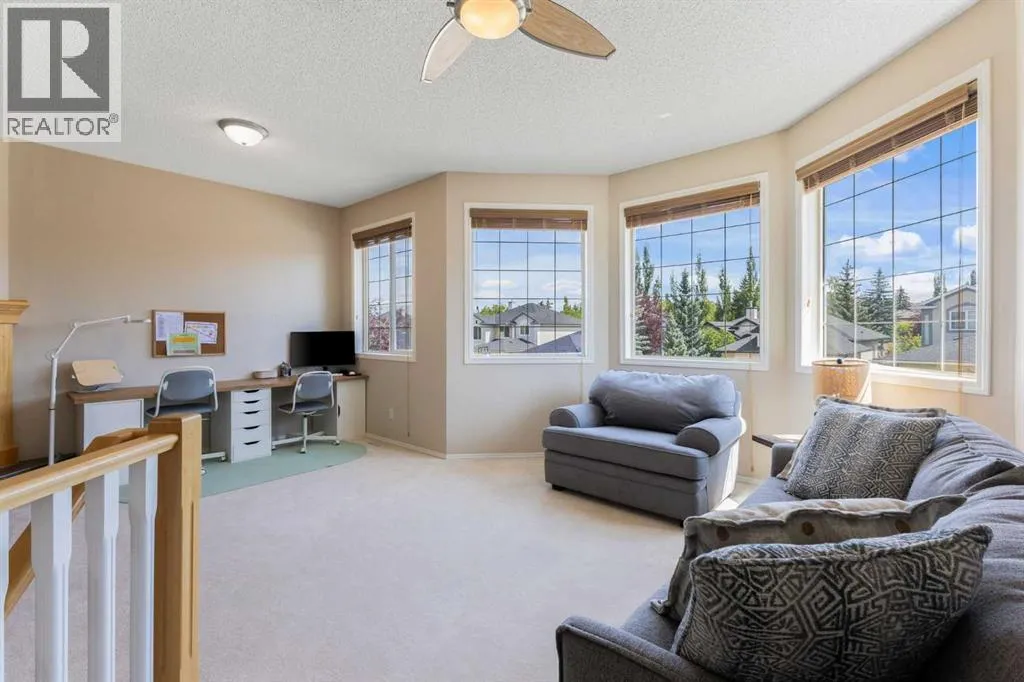 Unbeatable location, very nice renovations, and a great west facing backyard! Luxury builder Vicon Homes developed the basement in 2018, including a steel beam to create a wide-open recreation area (with in-ceiling surround sound), a large bedroom, and a 3-pc bathroom. In 2021, ensuite is fully renovated, including a deep soaker tub, oversized shower and two sinks. A major overhaul of the furnace (including replacing the heat exchanger and fan blowers), and a new A/C unit in 2022. This home has a great floor plan, a wide open, super-comfortable main level with 9 feet ceiling, three good-sized bedrooms upstairs, and an extra-large bonus room with four massive windows. Cozy deck with a roll-out awning and a patio, trees , flowers complete the backyard! Walking distance to Ernest Manning High School, Westside Rec Centre and LRT (just take the walking path at the end of Simcoe Gate), or drive downtown in 12 minutes, easy access to Stoney Trail. (id:27476)