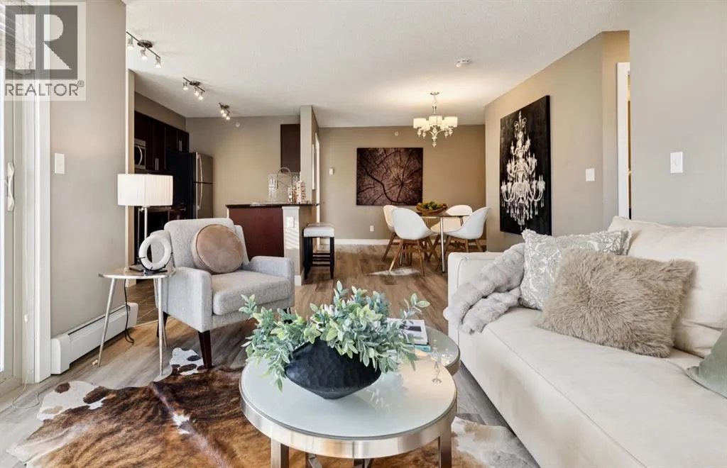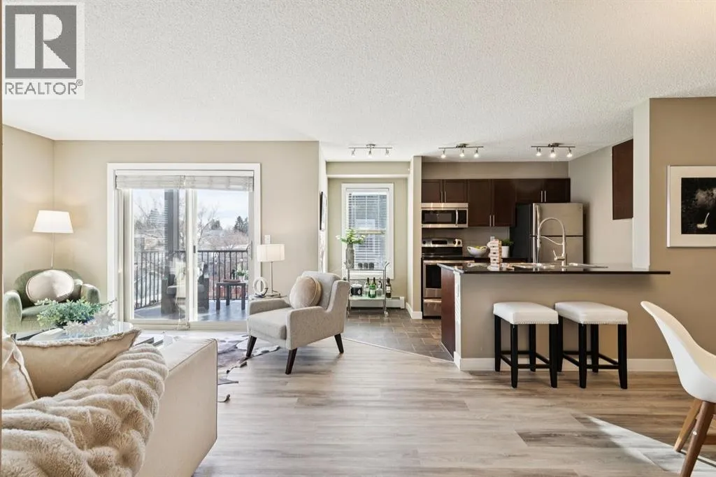 TOP FLOOR CORNER UNIT | 2 BED + DEN AREA | 2 FULL BATHS | GRANITE COUNTERS | STAINLESS STEEL APPLIANCES | BRAND NEW VINYL PLANK FLOORING | IN-SUITE LAUNDRY | BRIGHT NE CORNER DECK | TITLED UNDERGROUND PARKING | BUYER TO CHOOSE PAINT COLOUR, SELLER TO PAY FOR THE UNIT TO BE PROFESSIONALLY REPAINTED PRIOR TO CLOSING DAY | ORIGINAL OWNER & OWNER OCCUPIED SINCE BUILT | 7 MINUTES TO DOWNTOWN | Welcome to Albert Park Station â This very quiet and private unit offers two bedrooms and two bathrooms with an open floorplan on the NE corner of the 1000 Block, with a lot of light and space! (See notes under photographs) As an end unit, you will notice the spacious and airy feel as soon as you walk into the large entry and nook space perfect for a home office, computer, work or study area. The large dining space and breakfast bar make seating options perfect for you and your guests to enjoy dining, snacks and beverages. The bright living room walks out to the large corner deck offering views of the hillside and privacy to enjoy that glass of wine at the end of the day. The two bedrooms are separated by the living space, perfect for a family, guests or a roommate and the primary suite features an ensuite bath and walk-through closet! Additional perks include in-suite laundry and storage space, titled heated underground parking ideally located within steps of the door to the elevator. With proximity to parks, playgrounds, the Bow River, shopping, schools and many transit options, this unit offers fantastic value. Oh also!! It is Pet-friendly up to 15kg so bring your furry friend! Condo fees are only $517.14 and include all utilities except for electricity, internet or cable! This is a home you will be happy and proud to gather your friends and family in. Call your favourite Realtor to view! (id:27476)