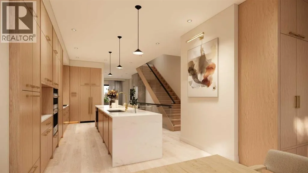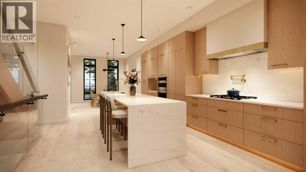 Located on a quiet street in the inner-city community of West Hillhurst, this brand new 4+1 bedroom home, built by D & M Custom Homes, offers nearly 3700 sq ft of meticulously developed living space exhibiting top quality & exquisite attention to detail throughout. The open & airy main level presents wide-plank hardwood flooring, lofty ceilings & stylish light fixtures, showcasing the front dining area with ample space to host family & friends & kitchen thatâs beautifully finished with quartz counter tops, large waterfall island/eating bar, plenty of storage space & high-end appliance package. The living room is adjacent to kitchen & is anchored by an eye-catching floor to ceiling feature fireplace & built-ins. A mudroom & 2 piece powder room complete the main level. The second level hosts 3 spacious bedrooms, including one primary bedroom with walk-in closet & posh 6 piece ensuite with dual sinks, relaxing freestanding soaker tub & rejuvenating steam shower. The additional 2 bedrooms each have plenty of closet space & private 3 piece ensuite. A laundry room with sink & storage is conveniently situated in the hallway. The third level boasts a large bonus room with access to a rooftop patio. A second primary retreat on the third level is a true private oasis, boasting a large bedroom with huge walk-in closet & opulent 5 piece ensuite featuring a gorgeous vanity with dual sinks, relaxing freestanding soaker tub & oversized glass shower. Basement development includes a spacious family/media room with wetbar, home gym, fifth bedroom & 4 piece bath. Outside, enjoy the back yard with deck & access to the triple detached garage that's roughed-in for heat. This stunning home is located just blocks to scenic Bow River pathways & West Hillhurst Community Association & is close to trendy Kensington, Riley Park, schools, SAIT, U of C, shopping & walking distance to the downtown core. (id:27476)