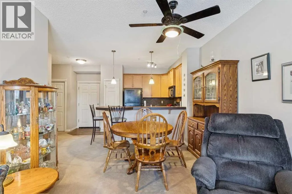 All utilities are included! Main floor unit with the added benefits of a concrete patio with grass and quietly situated beyond the front drive. Beginning with the kitchen, you will find maple cabinetry, a diamond-pattern backsplash, black and stainless steel appliances, and a breakfast bar create a space that is both practical and inviting, with plenty of room for casual meals or morning coffee. From here, the layout opens seamlessly into the dining and living areas, offering an easy flow that extends out to a main floor patio, creating a lovely outdoor space for fresh air, a quiet morning start, or unwinding at the end of the day. The primary bedroom is comfortably sized and well positioned for privacy, while the second bedroom offers flexibility for guests, a home office, or additional living space as needed. Both bedrooms share a full 4-piece bathroom. Set in the established community of McKenzie Towne, this condo enjoys access to an abundance of nearby amenities. Parks, pathways, playgrounds, splash park, schools, and green spaces are all close at hand, along with the shops, restaurants, and everyday conveniences that make this southeast Calgary neighborhood so well loved. With easy access to major routes and a strong sense of community, this is a home that offers both comfort and connection. (id:27476)