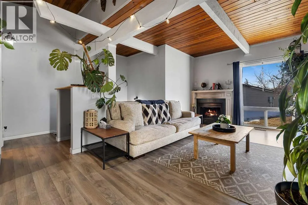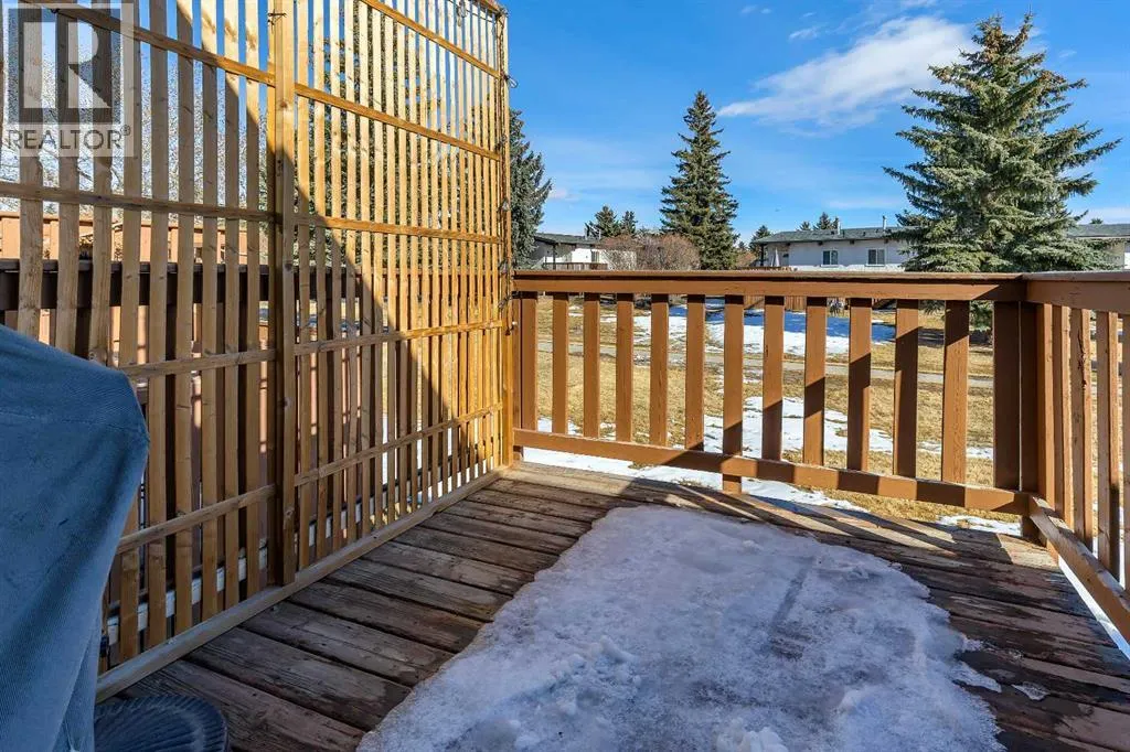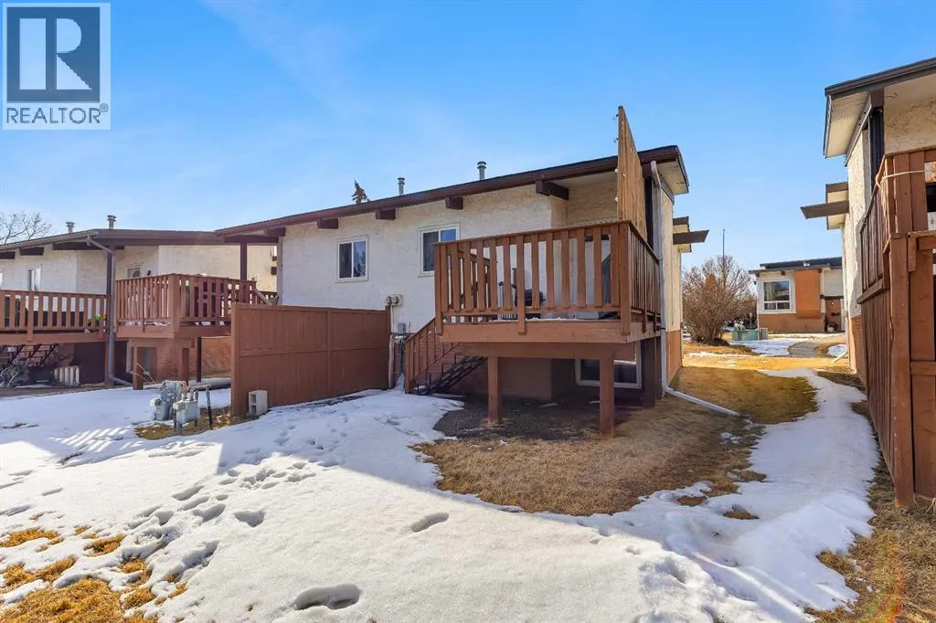Welcome Home! This stunning half duplex bi level offers one of a kind living featuring: OVER 1,000 sq ft / 2 bed / 1 bath | BACKYARD SPACE (can be fenced!) | VAULTED CEILINGS WITH EXPOSED WOOD BEAMS | BACKS GREEN-SPACE | UPDATED | LOW CONDO FEES & more in an idyllic location in Calgary's 'PINERIDGE' - 10m to downtown, a complex surrounding by green spaces and walking paths, easy access to main roadways (16th/stoney/deer foot), amenity nearby, schools and so much more. Heading into the complex will give you a breathe of fresh air, with beautiful greenery, greenspaces, & walking paths welcoming you to your unit. Stepping inside, you'll immediately feel how open the place feels with vaulted ceilings w/ exposed wood beams throughout the main floor. The main floor layout has a very functional layout that makes the place feel very spacious, connecting the living and dining together along with vaulted ceilings and large windows making it give an open feel. Not only that, there is the cozy comfort of wood railings, and wood burning fireplace with mantel for the cooler days. Kitchen is tucked away to keep the place feeling neat, with sink overlooking the yard. Enjoy the warmer days off the east facing deck, that backs onto a green space! The main floor is complete with an updated full bathroom that has bath/shower combo, toilet, vanity. Lower level offers 2 bedrooms, utility room, laundry, storage space. The property has updates over the years like: paint, bathroom (tile), fixtures, hardware, furnace, and more. The best part is, the condo fees are very low at just over $300 a month, making this a very affordable option ! Likewise, condo has great condo management. Unit comes with 1 outdoor stall, along with the complex that has visitor parking. With so much to offer, this makes a great place to call home. Book your viewing today, before it's gone! (id:27476)