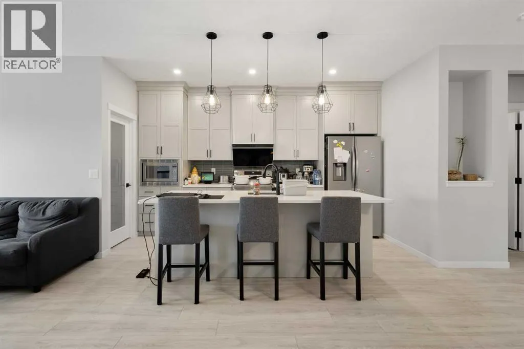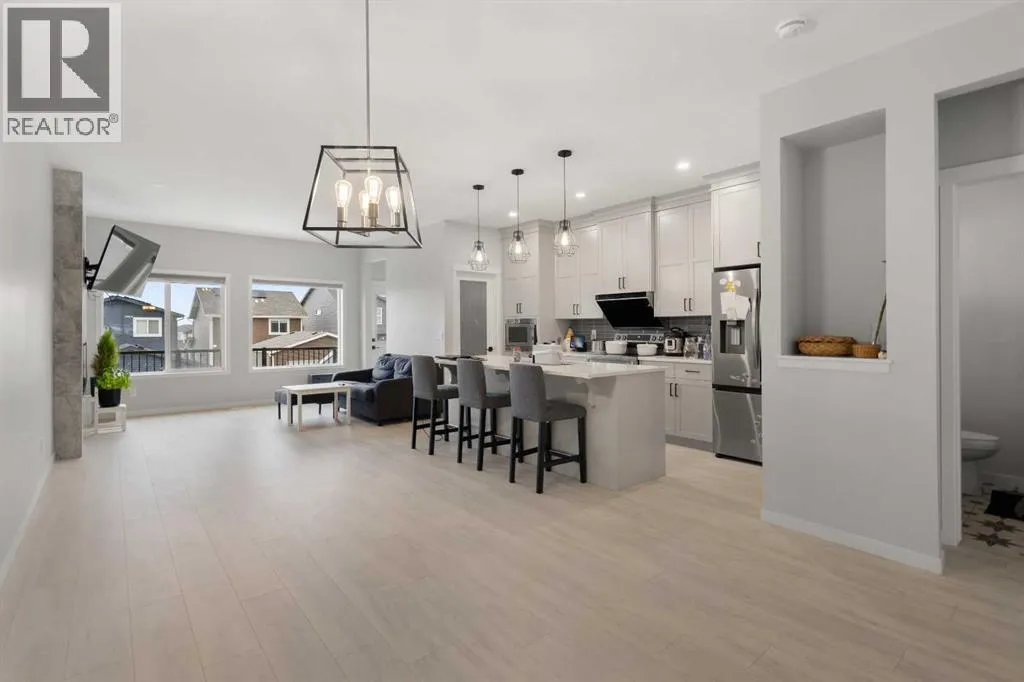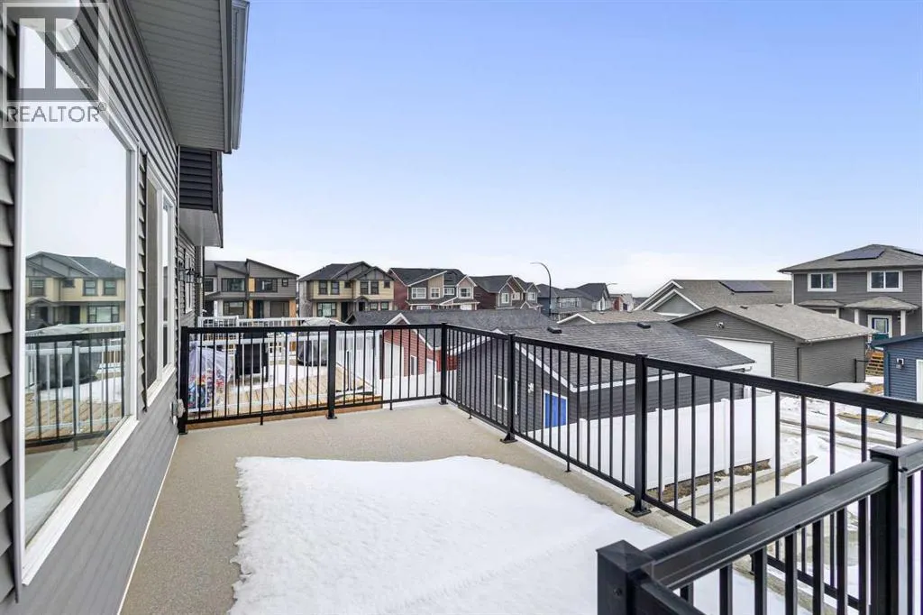 Welcome to this beautiful detached home featuring a walkout basement and stunning Alberta farmland views. This spacious property offers 4 bedrooms plus a main-floor office/den, perfect for working from home. Enjoy abundant natural light throughout the home, along with a large deck and concrete patio pad ideal for outdoor living and entertaining.The kitchen is beautifully upgraded with quartz countertops, an elegant range hood, crown molding, and stylish forest-green backsplash finishes, complemented by carefully selected cabinetry that creates a modern and functional cooking space.A new community centre is opening soon, featuring an indoor basketball court, ice rink, playground, and baseball field, all just steps away from the home. The location is incredibly convenient, with Walmart, Costco, and T&T Supermarket nearby, as well as easy access to major highways, making daily commuting and shopping effortless. (id:27476)