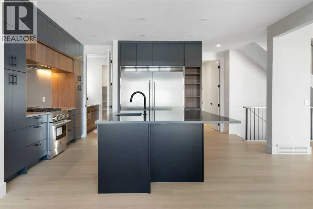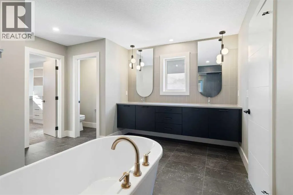Over 4,800 sq ft | 5 Bedrooms| 4 1/2 Baths | Triple Garage ** Brand-new in Aspen Woods. Opportunities like this are getting harder to find as builder lots in Aspen Summit are nearly gone. Built by Crystal Creek Homes, this executive walkout offers over 4,800 sq ft of finished living space and has been finished to show home standards throughout.From the moment you step inside, the home feels bright and open. The open-to-above great room fills the main floor with natural light and creates a welcoming space for everyday living and entertaining. The kitchen is both stylish and practical, featuring rich walnut accents, dark navy cabinetry, a gas range, custom hood fan, premium appliances, a butlerâs pantry, and a large walk-in pantry. Built-in cabinetry in the dining area adds extra storage and a polished look, while a main floor office provides a quiet place to work from home.Upstairs, the primary suite is designed as a true retreat, complete with a spa-inspired ensuite featuring a freestanding tub, oversized double shower, and a large walk-in closet with direct access to the laundry room. Three additional bedrooms complete the upper level, including one with its own full ensuite, a Jack-and-Jill bathroom, and a spacious bonus room overlooking the great room below.The fully finished walkout basement adds even more living space with a fifth bedroom, full bathroom, large recreation and games areas, excellent storage, and direct access to a concrete patio.Additional features include a triple attached garage, dual furnaces, water softener, and full builder warranty.Aspen Woods continues to be one of Calgaryâs most desirable southwest communities thanks to its parks, pathways, excellent schools, and strong sense of community. Youâre also just minutes from Aspen Landing, West District, transit, downtown Calgary, and easy access to the mountains.If youâve been waiting for a new modern walkout home in Aspen Woods with exceptional space and design, this one is worth seeing. (id:27476)