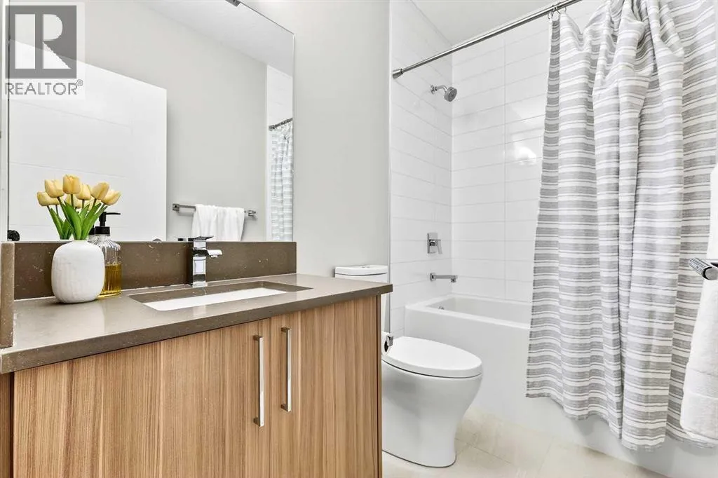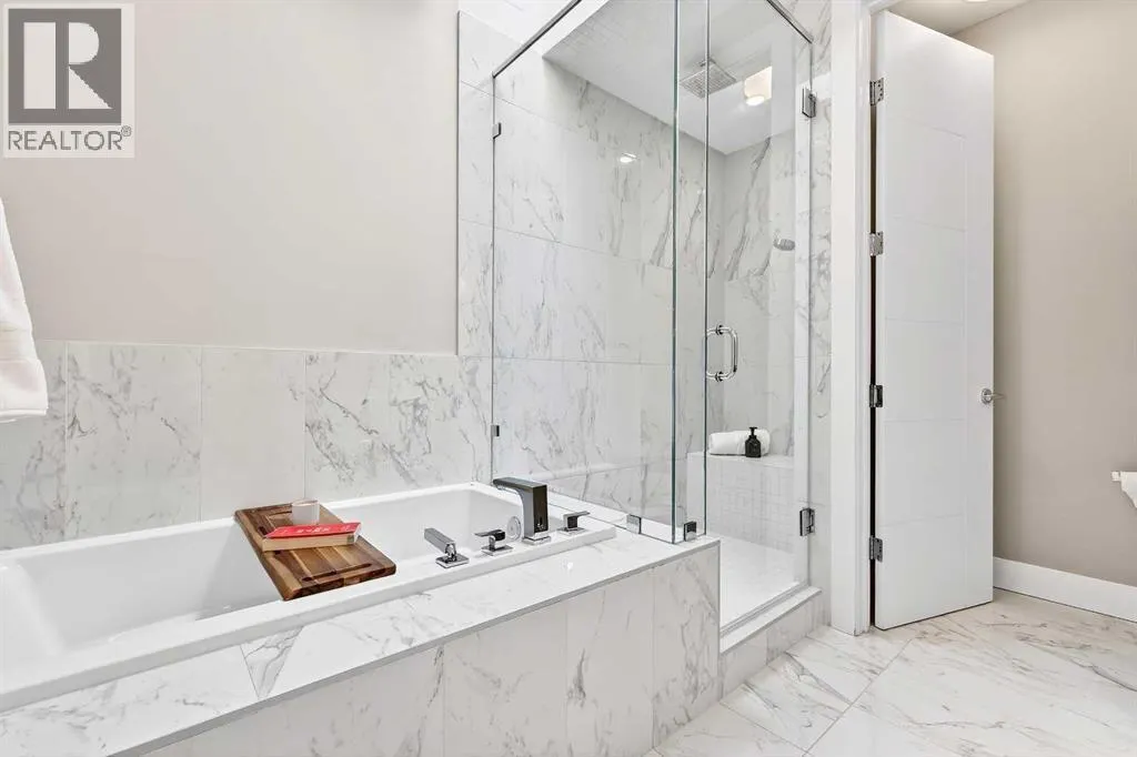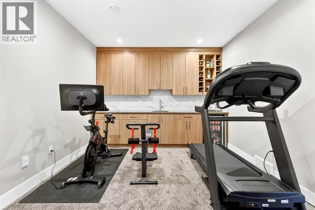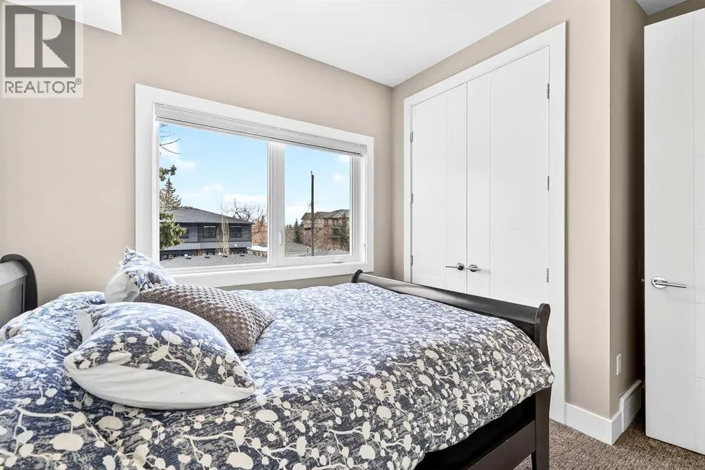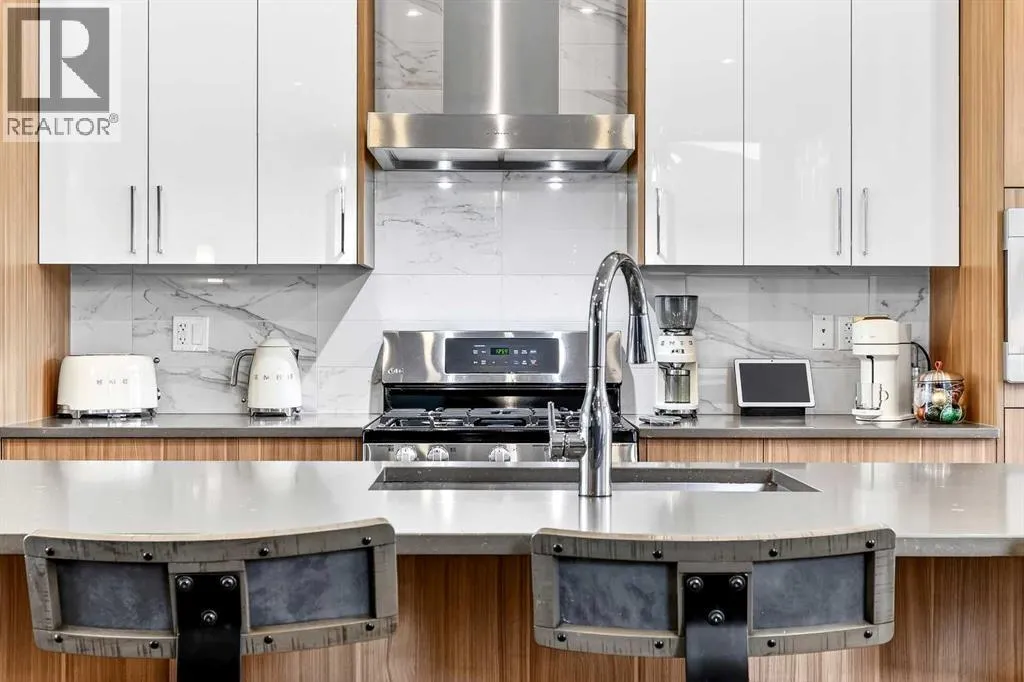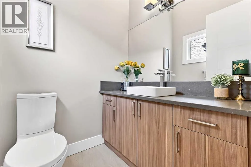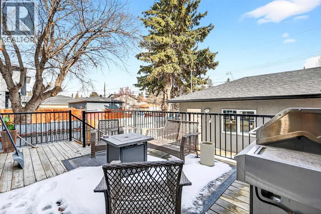 Ideally located on one of Glenbrookâs most desirable and well-established streets, this stunning fully finished contemporary infill offers exceptional design, quality craftsmanship, and a functional open-concept layout. The main floor showcases wide-plank engineered hardwood flooring, large windows that flood the space with natural light. The chef-inspired kitchen is beautifully designed with stainless steel appliances, quartz countertops, abundant two-tone cabinetry in white and wood finishes, and an oversized island with breakfast bar seatingâperfect for both everyday living and entertaining. Adjacent to the kitchen, the spacious dining area easily accommodates gatherings of any size. The inviting living room features custom built-ins and a striking gas fireplace, creating a warm and stylish focal point. Expansive 8â sliding doors lead to the private backyard retreat, an ideal place to relax after a long day. Completing the main level is a convenient 2-piece bathroom and a well-designed mudroom with built-in storage to keep everything organized and out of sight. Upstairs, the luxurious primary suite offers a peaceful retreat with a custom closet and an elegant spa-inspired ensuite featuring a large soaker tub, dual sinks, a stand-alone tiled shower with built-in bench seating, soaring ceilings, a stunning skylight, and a private water closet. Two additional generously sized bedrooms, a full 4-piece bathroom, and a convenient upper-level laundry area with stacking washer and dryer and sink complete this level. The fully developed basement, finished by the builder to the same high standard as the upper floors, provides incredible additional living space. This level includes a spacious recreation room perfect for a media area, playroom, or entertaining, along with a fully equipped wet bar featuring a sink, extensive cabinetry, and space for a bar or wine fridge. A fourth bedroom with a large walk-in closet and a full 4-piece bathroom make this level ideal for guests or extended family. Outside, enjoy low-maintenance landscaping, a beautiful deck perfect for summer evenings, and a double detached garage. Additional comfort is provided with central air conditioning, making the home enjoyable year-round. Situated on a quiet street yet close to everything, this exceptional home offers easy access to schools, shopping, downtown Calgary, 17th Avenue, grocery stores, public transit, and major roadways. A beautifully designed inner-city home with an undeniable WOW factorâthis is one you wonât want to miss. (id:27476)