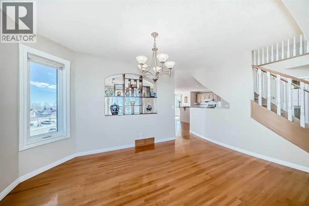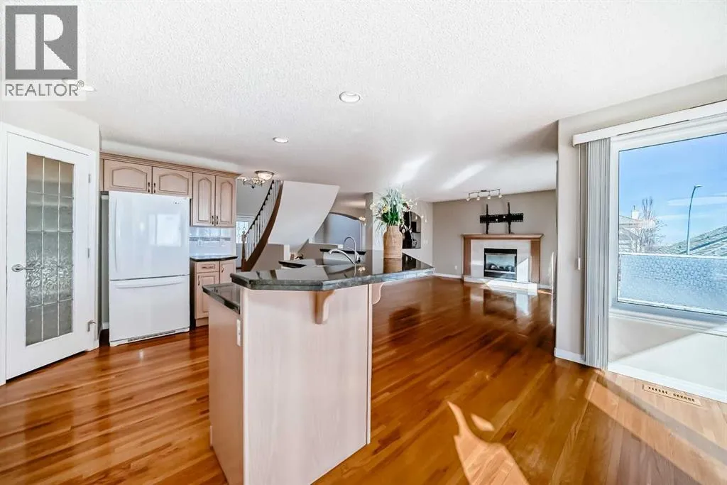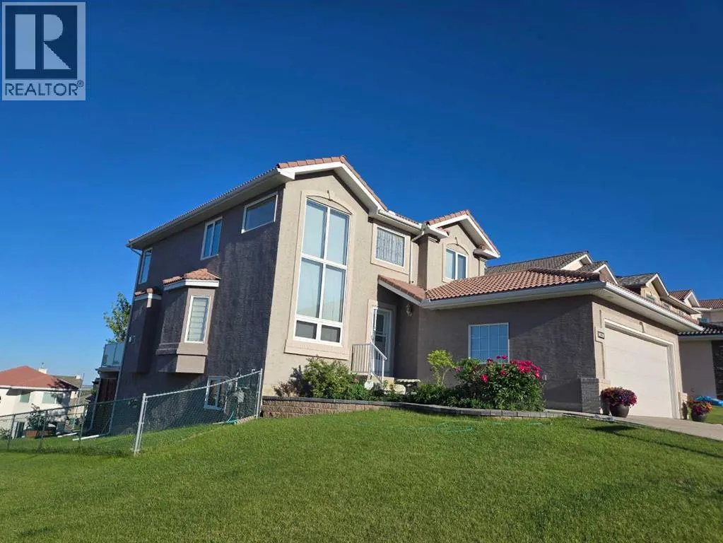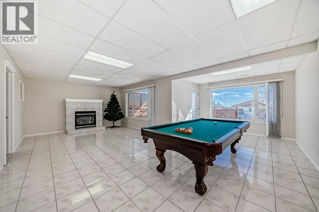 Offering ~3,200 sq. ft. of developed living space in a well-established NW Calgary community Hamptons. This meticulously maintained move-in-ready home sits on a premium corner lot with newly painted stucco siding and recently upgraded triple-glaze windows with 25-year warranty.The main floor features open-to-above ceilings, large windows for natural light, and an open-concept layout. The kitchen includes granite countertops, raised eating bar, and walk-in pantry, and connects to the formal dining room, breakfast nook, and living room with fireplace.Upstairs offers a primary bedroom with walk-in closet and 4-piece ensuite with jetted corner tub, plus two additional bedrooms and a full bathroom.The fully developed walk-out basement features a large family room with second fireplace, ceramic tile flooring, and two additional rooms suitable for guests or office use. A full-sized 8-ft rich cherry wood pool table is included.Outdoor space includes a maintenance-free upper deck with glass railings and gorgeous views, plus a lower patio with built-in wood pergola and lattice trellis, designed for outdoor seating and BBQs. The home is close to schools, parks, golf, shopping, and major routes. (id:27476)
