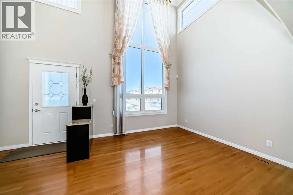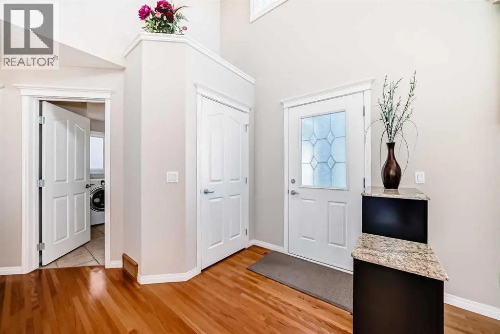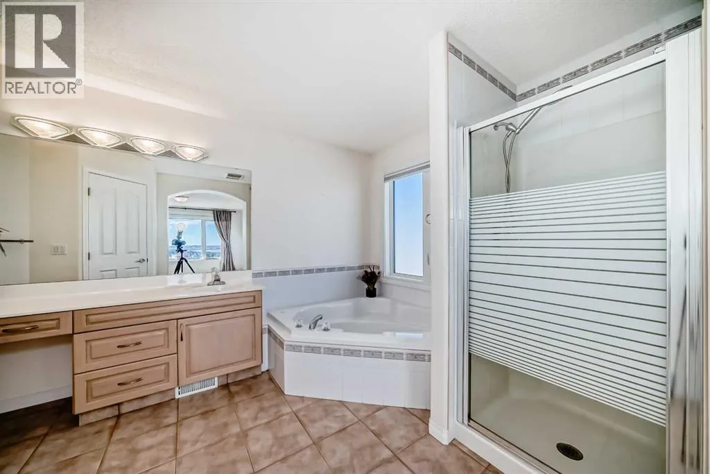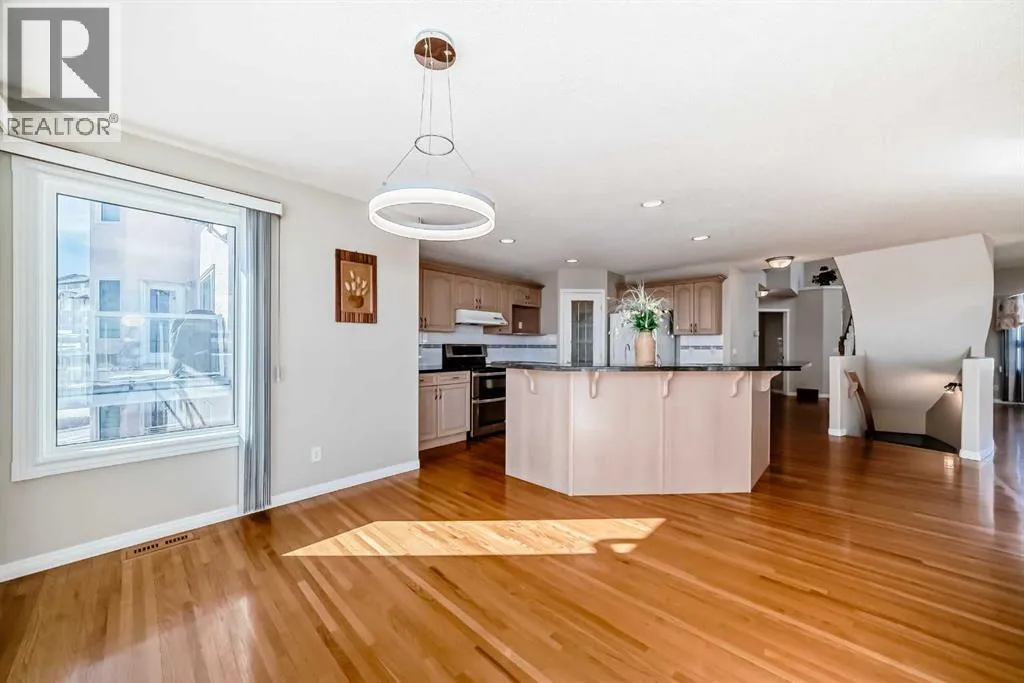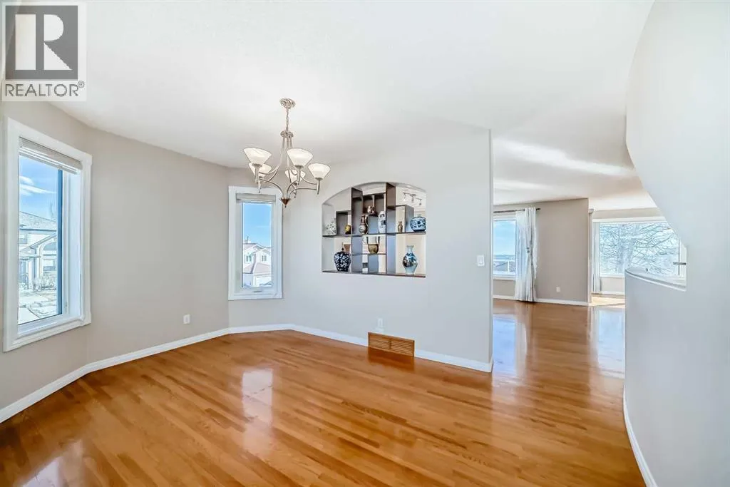 Offering ~3,200 sq. ft. of developed living space in a well-established NW Calgary community Hamptons. This meticulously maintained move-in-ready home sits on a premium corner lot with newly painted stucco siding and recently upgraded triple-glaze windows with 25-year warranty.The main floor features open-to-above ceilings, large windows for natural light, and an open-concept layout. The kitchen includes granite countertops, raised eating bar, and walk-in pantry, and connects to the formal dining room, breakfast nook, and living room with fireplace.Upstairs offers a primary bedroom with walk-in closet and 4-piece ensuite with jetted corner tub, plus two additional bedrooms and a full bathroom.The fully developed walk-out basement features a large family room with second fireplace, ceramic tile flooring, and two additional rooms suitable for guests or office use. A full-sized 8-ft rich cherry wood pool table is included.Outdoor space includes a maintenance-free upper deck with glass railings and gorgeous views, plus a lower patio with built-in wood pergola and lattice trellis, designed for outdoor seating and BBQs. The home is close to schools, parks, golf, shopping, and major routes. (id:27476)