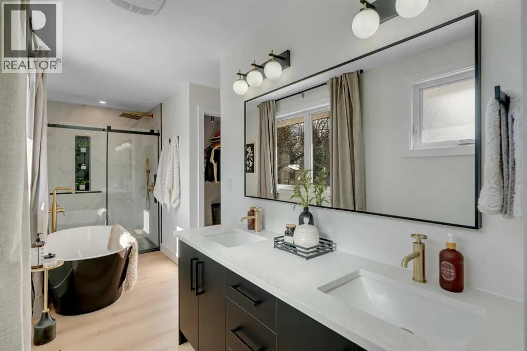 **SUNNY SOUTH BACK YARD | BEAUTIFUL RENOVATION | TRIPLE PANE WINDOWS **Renovations by Modern Evolution Design ,Tucked into an incredible location just steps from the natural beauty of Fish Creek Park, this home is the definition of a complete transformation. Fully renovated from top to bottom with meticulous attention to detail, it offers a rare blend of thoughtful design, high-end finishes, and everyday functionality. With miles of walking and biking paths practically at your doorstepâand the renowned Bow Valley Ranche Restaurant only minutes awayâyouâll love the lifestyle this location provides. Inside, the main floor feels bright, open, and welcoming, thanks to an abundance of natural light streaming through new triple-pane windows. The kitchen is truly the heart of the home and has been designed to impress even the most discerning buyers. Outfitted with all-new appliances including an induction stove, it features quartz countertops, soft-close cabinetry, a beautifully designed island, and plenty of workspace for cooking, gathering, and entertaining. The living room offers an expansive and comfortable setting, anchored by a striking custom feature wall and gas fireplaceâperfect for cozy evenings or hosting friends and family. The main level also features two generously sized bedrooms, including a stunning primary retreat. The five-piece ensuite feels spa-inspired with a double vanity, soaker tub, and separate shower. The primary suite also includes two closets, highlighted by a gorgeous walk-in closet that feels more like a boutique dressing space.Downstairs, the fully finished basement expands the living space beautifully. Here youâll find two additional spacious bedrooms, a stylish three-piece bathroom, a convenient dry bar, and a large entertainment area thatâs perfect for movie nights, guests, or family gatherings. Step outside to a sunny south-facing backyard thatâs fully fenced and ready to enjoyâwhether thatâs relaxing on warm evenings or hosting summer g et-togethers. The oversized double garage provides exceptional space for vehicles, storage, hobbies, or a workshop. Homes that undergo renovations at this level are incredibly rare. With its unbeatable location near parks, pathways, and amenities, combined with the quality of craftsmanship throughout, this is a property that truly stands apart. (id:27476)