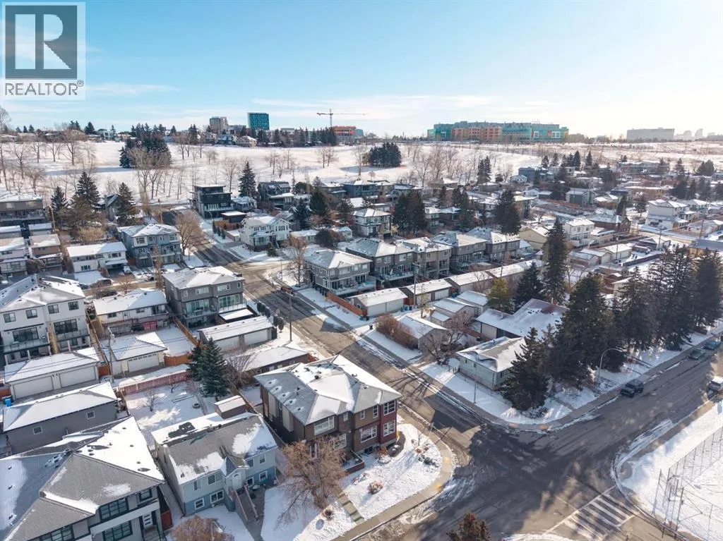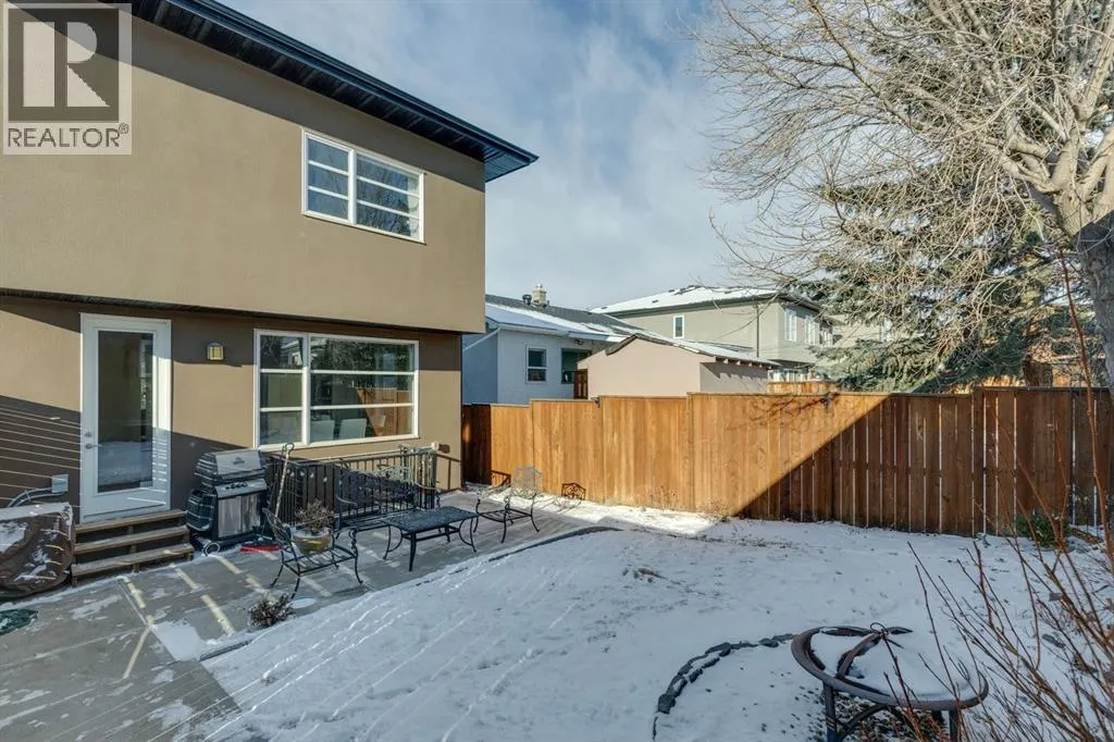 Watch your kids walk to school! This incredible Montgomery location is kiddie-corner to the K-6 public school and just 200 metres to the incredible Montalban Park and off-leash area! This inner city neighbourhood offers everything - groceries, cafes, restaurants, daycares, close to Market Mall & Childrens/Foothills Hospitals, river access and close proximity to Bowmont Park. This 2014-built infill added beautiful landscaping to enhance your outdoor enjoyment - a front south-facing patio with privacy screening as well as rear patio, tree and plantings. Inside, the home has a fresh, comfortable feel with large south-facing windows on both levels for great natural light while the central A/C will keep you cool all summer. The front living room has a gas fireplace and beautiful built-ins plus a view of the park so you can literally see if your kids' neighbourhood friends are out there :) The kitchen is the heart of the home with recently updated cabinetry, corner pantry, granite counters, oodles of storage and prep space. The dining room overlooks the lovely backyard and has ample space for a table to fit the whole family. Rear mud room with built-ins to keep everything organized! Upstairs, enjoy a primary suite with massive walk-in closet, views of the Bow River valley and a luxurious ensuite bath including oversized shower and soaker tub. Two additional bedrooms, full bath and side-by-side laundry room with extra storage. You are going to LOVE this basement with room for both a tv area and pool table, the perfect backdrop for fun nights with your friends & family! Fourth bedroom doubles as a fantastic home gym with walk-in closet and the spacious full bathroom and mechanical/storage round out this level. This is a fantastic price point on a lovely street in upper Montgomery! (id:27476)