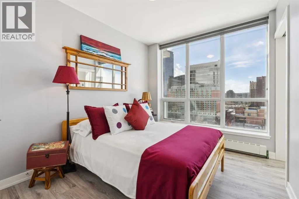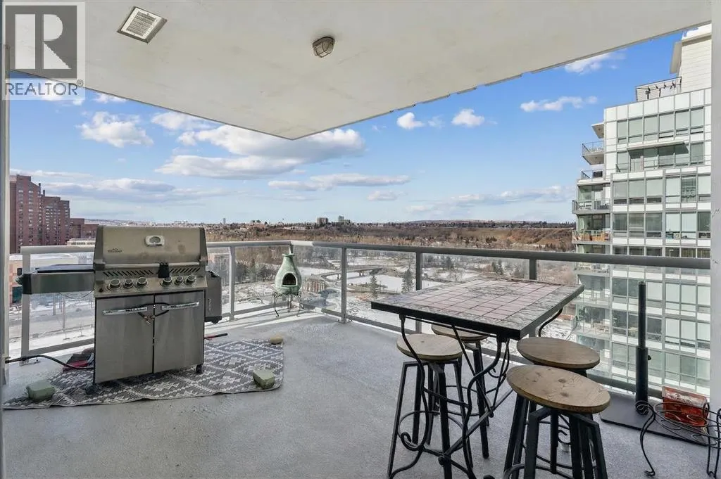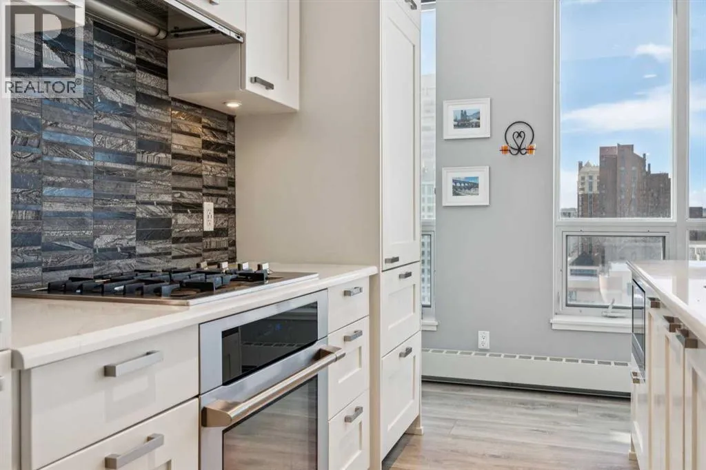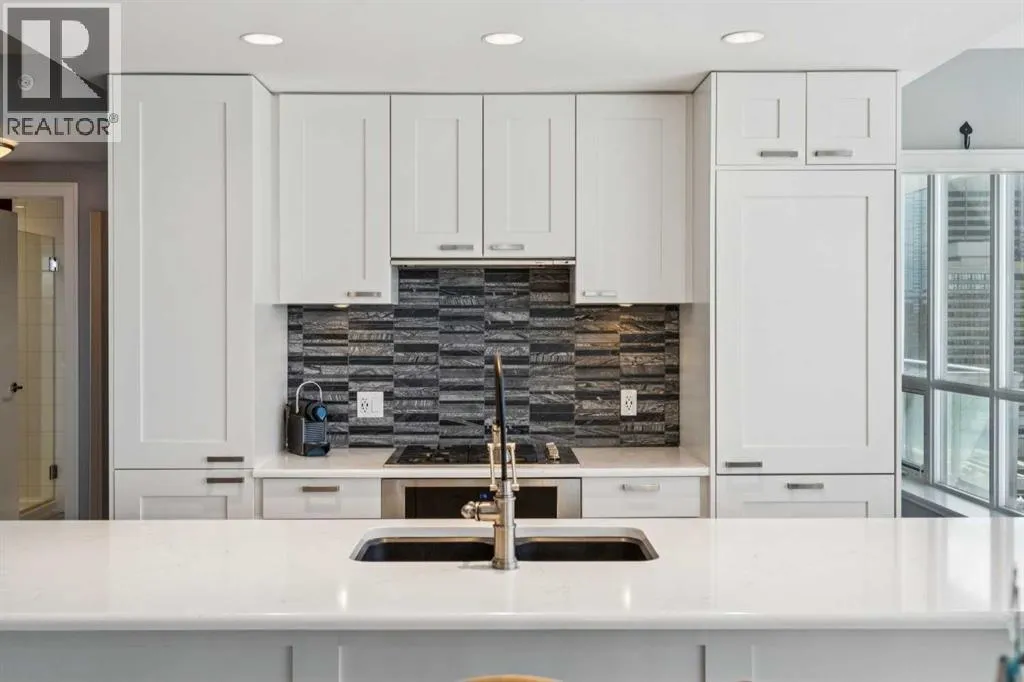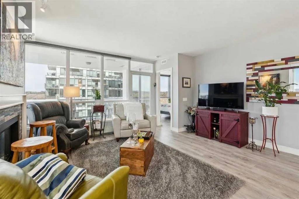 Sky-High Luxury Living in the Waterfront! Prime northwest corner location with spectacular views of Prince's Island Park, Bow River, mountains, COP and the downtown city lights! The many large expansive corner windows provide an abundance of bright natural light while enhancing those incredible views from every room! Exceptional open floor plan that's perfect for entertaining and great layout with opposite side bedrooms for complete privacy! Completely renovated kitchen, bathrooms, flooring and UV-Coated windows all in 2018. Immaculate 2 Bedroom + Den home with gorgeous hardwood flooring, quartz counter-tops throughout, soft-close kitchen drawers, custom Hunter Douglas blinds and tasteful recessed lighting! You'll be sure to enjoy the large covered balcony with incredible views, natural-gas fireplace, 5 pce ensuite bath with soaker tub and rain shower, custom closet organizers, separate office-den, open kitchen with large eat-in Island, gas range, 2 built-in freezer drawers, brand new dishwasher and microwave, separate laundry room with storage, high-end stack washer/dryer and spacious entrance to greet your guests. Comes with 2 very convenient SXS parking stalls across from elevator doors and storage locker in secure storage room. The luxurious Waterfront towers provide first-class amenities with concierge service, impressive lobby with comfortable seating area, fully equipped fitness center, hot tub area, steam room, yoga studio, social lounge with billiard table, awesome Theater room, private inner courtyard and car wash facilities! The location is extraordinary along the south bank of the Bow River next to Prince's Island Park, world-class pathway system, near by shops and boutiques, great restaurants and cafes, Chinese Cultural Center and quick access to transportation and the LRT. Time to enjoy the ultimate in downtown urban living! (id:27476)