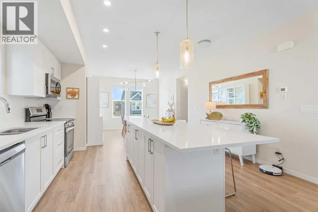 Welcome to this beautifully maintained end-unit townhouse in the vibrant, family-friendly community of Copperfield. Perfect for first-time buyers, young families, or investors, this home offers a functional layout, modern finishes, and versatile living spaces, with nearly 1,800 sqft of comfortable living space.The main floor features a bright, open-concept design with a welcoming fireplace in the living room, creating a cozy and inviting atmosphere. The well-appointed kitchen offers plenty of cabinetry and counter space, while the generous dining area is perfect for everyday living and entertaining. A convenient 2-piece bathroom completes this level.Upstairs, you'll find three comfortable bedrooms, including a spacious primary bedroom with its own 4-piece ensuite. Two additional bedrooms and another full 4-piece bathroom provide ample space for family, guests, or a home office. The upper level also includes a laundry room, adding extra convenience for everyday living. The lower level adds even more flexibility with a large office or multi-purpose room, ideal as a home workspace, gym, or recreation area. A 3-piece bathroom adds additional convenience.The home also features an oversized attached garage and a concrete driveway, providing parking for up to 4 vehicles and extra storage space.This property is perfectly located for families: the local school is just a 6-minute walk (1-minute drive) away, while the Copperfield Tennis Courts and Copperfield Community Center are only 2 minutes by car, making recreation and activities easily accessible. Residents also enjoy proximity to parks, playgrounds, walking paths, shopping, and major roadways, combining convenience with a quiet neighbourhood atmosphere.Donât miss this fantastic opportunity to own a well-located townhouse in one of Southeast Calgaryâs most desirable communities. (id:27476)