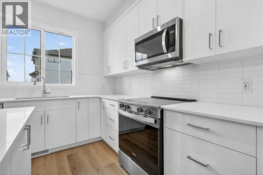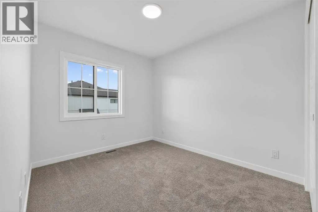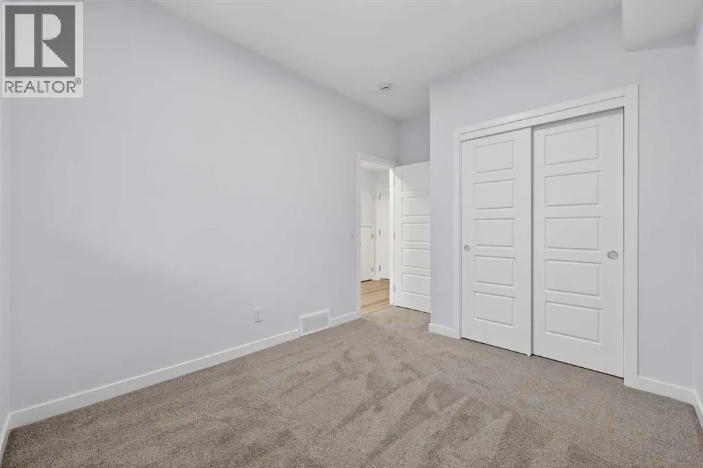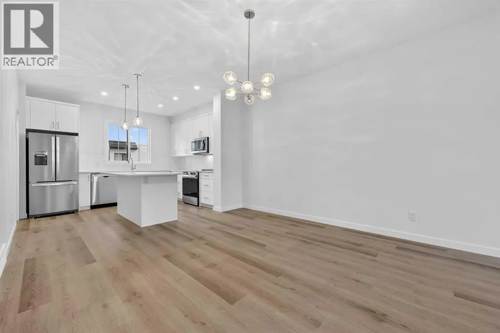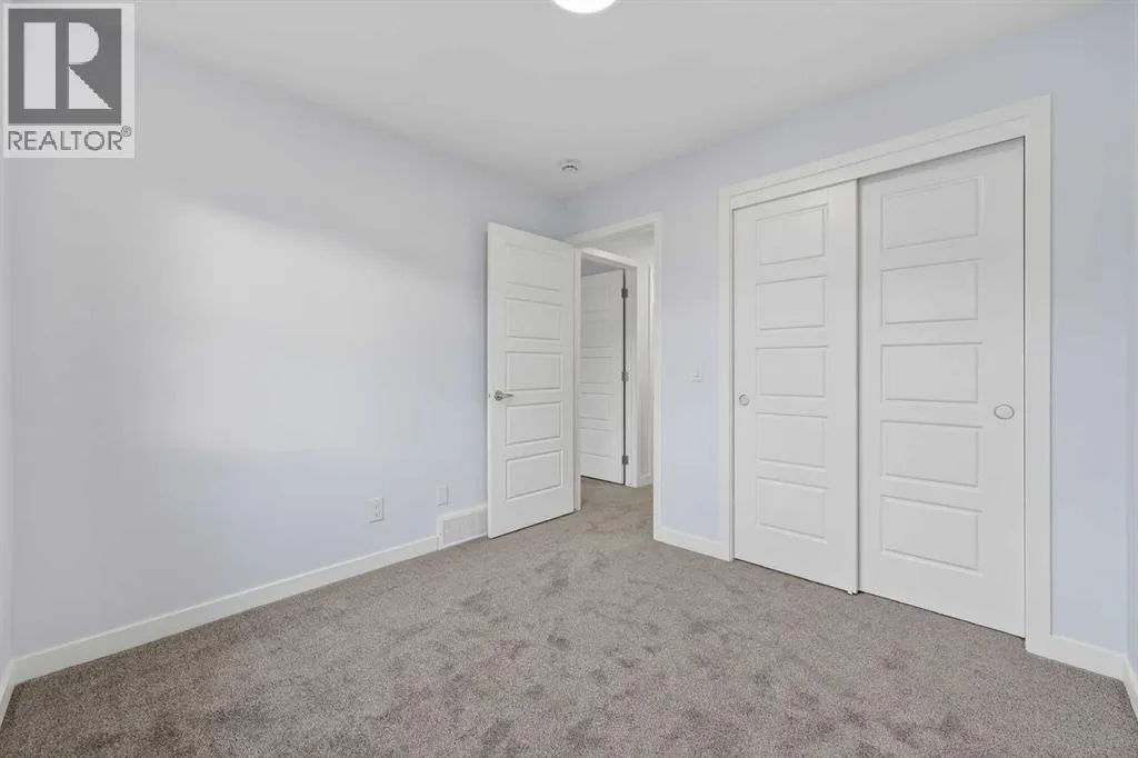 Open House this Saturday and Sunday from 12-5pm. Please go to the Show Home located at 1746 Rangeview Dr SE for access. StreetSide proudly presents this highly desired interior unit townhome that offers a sophisticated blend of expansive living space and elegant modern finishes. Designed with versatility in mind, the residence features four spacious bedroomsâincluding a convenient lower level bedroom ideal for guests or a home officeâand two and a half well appointed bathrooms. The heart of the home is an open-concept main floor that flows seamlessly onto a private balcony, perfect for indoor-outdoor entertaining. Culinary enthusiasts will appreciate the chef-inspired kitchen, which comes standard with modern light slab-style cabinetry, a full bank of storage drawers, polished white quartz countertops, and premium stainless steel appliances. This residence is a water meter unit, allowing for precise and efficient utility management.The interior aesthetic is defined by contemporary durability, featuring luxury vinyl flooring throughout the primary areas and premium 8lb underlay carpet for added comfort on the stairs and upper level. Practicality meets luxury with a dedicated upper-level laundry room and an attached double car garage.Situated in the community of Rangeview, Calgaryâs premier garden-to-table neighborhood, residents enjoy a unique village-like serenity paired with urban vibrancy. The development is centered around a lush courtyard garden and provides unparalleled connectivity to community greenhouses, pathways, and local markets. With immediate proximity to major transportation routes, schools, and parks, this home offers the perfect balance of comfort and convenience. (id:27476)