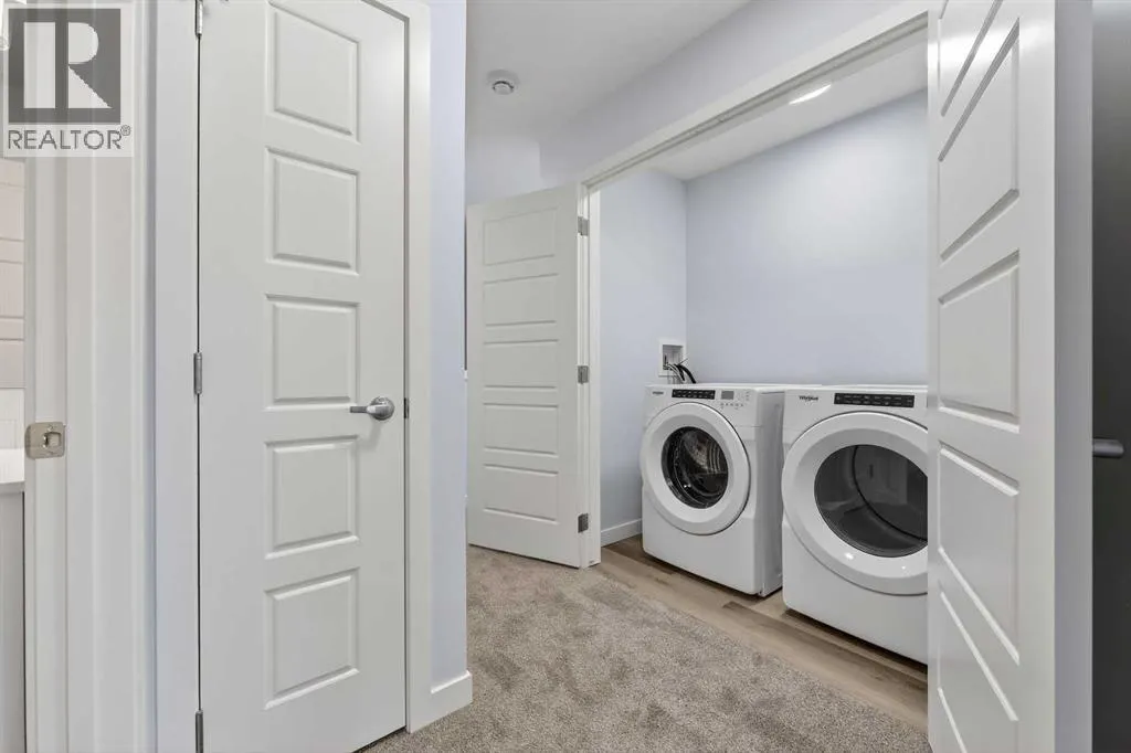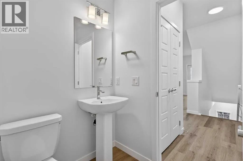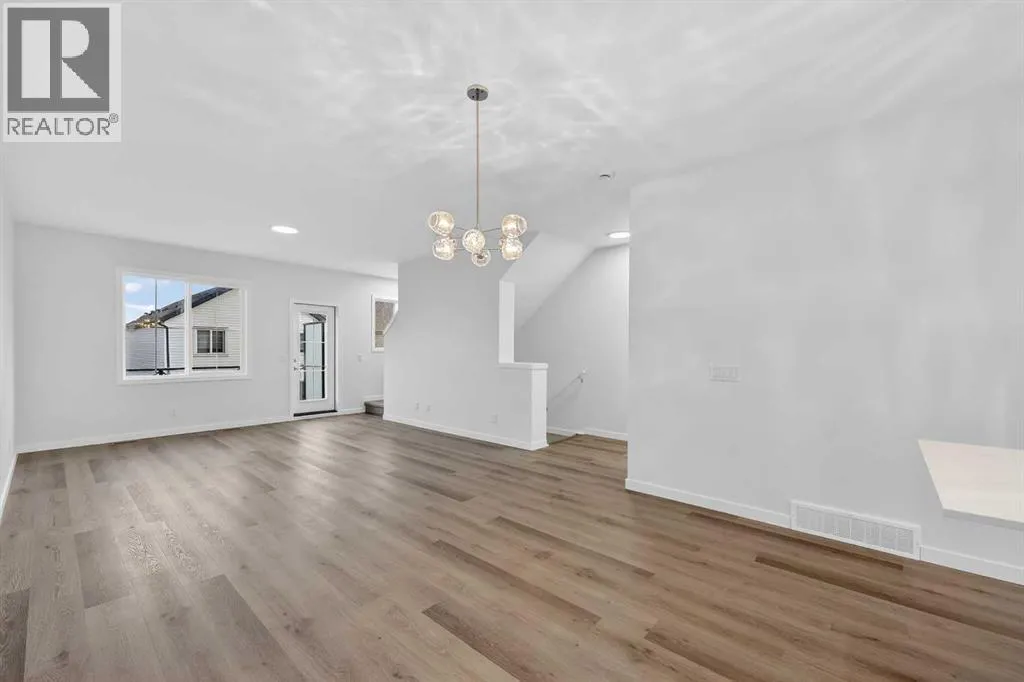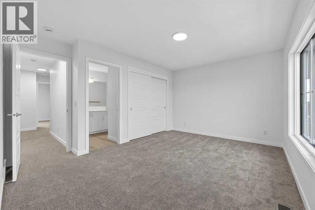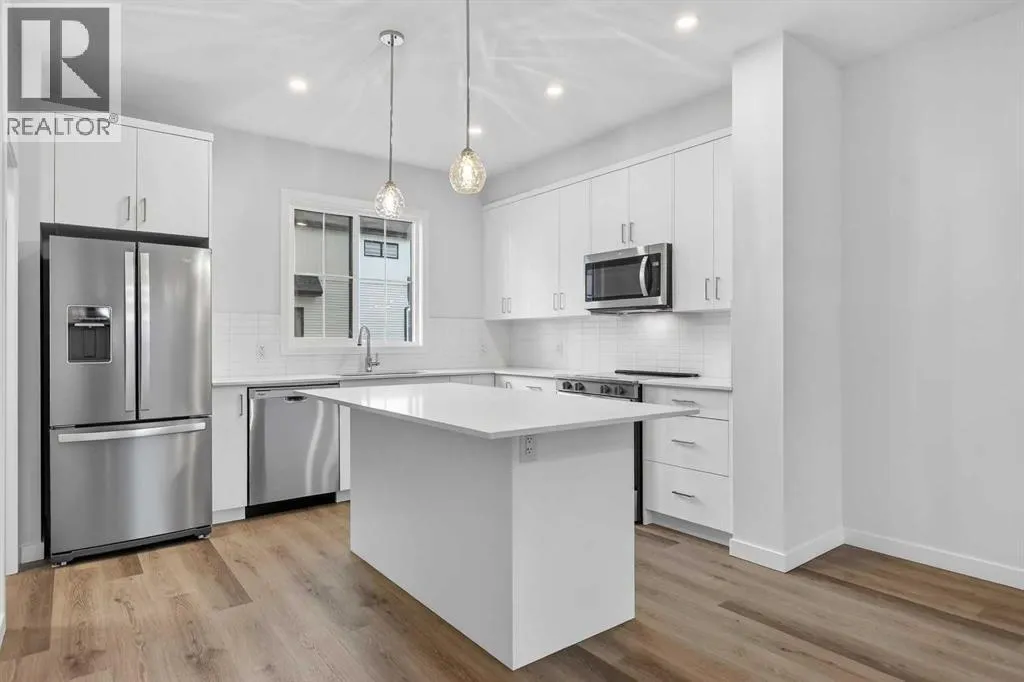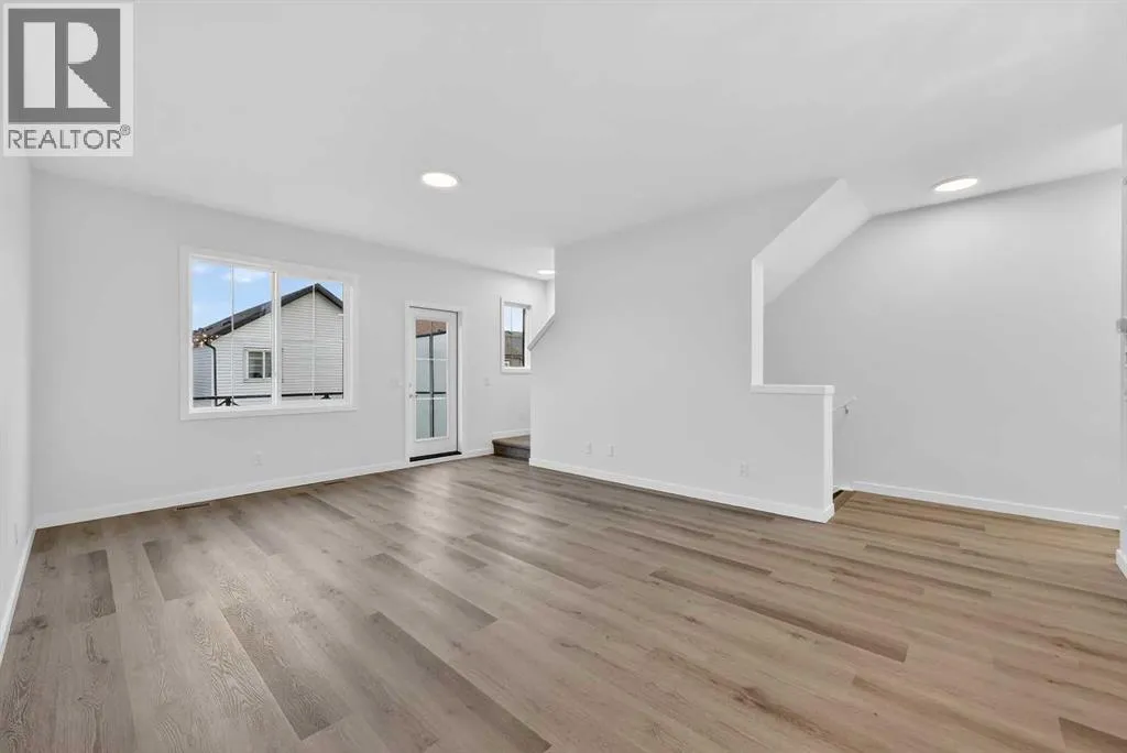 Open House this Saturday and Sunday from 12-5pm. Please go to the Show Home located at 1746 Rangeview Dr SE for access. StreetSide proudly presents this highly desired interior unit townhome that offers a sophisticated blend of expansive living space and elegant modern finishes. Designed with versatility in mind, the residence features four spacious bedroomsâincluding a convenient lower level bedroom ideal for guests or a home officeâand two and a half well appointed bathrooms. The heart of the home is an open-concept main floor that flows seamlessly onto a private balcony, perfect for indoor-outdoor entertaining. Culinary enthusiasts will appreciate the chef-inspired kitchen, which comes standard with modern light slab-style cabinetry, a full bank of storage drawers, polished white quartz countertops, and premium stainless steel appliances. This residence is a water meter unit, allowing for precise and efficient utility management.The interior aesthetic is defined by contemporary durability, featuring luxury vinyl flooring throughout the primary areas and premium 8lb underlay carpet for added comfort on the stairs and upper level. Practicality meets luxury with a dedicated upper-level laundry room and an attached double car garage.Situated in the community of Rangeview, Calgaryâs premier garden-to-table neighborhood, residents enjoy a unique village-like serenity paired with urban vibrancy. The development is centered around a lush courtyard garden and provides unparalleled connectivity to community greenhouses, pathways, and local markets. With immediate proximity to major transportation routes, schools, and parks, this home offers the perfect balance of comfort and convenience. (id:27476)