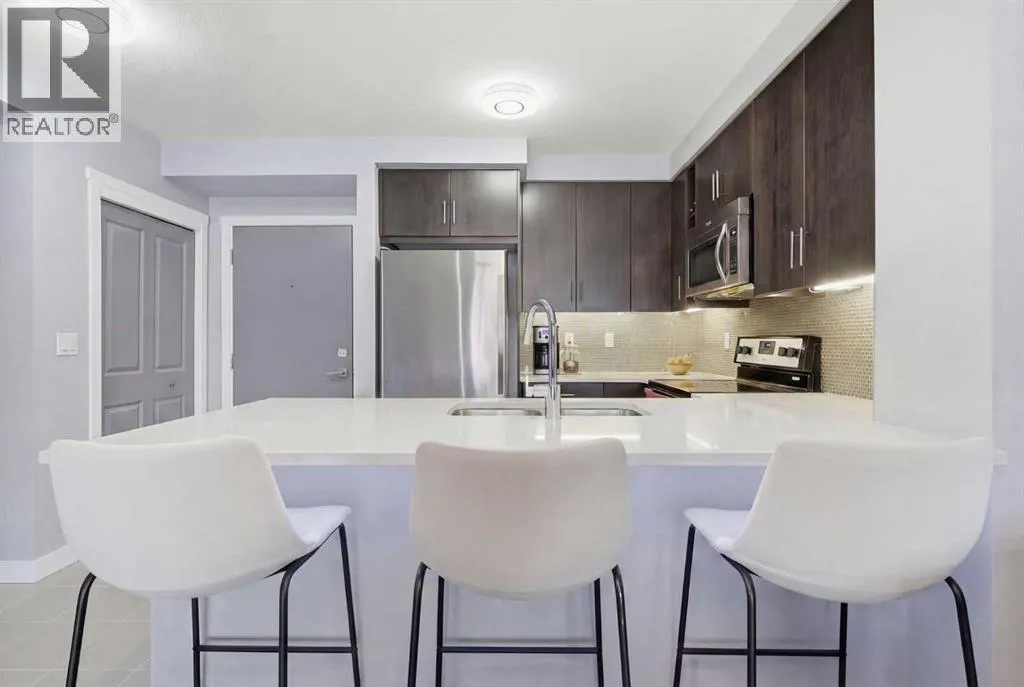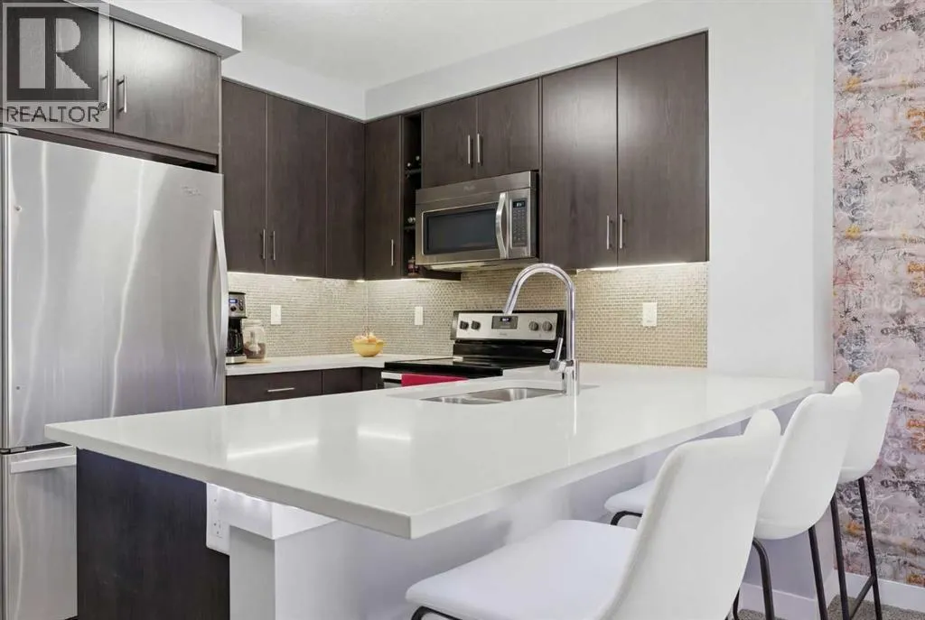 Welcome to lake living in Auburn Bay. This beautifully maintained 1 bedroom, 1 bathroom condo in the Canoe building by Avi Urban offers the perfect combination of comfort, style, and convenience.The bright north-facing unit features an open-concept layout with oversized windows that fill the space with natural light. The modern kitchen is finished with flat-panel cabinetry, stainless steel appliances, and a functional breakfast bar, ideal for everyday living or entertaining.The spacious bedroom includes a walk-in closet and direct access to the 4-piece bathroom, which is also accessible from the main living area for added convenience. Additional highlights include in-suite laundry, a covered patio, titled underground parking, and a separate storage locker.Residents of this pet-friendly complex enjoy access to a beautifully landscaped courtyard terrace with a firepit, perfect for relaxing outdoors.The location is exceptional â directly across from Auburn Station Shopping Centre and just steps from Mahogany Village Market, giving you quick access to groceries, restaurants, cafés, fitness studios, and everyday amenities. Youâll also enjoy year-round lake access, parks, pathways, and everything that makes Auburn Bay one of Calgaryâs most desirable lake communities.Perfect for first-time buyers, downsizers, or investors looking for a low-maintenance lifestyle in a prime southeast Calgary location. (id:27476)