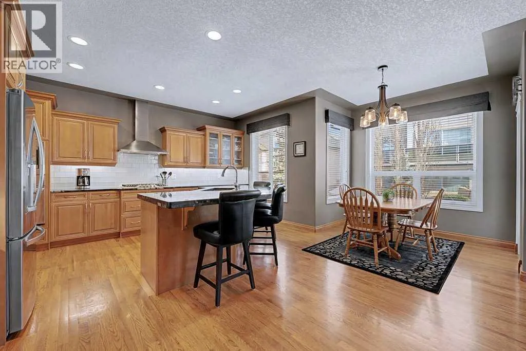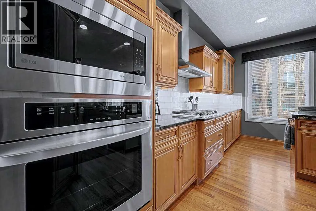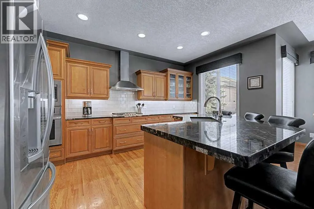 Rare opportunity in Arbour Vista, Arbour Lake featuring one of the communityâs most impressive quad garagesâa workshop-quality space with heated floors, epoxy coating, floor drains, and 11-foot ceilings ideal for a hoist, designed for car enthusiasts, hobbyists, or the ultimate man cave. Situated in the exclusive Arbour Vista enclave of Arbour Lake, this custom-designed home offers over 3,188 sq ft of total developed living space and is truly move-in ready. From the moment you enter, the elegant, curved staircase, rich hardwood flooring, and extensive built-in cabinetry create a sense of timeless quality and comfort. The heart of the home is the spacious open-concept kitchen featuring a large island, updated appliances including a gas cooktop, and a convenient walkthrough pantry to the garageâperfect for everyday living and entertaining. The bright living room showcases large windows, built-in cabinetry, and a cozy fireplace, while the dining area opens to a deck and patio ideal for summer gatherings. A generous main-floor office provides the perfect work-from-home setup. Upstairs, enjoy stunning mountain views from the primary retreat and bonus room, while the primary suite features dual walk-in closets with built-ins and a luxurious five-piece ensuite. Two additional bedrooms and a spacious bonus room complete the upper level. The fully finished basement features in-floor heating and an entertainment area complete with a wet bar, fridge, and dishwasherâperfect for hosting family and friends. The lower level also includes a large bedroom, four-piece bathroom, and a utility room with ample storage space. The home is equipped with air conditioning, surround sound, a sprinkler system, and numerous thoughtful upgrades throughout. The exceptional quad garage also features heated floors, floor drains, an oversized door, epoxy flooring, checker plate aluminum wall finishes, and a rear door leading to an additional parking padâan incredibly rare feature in the area. Parkin g for 8 vehicles on property. Experience the lifestyle that comes with living in Arbour Lake, Calgaryâs only lake community, offering year-round recreation including swimming, fishing, boating, and winter skating, along with convenient shopping and dining at Crowfoot Village and quick access around the city or out to the mountains. This is a rare opportunity to enjoy space, craftsmanship, and an unbeatable lifestyle in one of Calgaryâs most desirable lake communities. Kitchen appliances new in 2018, Full boiler system updated within last 7-10 years. (id:27476)