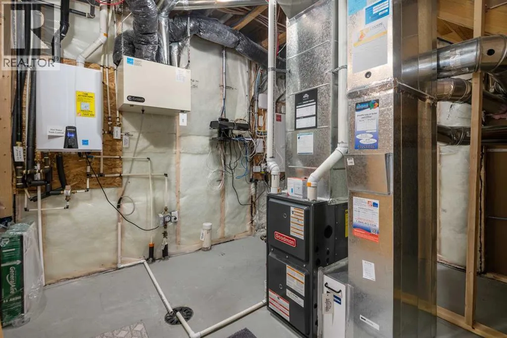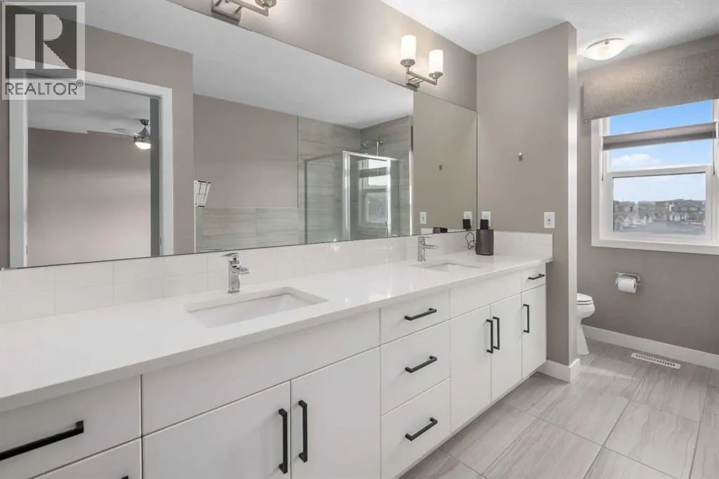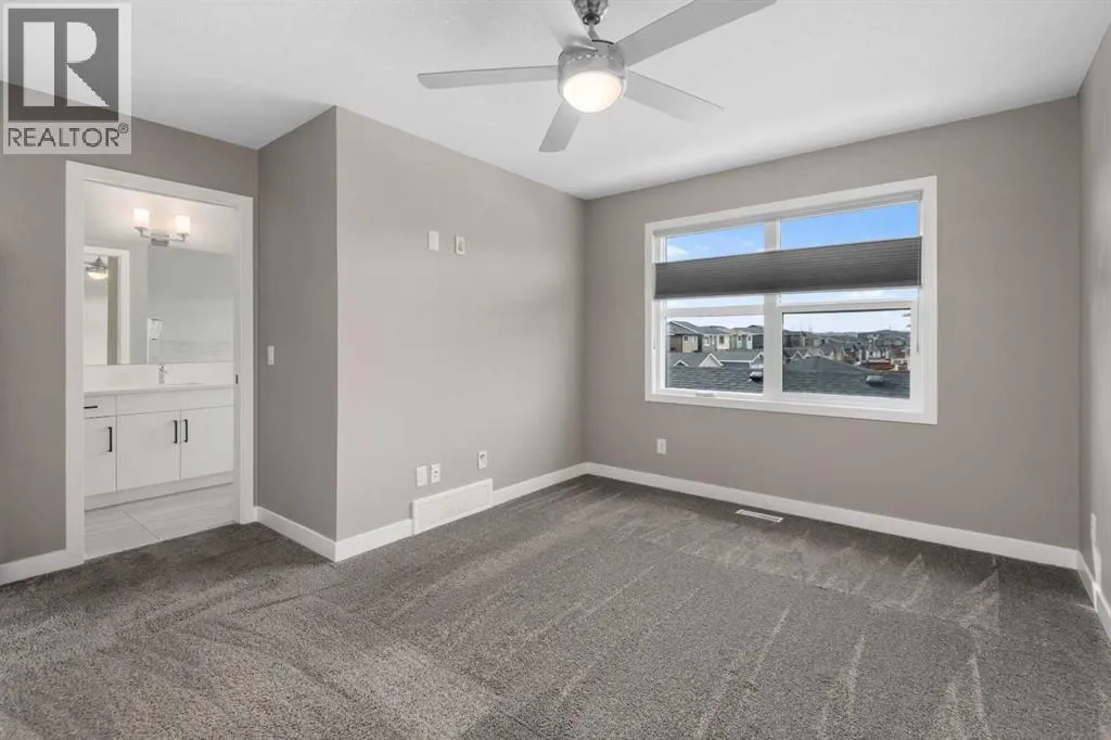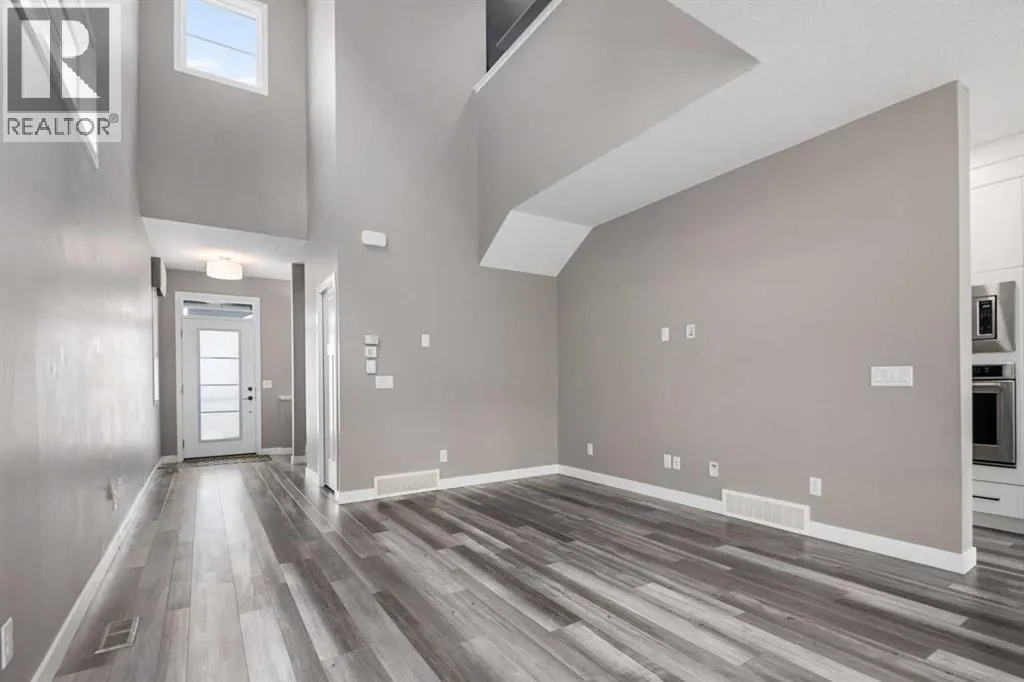 Welcome to this beautifully upgraded home in the desirable community of Evanston, offering the perfect blend of style, functionality, and low-maintenance living. Ideal for young professionals or those working from home, this property features two spacious bedrooms, a dedicated office, and a fully finished basement designed for both productivity and entertaining. The bright main level is filled with natural light thanks to large windows and a lofted ceiling, and includes a built-in HEOS sound system with ceiling speakers. The modern kitchen is designed for everyday living and entertaining, showcasing granite countertops, an impressive 8â x 4â island, ceiling height cabinetry, gas stove, and a stylish herringbone tile backsplash. Upstairs youâll find the primary bedroom, convenient upper level laundry, and a dedicated office with large windows, creating a comfortable work from home space. Bathrooms feature quartz countertops and tiled flooring for a clean, modern finish. The fully finished basement with partially lofted ceiling provides spacious effect and adds excellent additional living space. Generous with extra large windows (can potentially add another bedroom or in-law space), ceiling speakers, and an impressive 9 ft bar with sink, bar fridge, and cabinetry. It's perfect for hosting or relaxing. Energy efficient upgrades include 12 new solar panels (Oct 2025) with a new ECU and rodent guard, along with a new EV charger in the insulated and drywalled garage. A beautiful curb appeal front yard with an established low maintenance showy garden including ornamental bushes and Swedish Aspen Columnar trees. The backyard equipped with a deck, greenhouse, berry bushes, resin shed, wood shed, and rain barrels to enjoy. Located close to parks, pathways, schools, and everyday amenities, this home offers modern comfort and an easy lifestyle in one of NW Calgaryâs most popular communities. (id:27476)