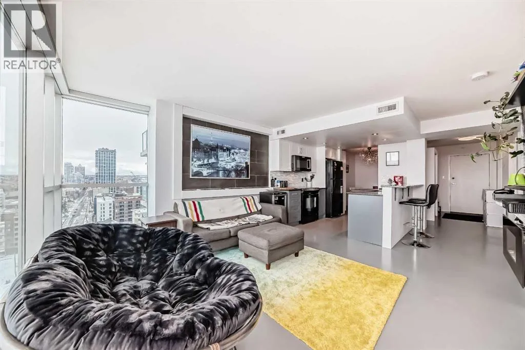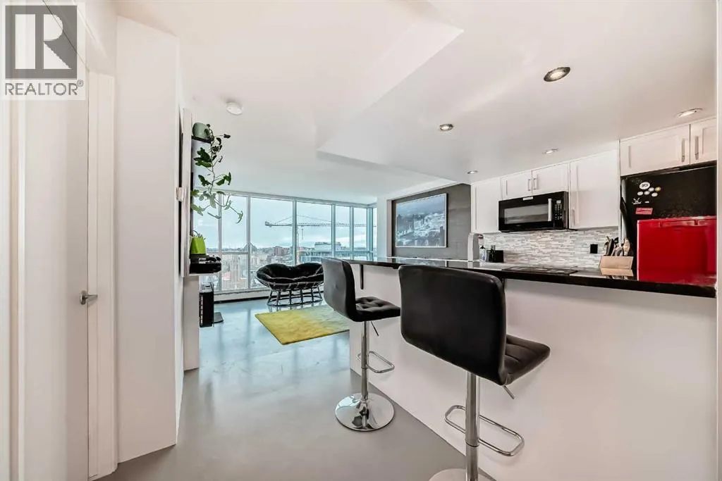 Chocolate Condos by Battistella is well run building in the Beltline! Enjoy city living at its finest in this bright 16th-floor condo featuring over 700 square feet of versatile space. The open-concept living area flows effortlessly from the kitchen, which includes a breakfast bar perfect for casual dining, to the sun-filled living room with floor-to-ceiling south-facing windows. Step onto the balcony for afternoon and evening sun, with mountain views on clear days. The primary bedroom offers a walk-through closet with direct access to the 4-piece bathroom, while a flexible space is ideal for a home office, dining area, or cozy reading nook. Thoughtful upgrades include updated kitchen cabinets, fresh paint, a custom pantry built-in and an electric fireplace, with in-unit laundry and air conditioning adding convenience. Parking is simple with a titled underground stall, and building amenities include a recreation room, outdoor terrace, and rooftop patio with sweeping city and Stampede Park views. Pets are allowed with board approval and no size limits. Situated in the Beltline, you are close to 17th Avenue, MacLeod Trail, shopping, and dining. (id:27476)