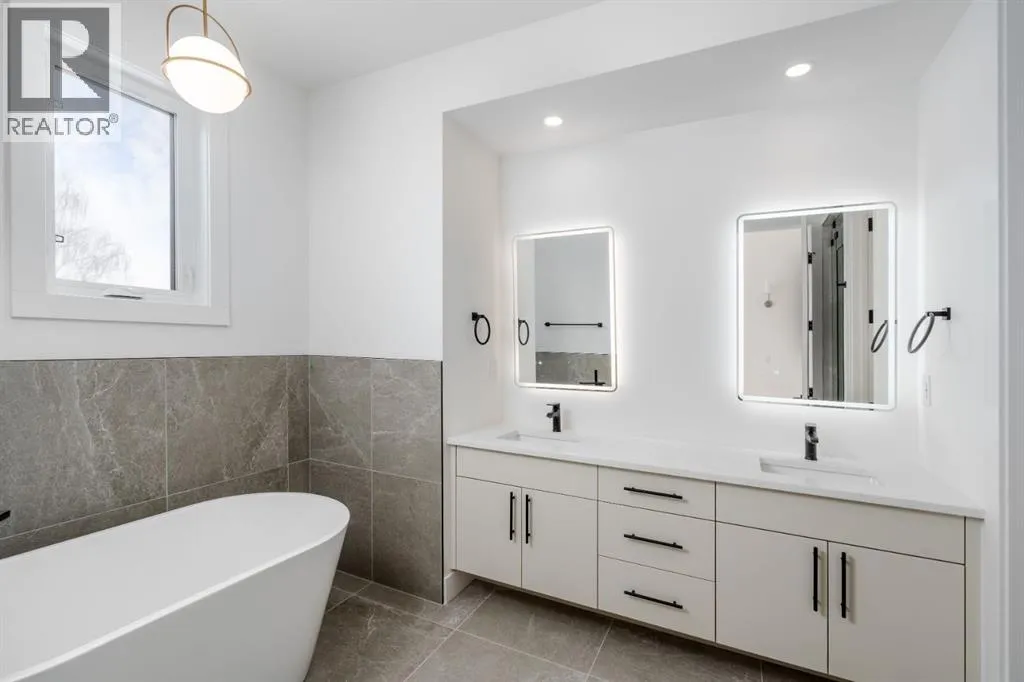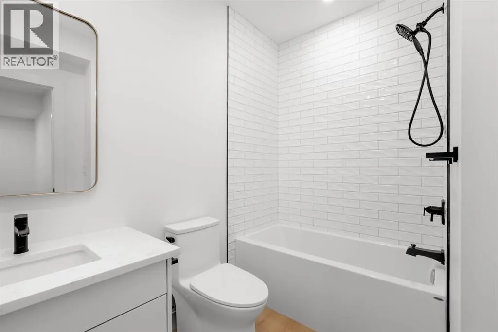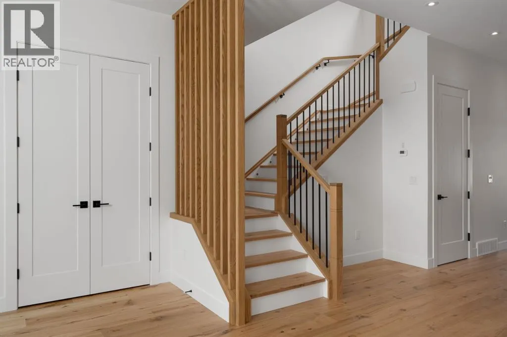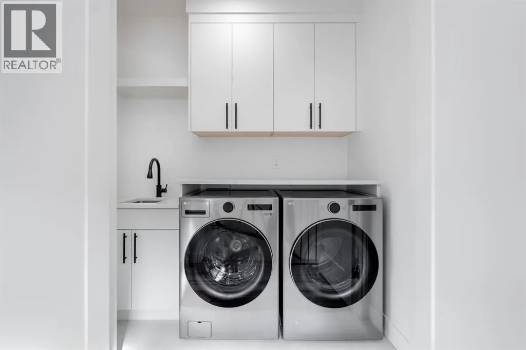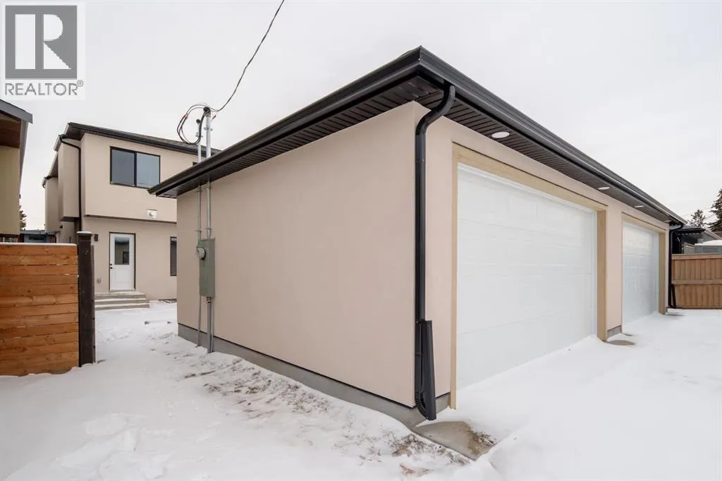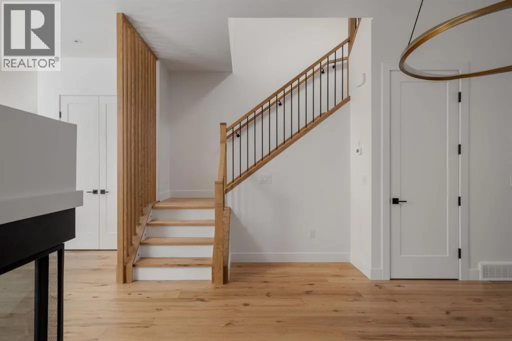 Welcome to The Killarney Collection in SW Calgaryâthoughtfully crafted on a quiet street, this fully upgraded duplex infill offers a refined balance of scale, texture, and modern comfort. From the moment you arrive, the home makes a striking first impression with its sleek, contemporary exterior, pairing oversized triple-pane windows for abundant natural light with warm natural tones of true brick detailing and stucco accenting stands out. Inside, 10-foot main floor ceilings create a grand sense of arrival, setting the tone for the interior designerâcurated colour palette carried throughout the home. Every detail has been intentionally explored, with the heart of the main floor anchored by a chef-inspired gourmet kitchen. Featuring a premium Bosch appliance package, fully custom-painted cabinetry, and an oversized waterfall granite island, the space effortlessly blends luxury with everyday functionality. A dedicated central dining off the kitchen offers a warm setting for gatherings, while the front living room provides a more intimate retreat, both areas are anchored by the full feature-wall gas fireplaceâperfect for evenings spent unwinding. Thoughtful storage solutions are seamlessly integrated, including built-ins at the entry and a fully custom mudroom at the rear, ensuring every inch of space is maximized. Ascending to the upper level, subtle design moments continue to impress, with a full wood feature wall, custom stair lighting, and luxury wide-plank hardwood flooring flowing continuously throughout both the main and upper levels for a seamless transition.The oversized primary bedroom is a true sanctuary, showcasing a vaulted and peaked ceiling design with expansive windows that welcome morning light. The spa-inspired ensuite features a dual vanity, an expansive full-tile shower, and a calming, private retreat. Two additional bedrooms offer generous proportions, each complete with custom closet built-ins. The upper-level laundry room maintains the homeâs commitment to efficiency and design, offering full cabinetry, a folding counter, side-by-side washer and dryer, and a laundry sink. A versatile work-from-home alcove completes the upper floor, easily functioning as a den or secondary living space.The lower level further extends the homeâs flexibility with an oversized 2-bedroom, 1-bath legal suite (900+SQFT), centered around a spacious open kitchenâideal for rental income, guests, or multi-generational living. A separate full laundry room, understair storage, and built-ins throughout each closet to ensure the same level of thoughtful design continues below.Perfectly positioned close to inner-city Calgary, recreation centres, shopping, and public transit, this Killarney residence offers a timeless blend of form and functionâdesigned to live beautifully today and adapt effortlessly for tomorrow. (id:27476)