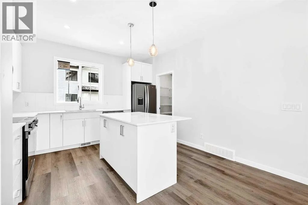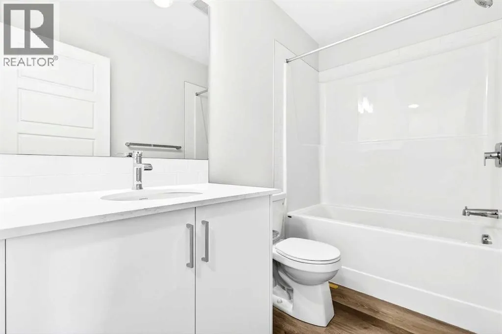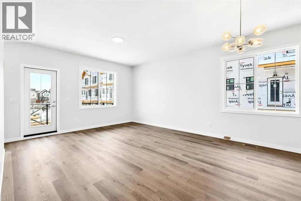 OPEN HOUSE on Saturday AND Sunday from 12-5pm. Please go to the Show Home located at 96 Creekside Drive SW for access.StreetSide proudly presents this exceptionally popular end-unit townhome, where expansive living areas meet modern comforts and sophisticated finishes. The thoughtfully designed floorplan features three spacious upper-level bedrooms and two and a half well appointed bathrooms, complemented by a versatile lower-level den perfect for a home office or quiet retreat. The heart of the home is an inviting open-concept main floor, anchored by a large gourmet kitchen featuring a functional breakfast bar for casual dining. This bright living space transitions seamlessly to a private balcony, offering a perfect setting for outdoor relaxation.The interior showcases high end craftsmanship, including modern white slab-style cabinetry with a full bank of drawers for maximum storage. The kitchen is further elevated by polished white quartz countertops and a full suite of premium stainless steel appliances. Durable luxury vinyl flooring runs throughout the primary living areas, while the stairs and upper level are finished with plush carpet over an 8lb underlay for superior comfort. Additional conveniences include an attached double car garage and a lifestyle defined by maintenance free living and professionally maintained landscaping.Life at Sirocco Gate East in Southwest Calgary is about more than just livingâitâs about thriving. Imagine having a picturesque central green space at your doorstep, offering opportunities for both tranquil reflection and vibrant community events. Residents enjoy the luxury of sophisticated townhome living with the Rocky Mountains as a backdrop and easy access to both Stoney Trail and Macleod Trail. With daily essentials located in nearby shopping centers, this home offers the perfect blend of scenic serenity and urban convenience. (id:27476)