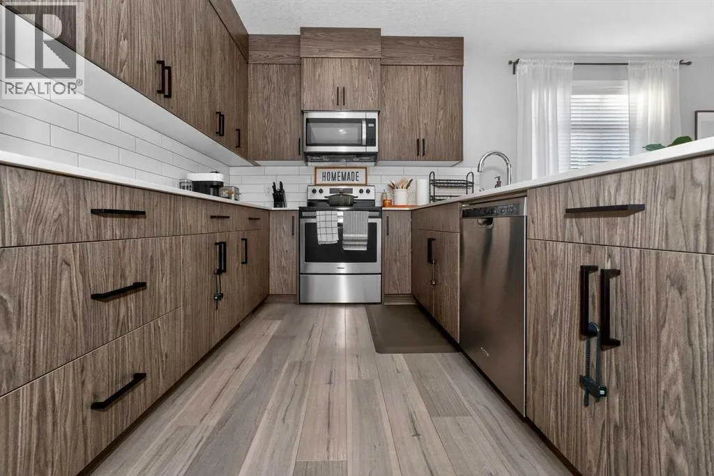 Welcome to this bright and beautifully maintained corner-unit townhome in the heart of Sage Hill. Flooded with natural light and thoughtfully laid out, this home offers a warm and welcoming feel from the moment you step inside. The main floor features a wide open and inviting layout, perfect for both everyday living and entertaining. A comfortable sitting area flows seamlessly into the dining space and a well-designed, functional kitchen, creating a space that feels open yet cozy. A convenient half bathroom completes the main level. Upstairs, you will find three well-sized bedrooms and two full bathrooms. The primary bedroom is a true retreat, highlighted by a stunning vaulted ceiling that enhances the sense of space and light. The additional bedrooms are ideal for family, guests, or a home office. The fully finished basement extends the living space with an additional bedroom and full bathroom, offering excellent flexibility for guests, extended family, or a private work-from-home setup. As a corner unit, this home stands out with extra windows, added privacy, and an abundance of natural light throughout. Located in a well-connected Sage Hill location, you are close to parks, pathways, shopping, and have quick access to major routes for an easy commute. This is a rare opportunity to own a bright, fully finished townhome with four bedrooms in one of Northwest Calgaryâs most desirable communities. (id:27476)