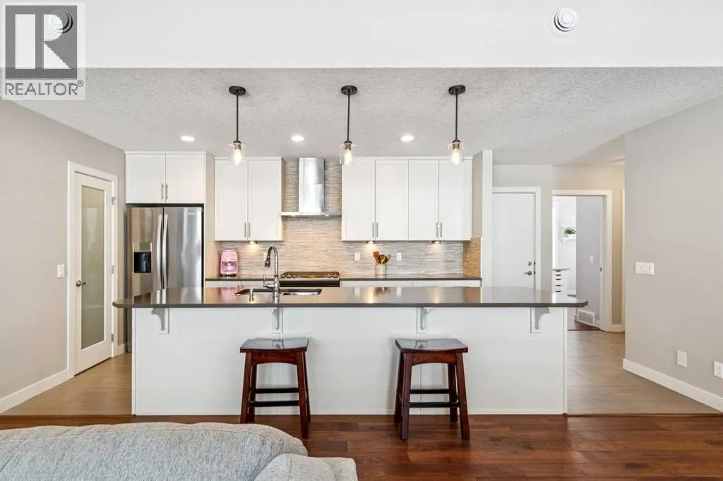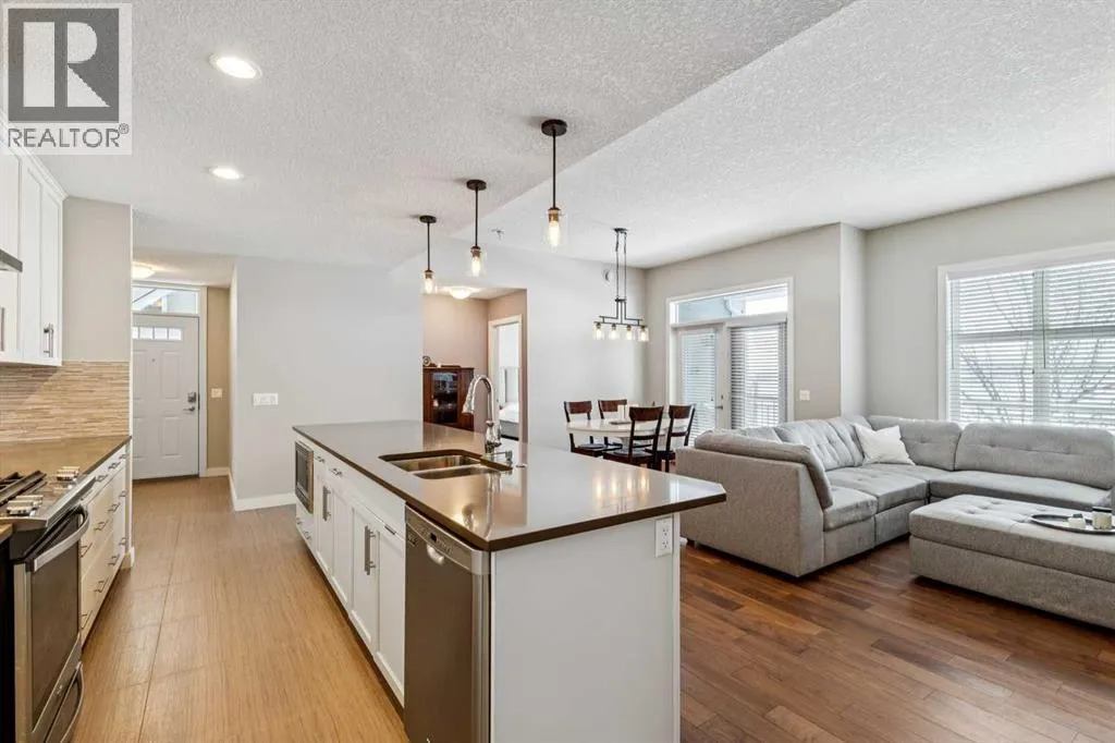 ***$10K PRICE IMPROVEMENT***OPEN HOUSE SATURDAY APRIL 4TH 2PM-4PM*** Welcome to effortless bungalow-style living in this beautifully designed main-level townhouse offering 1,435 sq ft, 3 bedrooms, 2 bathrooms, and a double attached garage with driveway, all for under $540K!This bright, open-concept home is perfect for those seeking comfort, convenience, and low-maintenance living. The stunning kitchen is the heart of the home, highlighted by an impressive 11-foot quartz island, stainless steel appliances including a gas stove, and a walk-in pantryâideal for cooking, entertaining, and everyday living. Hardwood and tile flooring run throughout the entire unitâno carpet anywhere, while heated tile floors in the kitchen, front entrance, and ensuite add an extra touch of luxury.The spacious living area features high ceilings, a cozy gas fireplace, and central A/C for year-round comfort. The primary suite offers a private retreat with a walk-in shower with bench, quartz counters with double sinks, and plenty of space to relax.Step outside to the south-facing extended patio, complete with floating tiles and a BBQ gas hookupâperfect for enjoying sunny afternoons or entertaining guests.Located in a pet-friendly complex with reasonable condo fees of $390.41/month, this home offers true lock-and-leave convenience with snow removal and landscaping included. An ideal opportunity for empty nesters looking to downsize without sacrificing lifestyle, or for buyers who love the freedom to lock up and travel with peace of mind. Itâs only a few minutes drive from Silverado Marketplace featuring Sobeys, Anytime Fitness(24 hrs/day), Kildares Irish Pub, Poached YYC, Holy Grill and Shoppers Drug Mart. It also provides easy access to Stoney Trail and MacLeod Trail. Donât miss this exceptional opportunityâschedule your viewing today! (id:27476)