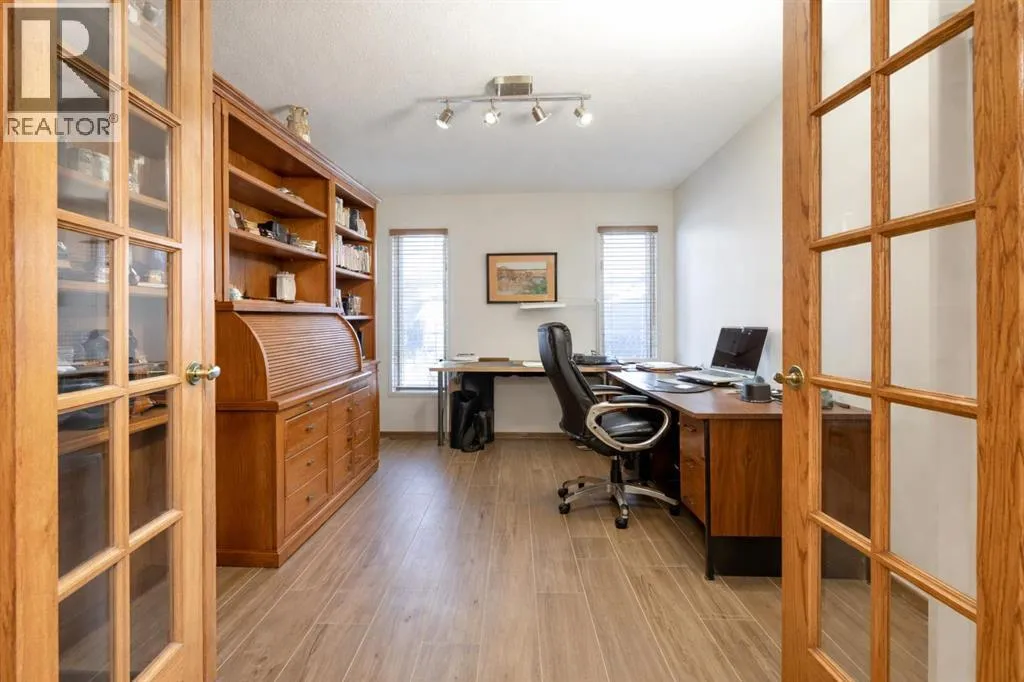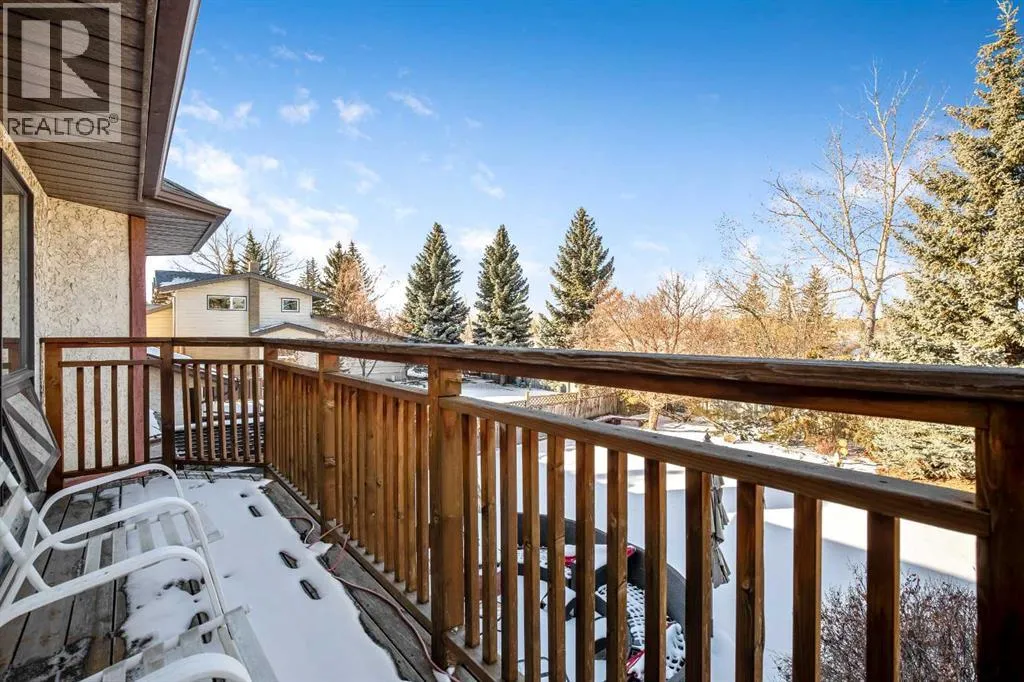 Welcome to this beautifully updated estate home nestled in the prestigious Canyon Meadows Estates community. Situated on a generous lot in a quiet cul-de-sac, this exceptional residence delivers nearly 4,000 square feet of thoughtfully designed living space perfect for growing families and those who love to entertain. Step inside and discover the warmth of rich walnut hardwood floors flowing through a gracious formal dining and in the expansive living area. The heart of this home is a stunning modern kitchen bathed in natural light, featuring crisp white cabinetry, generous counter space, and premium Miele appliances that elevate every culinary experience. Upstairs, the luxurious primary bedroom suite is a true retreat, complete with a spa-inspired ensuite bathroom and a private balcony offering views overlooking Canyon Meadows Golf Course. Three additional spacious bedrooms provide plenty of room for the entire family. The fully developed basement features another full bathroom, a large recreation room, and abundant storage space. This home boasts an impressive list of major updates, including kitchen, flooring, lighting, air conditioning installed in 2024, new garage doors in 2022, elegant Hunter Douglas blinds, renovated bathrooms completed in 2018, and dual high-efficiency furnaces for year-round comfort. A triple-car garage provides exceptional convenience and storage. The outdoor spaces are equally impressive, with multiple patios, beautiful cedar decks, and a relaxing hot tub surrounded by a private, mature yard that creates your own personal oasis. Located in one of Calgary's most sought-after neighborhoods, this home's prime location puts you within walking distance to schools of all levels, fitness facilities, tennis courts, LRT, public transportation, all your amenities, and the natural beauty of Fish Creek Park and the prestigious Canyon Meadows Golf & Country Club! This is a rare opportunity to own a truly exceptional home. Schedule your private showing today before this one is gone! (id:27476)