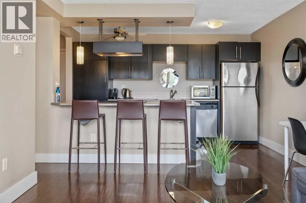 Click brochure link for more details** Turn Key Corner Unit in the Heart of Mission. FULLY FURNISHED. Incredible Investment Opportunity. Welcome to Unit #306, a bright and beautifully upgraded corner unit in the heart of Mission, one of Calgaryâs most vibrant and desirable inner city neighbourhoods. This stylish one bedroom, one bathroom condo offers over 600 square feet of thoughtfully designed living space and comes fully furnished with all furnishings included, making it a true turnkey opportunity for homeowners and investors alike. Whether you are looking for a chic inner city residence, a short term rental, or a long term executive rental, this property offers exceptional flexibility and income potential. The unit has the potential to generate significant annual rental income, providing a rare opportunity to own a high performing property in one of Calgaryâs most sought after locations. Inside, the bright open concept layout features hardwood flooring, updated lighting, and a modern kitchen complete with espresso cabinetry, generous storage, a breakfast bar, and upgraded stainless steel appliances. Large windows fill the space with natural light, enhancing the open and inviting feel that only a corner unit can provide. The living area opens onto a private south facing balcony with beautiful mountain and sunset views, the perfect place to unwind after a day in the city. The spacious bedroom features brand new carpet, ample closet space, and room for additional furnishings, while the refreshed bathroom includes a new toilet and fully updated shower plumbing. A standout upgrade is the in-suite laundry with a washer/dryer combo unit along with updated plumbing and electrical, adding modern convenience rarely found in comparable units. This unit also includes a highly coveted underground parking stall with a separate title, included in the purchase price. In this neighbourhood, secure underground parking is a major asset and adds significant long term value. Located just steps from 4th Street, 17th Avenue, the Elbow River pathways, parks, cafés, restaurants, and boutique shopping, this is truly walkable inner city living at its best. Everything Calgaryâs urban lifestyle has to offer is right outside your door. Fully furnished. Income generating. Underground titled parking. Corner unit. A rare opportunity to own a turnkey property in the centre of Calgaryâs most exciting inner city community. (id:27476)