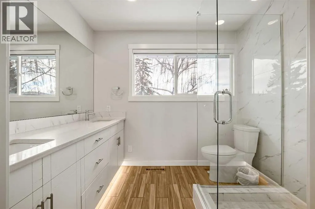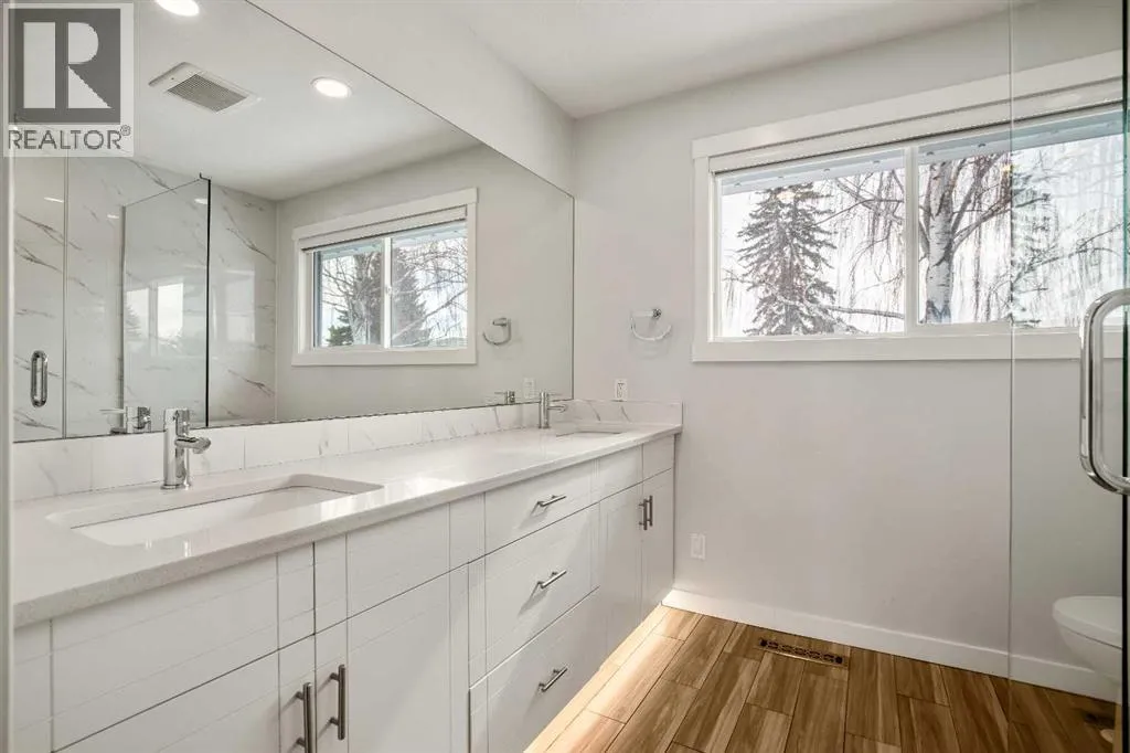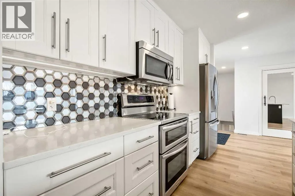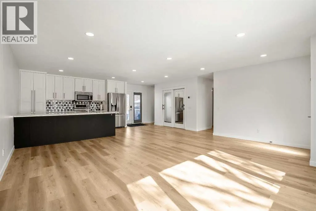 Welcome to this Updated Bungalow in the heart of Acadia, offering a modern open floor plan and over 2100 SF of developed living space in one of Calgaryâs most established and desirable neighborhoods.Renovated in 2018, the main floor features a bright open-concept layout with large windows and pot lights throughout, creating a warm and inviting space filled with natural light. The beautifully designed kitchen is perfect for both everyday living and entertaining, showcasing quartz countertops, stainless steel appliances, modern cabinetry, a spacious breakfast bar, and abundant pantry and storage space.The main level offers 2 spacious bedrooms and 2 full bathrooms, highlighted by a huge primary retreat designed for comfort and privacy, complete with a spa-inspired ensuite featuring a large glass walk-in shower â the perfect place to relax and unwind at the end of the day.The fully developed lower level significantly expands the living space, featuring 2 additional bedrooms, a full bathroom, and a massive family / recreation roomâperfect for movie nights, a games area, teenagers, guests, or a flexible home office setup.Major upgrades provide both modern comfort and long-term peace of mind, including a high-efficiency furnace and humidifier (2025), new attic insulation (2026), roof shingles approximately five years old, upgraded vinyl windows, and a durable stucco exterior accented with soffit lighting for beautiful evening curb appeal. These upgrades make this home truly move-in ready, allowing you to simply enjoy the space without worrying about major expenses.Outside youâll love the massive backyard and large rear deck, perfect for summer entertaining, gardening, or relaxing evenings.The OVERSIZED heated garage is fully insulated and drywalled with a gas heater, providing an ideal space for parking, storage, or a workshop, with potential for future EV upgrades if desired. Located in prime Acadia, this home is within walking distance to schools, parks, te nnis courts, pools, shopping, and transit, with quick access to Southland Drive, Blackfoot Trail, and Deerfoot Trail for easy commuting. Everyday amenities including Costco, IKEA, and major shopping centres are just minutes away. Known for its mature tree-lined streets, wide lots, and strong community feel, Acadia remains one of Calgaryâs most desirable established neighborhoods.Quick possession available. (id:27476)