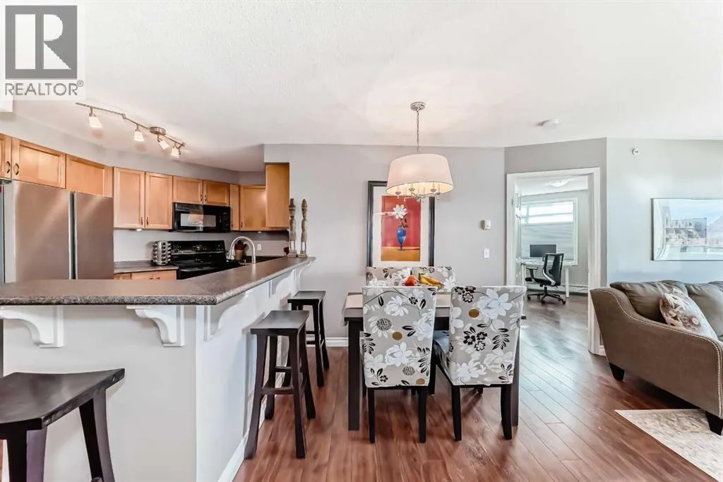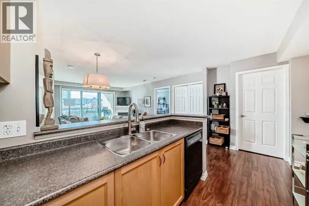 LOCATION, LIFESTYLE, and LUXURY â Welcome to Discovery Pointe!  Nestled in the heart of one of Downtown Calgary's most desirable and walkable inner-city neighborhoods, the West End! This stunning 2-bedroom, 2-bathroom home is your gateway to vibrant urban living! Located on the third floor, this unit boasts a bright, modern aesthetic with high-end finishes throughout. The gourmet kitchen features sleek countertops, premium stainless steel & black appliances, and plenty of cupboard and counter space â perfect for the passionate home chef. A large breakfast bar opens to the dedicated dining area and a cozy living room complete with a gas fireplace â the perfect space to cuddle up to your favourite book or unwind with the latest Netflix binge. Step outside onto your oversized covered balcony â perfect for BBQs, hosting friends and family alike, or simply enjoying a quiet morning coffee in the fresh air. The primary bedroom is filled with natural light and connects to a generous walk-through closet leading to your 3-piece bathroom, complete with a glass-enclosed standup shower â a cozy retreat at the end of your day! The spacious second bedroom could easily serve as a den or office for quiet work and includes a 4-piece ensuite bath as well. Additional conveniences include concierge services, in-suite laundry, a TITLED underground parking stall, underground visitor parking, a massive party room for hosting special events, a games room with ping-pong and billiards, and an extremely well equipped fitness centre on the 3rd floor steps from your new home. This prime location offers unbeatable access to all the trendy shops, cafes, and restaurants of Downtown Calgary to satisfy whatever you're craving. Live steps from the Bow River pathways, parks, and C-Train station - with free transportation within the downtown core - this location offers the best of urban convenience and natural beauty. Donât miss your chance to own in one of Calgaryâs most coveted neighborhoods â call t oday to book your private showing! (id:27476)