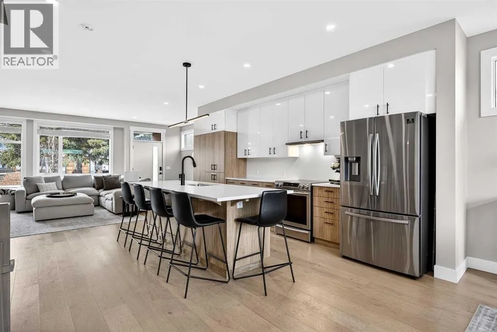 Welcome to this beautifully maintained home in the highly desirable community of Highwoodâ a quiet, safe, tree-lined neighbourhood known for its welcoming atmosphere, excellent schools, and exceptional family lifestyle. Just minutes from downtown, this location offers the rare combination of peaceful residential living with convenient access to the city core. Surrounded by parks and green space, you are only moments from the scenic pathways and recreation areas of Confederation Park and Egertâs Park, as well as several nearby playgrounds and off-leash dog parks. Step inside to discover a bright open-concept main floor filled with natural light, featuring light wood flooring, custom cabinetry and large windows throughout. The modern kitchen flows seamlessly into the dining and living areas, creating the perfect layout for everyday family living and entertaining. Large patio doors connect the indoor space to the outdoor deck, enhancing the homeâs airy and inviting feel. Upstairs offers a thoughtfully designed family layout, highlighted by a spacious primary bedroom with a large walk-in closet and ensuite. This level also has two additional bedrooms, a full bathroom and the convenience of upper-level laundry. The fully developed lower level provides incredible flexibility with a generous multi-purpose space ideal for a playroom, home gym, office, or media room, a large storage room, plus an additional bedroom and bathroom â perfect for guests or growing families. With over $40,000 in upgrades including professional landscaping, concrete work, new tankless hot water heater, air conditioning, heated garage and water softener, this home offers both style and functionality. Combining modern design, thoughtful upgrades, and an unbeatable inner-city location, this exceptional home presents a rare opportunity to enjoy the best of northwest Calgary living in one of the cityâs most charming communities. (id:27476)