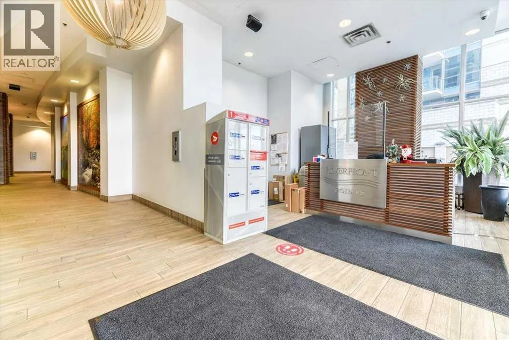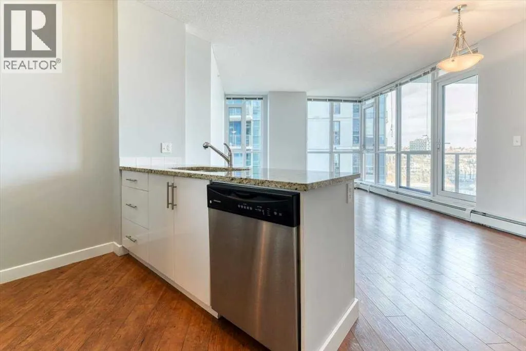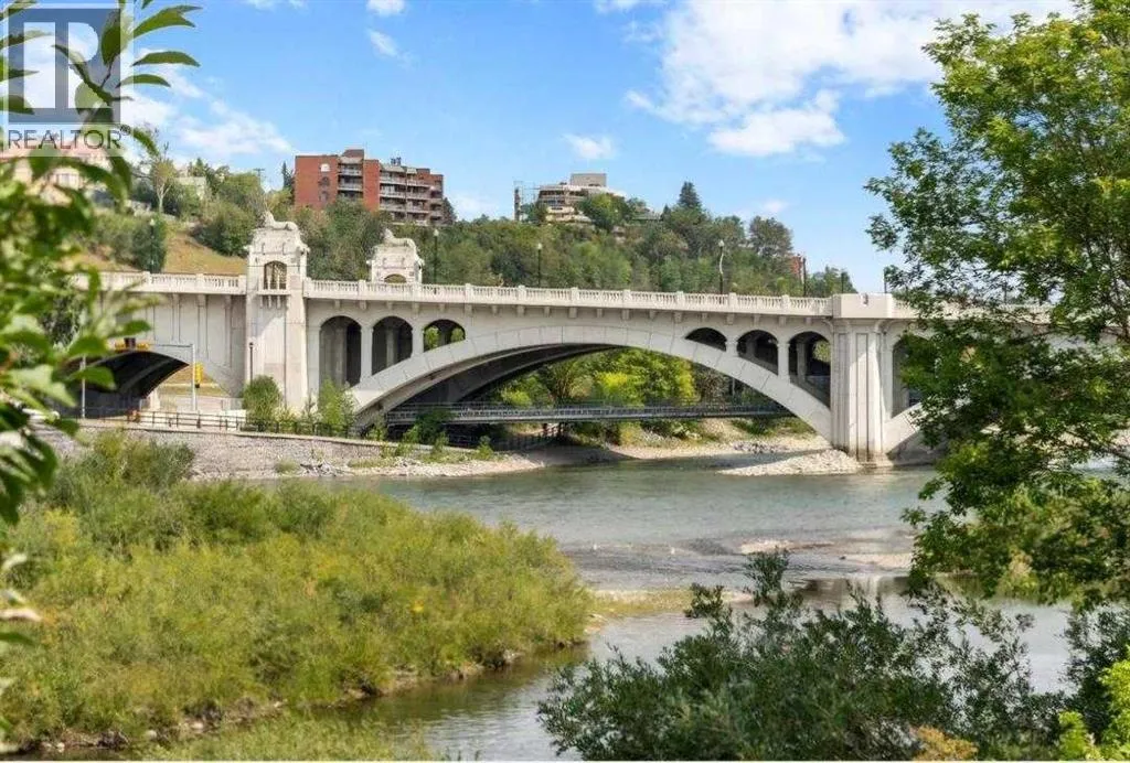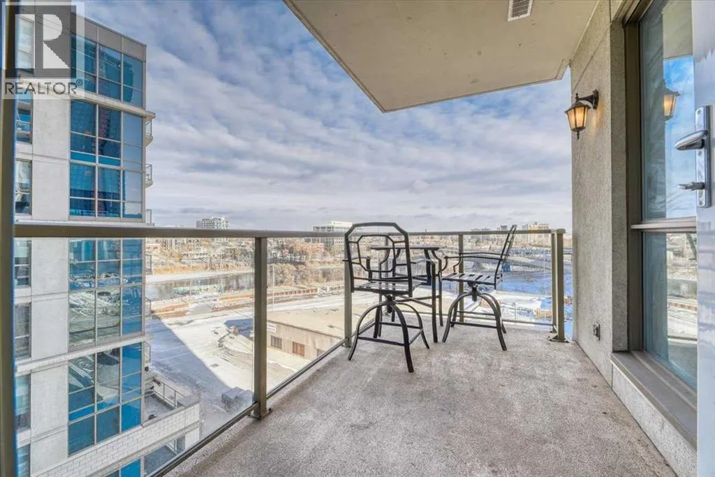 Welcome to Riverfront Pointe, where this splendid 2-Bedroom, 2-Bathroom, 1 heated underground parking stall Condo awaits. Enjoy Panoramic views of the river and lush river valley from every window, including the Balcony. The open-concept kitchen, dining and living area is ideal for entertaining, enhanced by 9-foot ceilings and abundance of natural light. Convenience is key with in-suite laundry, and fully equipped fitness room. Enjoy the modern kitchen, granite countertop and SS appliances. Stroll to trendy restaurants, live music venues, the world-class Library, and scenic Bow River Pathways. Hurry and schedule your showing, and make this your Downtown Oasis. (id:27476)