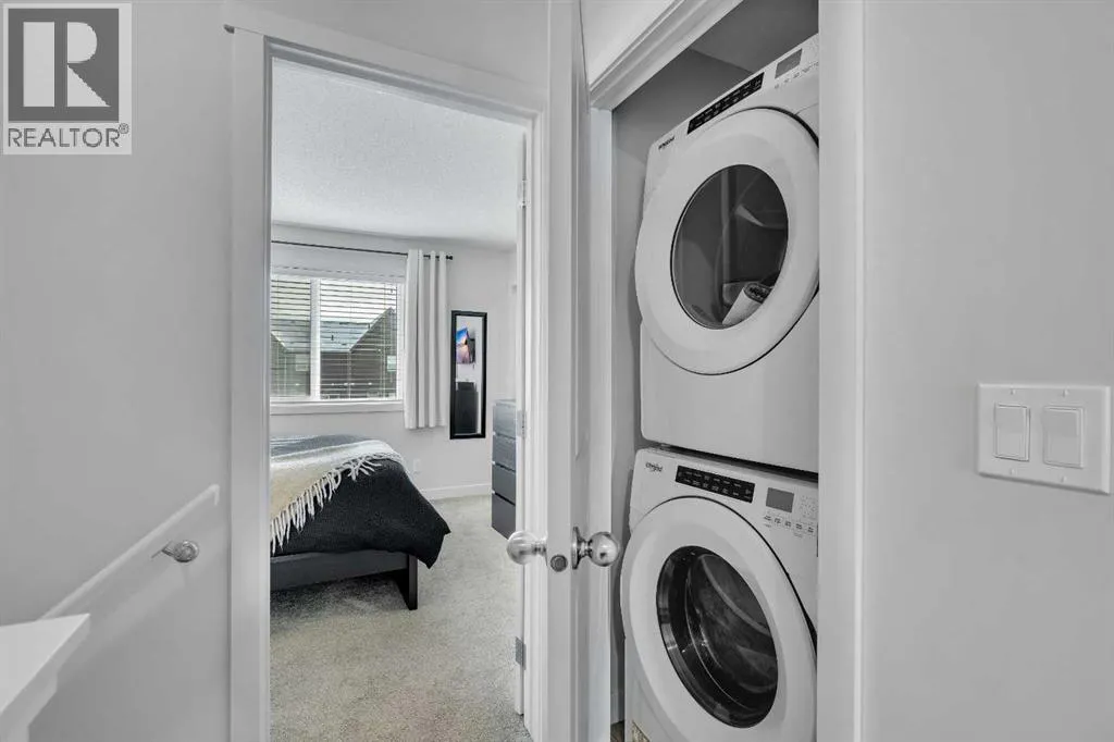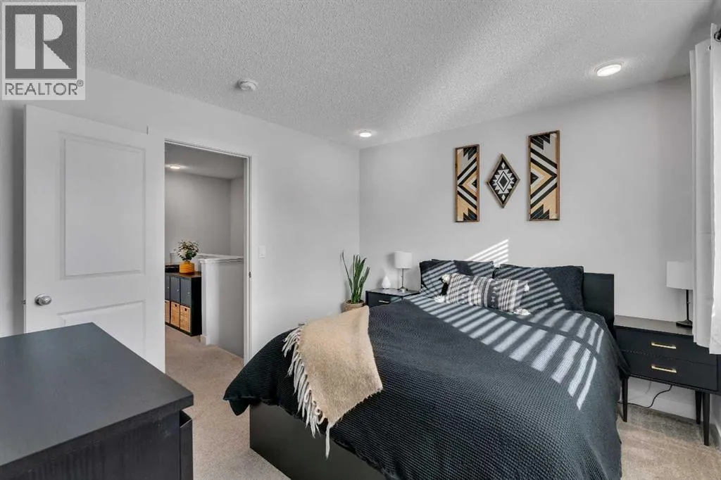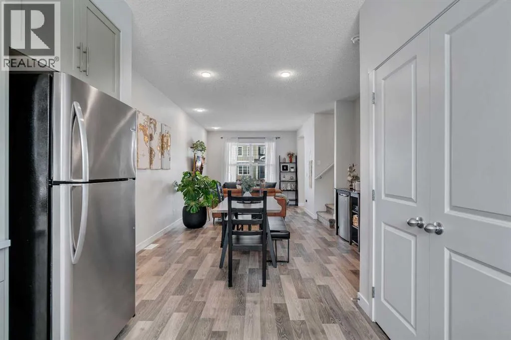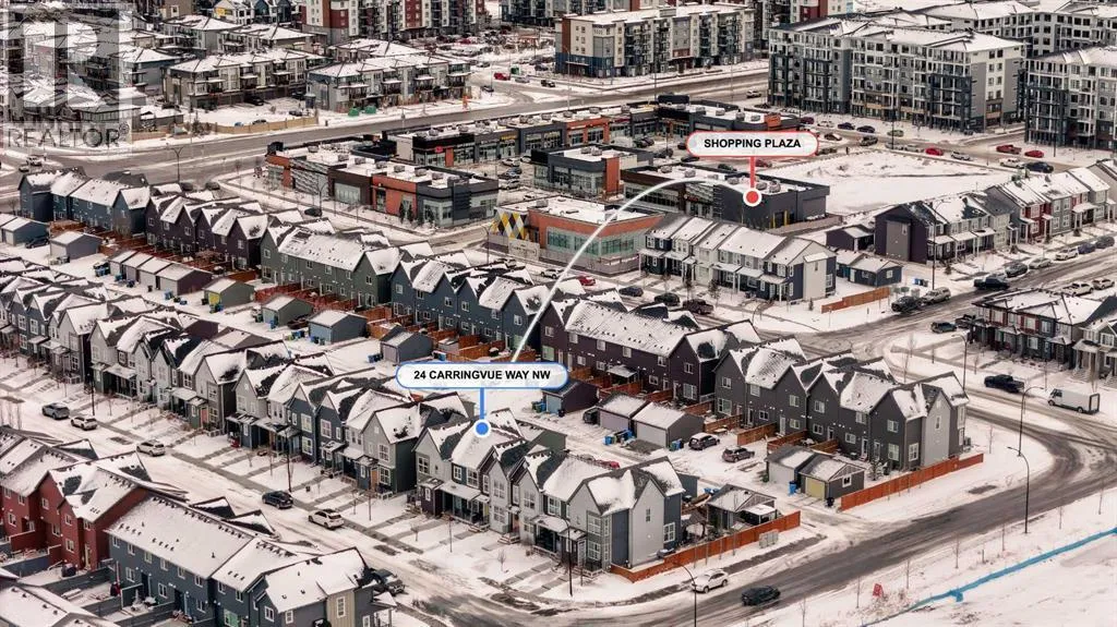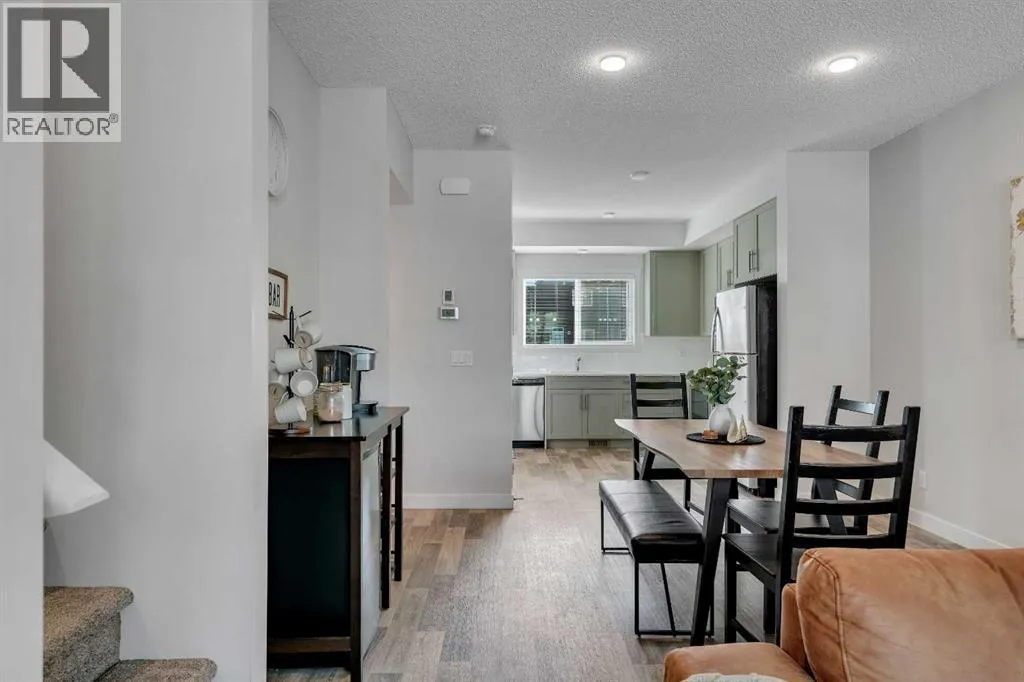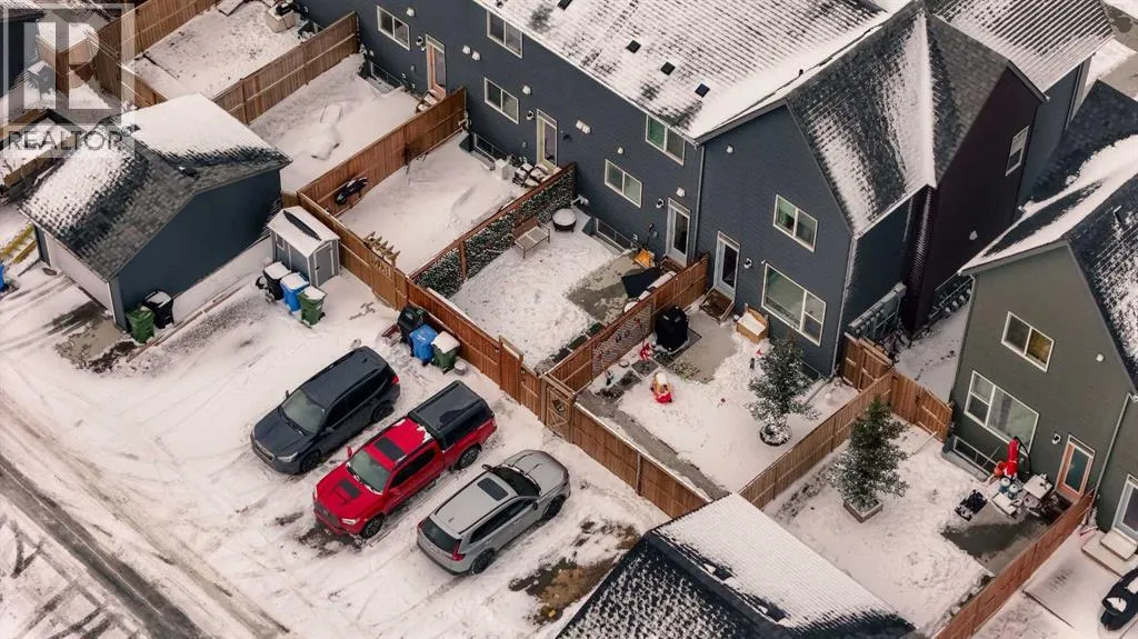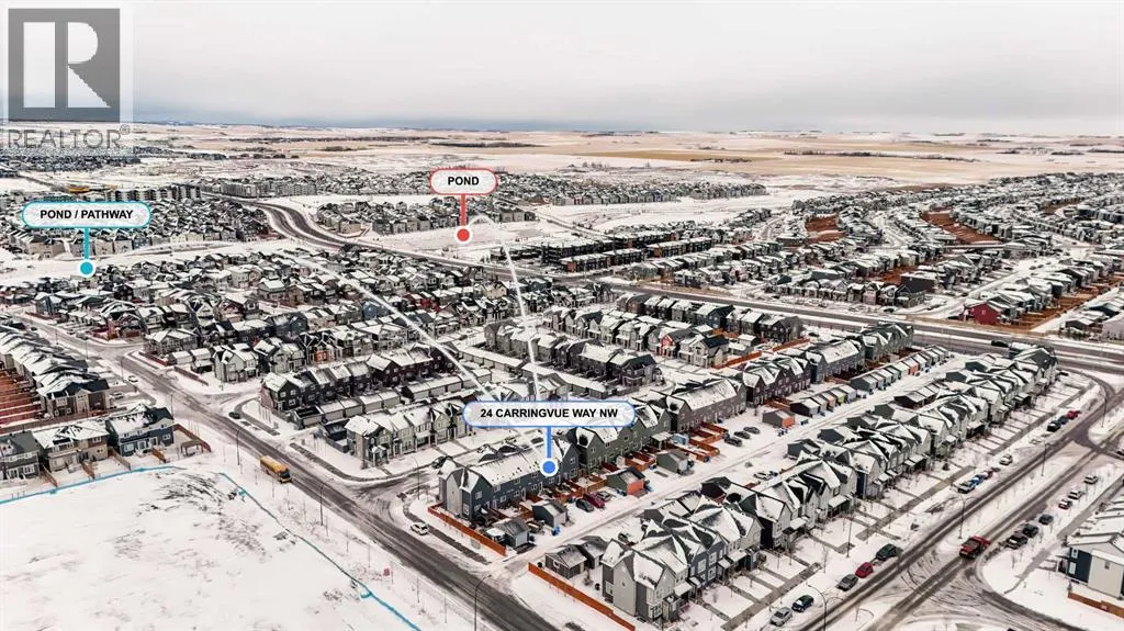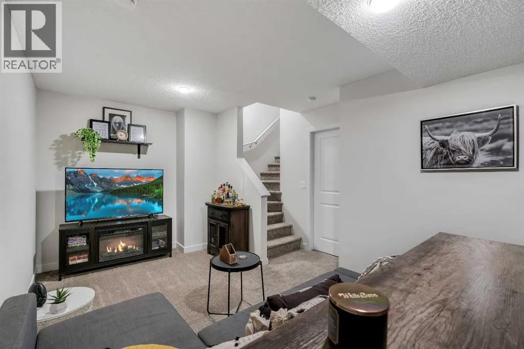 **Open House Sat. April 4 from 12-3p** NO CONDO FEES and MOVE-IN READY, this 2021-built 3-bedroom, 2.5-bath townhome in Carrington offers 1,224 sq.ft. above grade, a professionally finished basement, private fenced yard, and private parking for 2 vehicles. With eastâwest exposure, the home is filled with natural light throughout the day, and the open-concept main floor features quartz countertops carried throughout the home, stainless steel appliances, high ceilings, and a functional layout designed for everyday living and entertaining.Upstairs youâll find three bedrooms, including a primary suite with walk-in closet and private 3-piece ensuite, along with a full 4-piece bathroom. The finished basement adds valuable additional living space ideal for a second living room, home office, gym, or media room, while still offering a large storage and utility area.Outside, the low-maintenance private backyard includes a gas BBQ line and opens to the rear parking area with wiring rough-in for a future garage if desired. Located on a quiet street steps from Carringtonâs pathway network, parks, and green space, with quick access to Stoney Trail and nearby shopping and amenities, this home offers a great combination of space, flexibility, and long-term value without condo fees. (id:27476)
