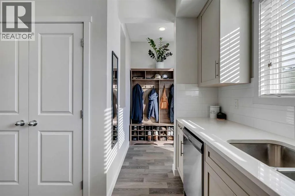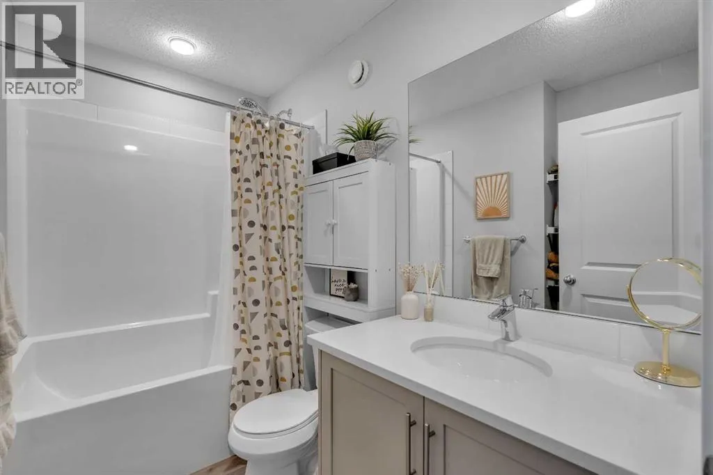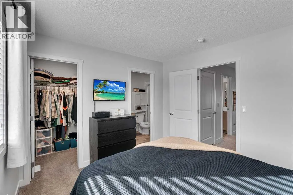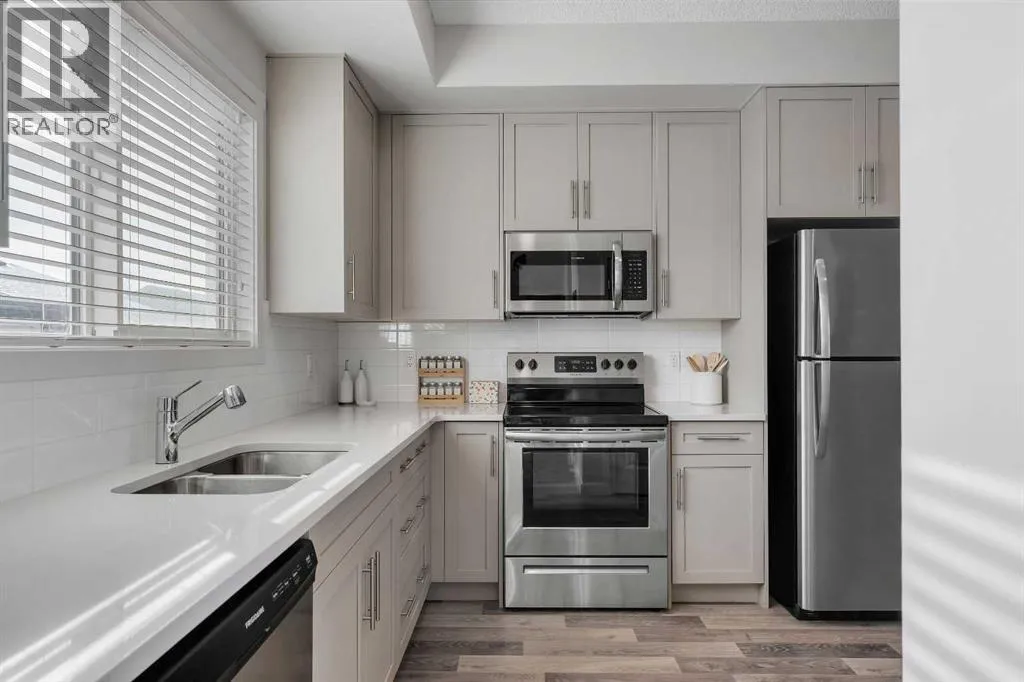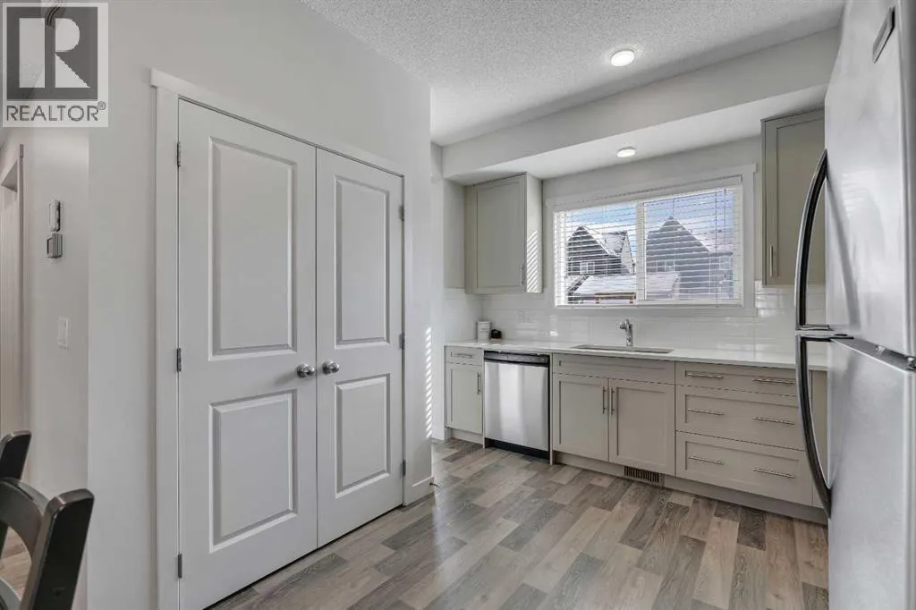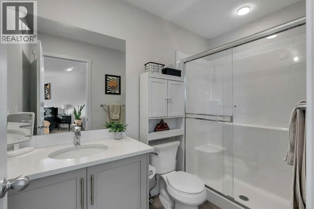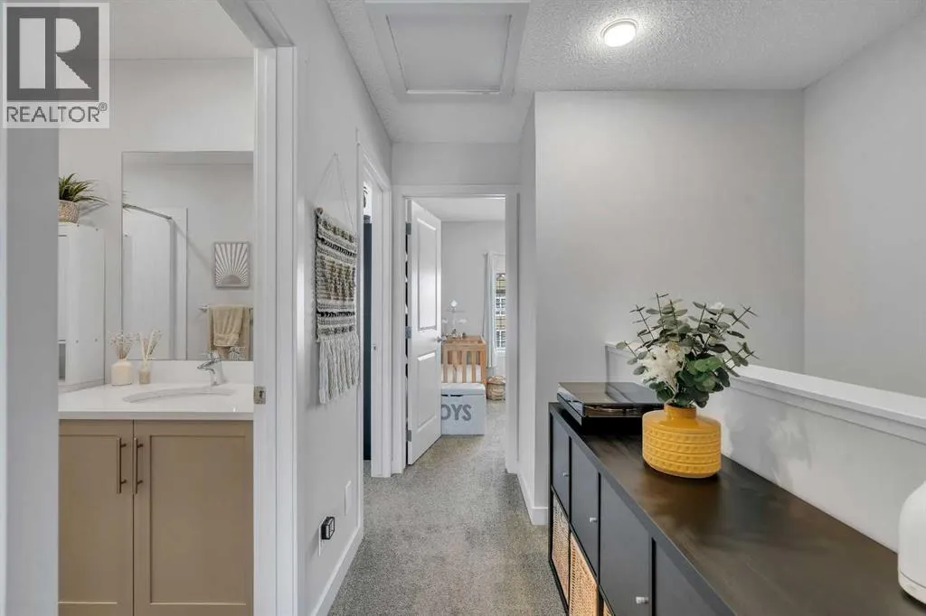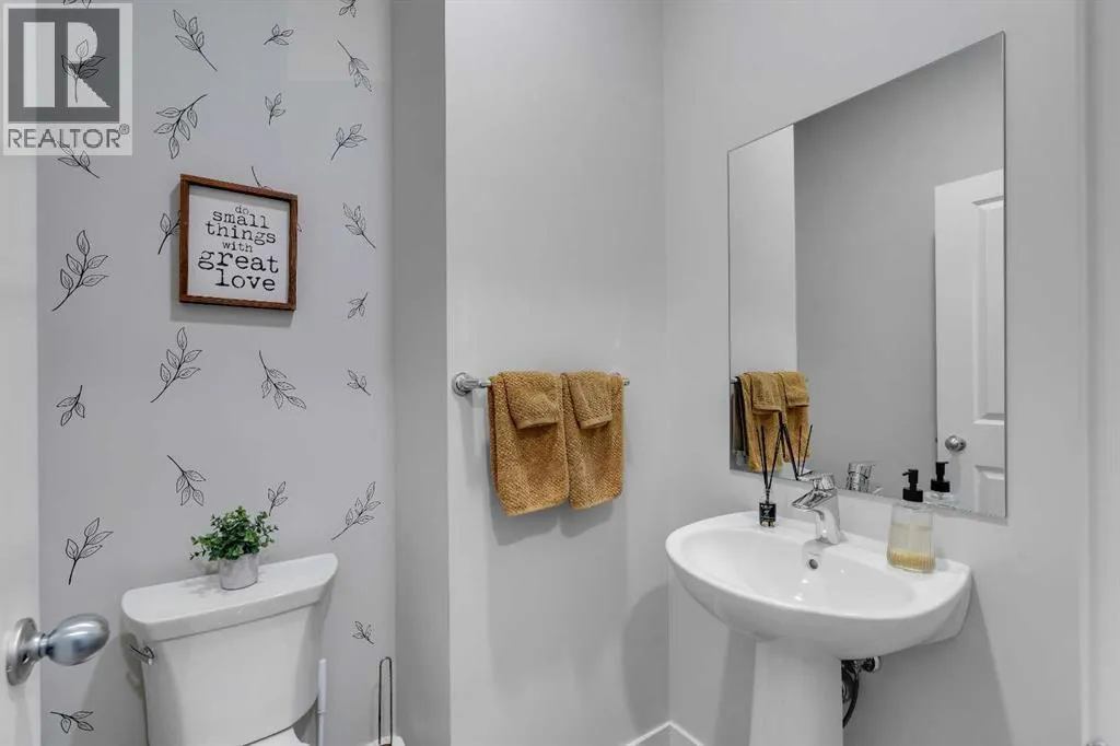 **Open House Sat. April 4 from 12-3p** NO CONDO FEES and MOVE-IN READY, this 2021-built 3-bedroom, 2.5-bath townhome in Carrington offers 1,224 sq.ft. above grade, a professionally finished basement, private fenced yard, and private parking for 2 vehicles. With eastâwest exposure, the home is filled with natural light throughout the day, and the open-concept main floor features quartz countertops carried throughout the home, stainless steel appliances, high ceilings, and a functional layout designed for everyday living and entertaining.Upstairs youâll find three bedrooms, including a primary suite with walk-in closet and private 3-piece ensuite, along with a full 4-piece bathroom. The finished basement adds valuable additional living space ideal for a second living room, home office, gym, or media room, while still offering a large storage and utility area.Outside, the low-maintenance private backyard includes a gas BBQ line and opens to the rear parking area with wiring rough-in for a future garage if desired. Located on a quiet street steps from Carringtonâs pathway network, parks, and green space, with quick access to Stoney Trail and nearby shopping and amenities, this home offers a great combination of space, flexibility, and long-term value without condo fees. (id:27476)