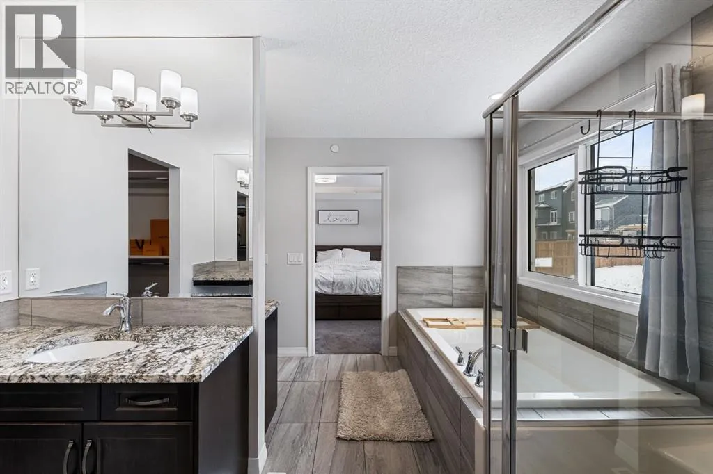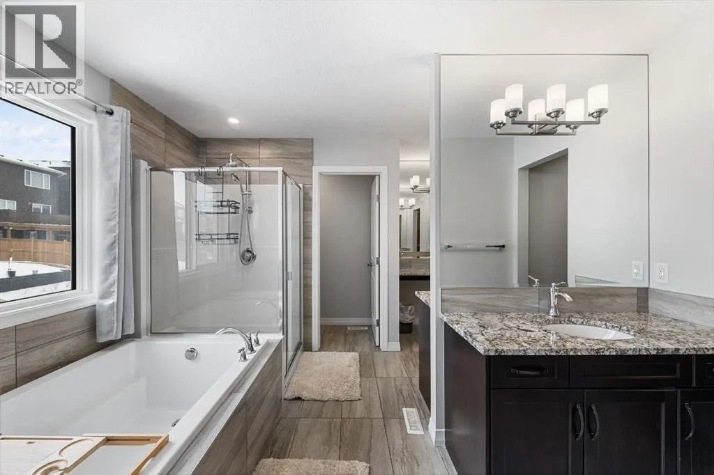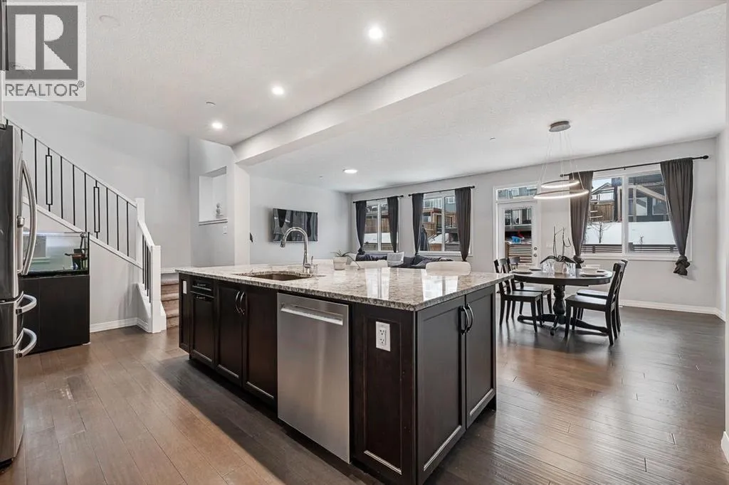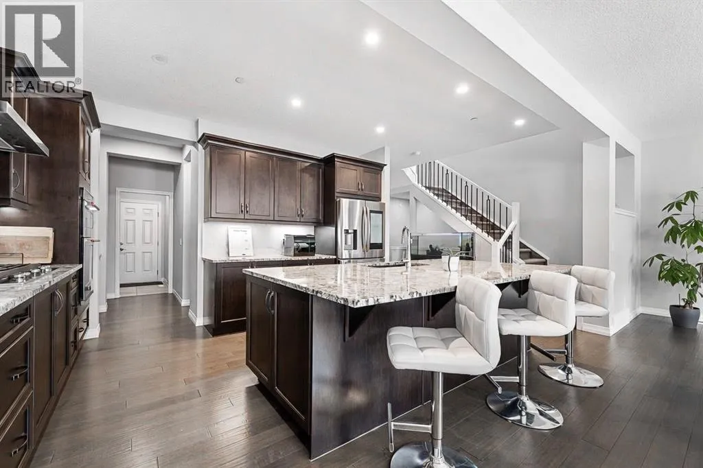 Welcome to 308 Lucas Way NW, a beautifully upgraded detached home offering over 2,600 sq ft of living space, in the vibrant community of Livingston. With modern finishes, energy efficient upgrades, and a thoughtfully designed layout, this home offers the perfect balance of comfort, style, and functionality. The open concept main floor features rich hardwood flooring and a stunning chef inspired kitchen complete with granite countertops, a large central island, built-in gas cooktop, built-in oven, stainless steel appliances, and a modern smart screen refrigerator. The space flows seamlessly into the dining and living areas, making it ideal for everyday living and entertaining. A dedicated main floor office provides the perfect setup for working from home.Upstairs youâll find a spacious bonus room, a relaxing primary suite featuring a spa inspired ensuite and walk-in closet, along with two additional bedrooms, a full bathroom, and convenient upstairs laundry. The unfinished basement offers incredible potential for future development, giving you the opportunity to design the space to suit your lifestyle, whether itâs a recreation room, home gym, or extra living space. Additional highlights include SOLAR PANELS for improved energy efficiency, CENTRAL AIR conditioning for Calgaryâs warm summer days, and an attached double garage. Located just steps from walking paths and parks, this home also offers quick access to Stoney Trail and is less than 15 minutes from Calgary International Airport. Restaurants, grocery stores, and many other everyday amenities are also just minutes away. This is a fantastic opportunity to own a spacious, upgraded home in one of Calgaryâs fastest growing and most amenity rich communities. (id:27476)