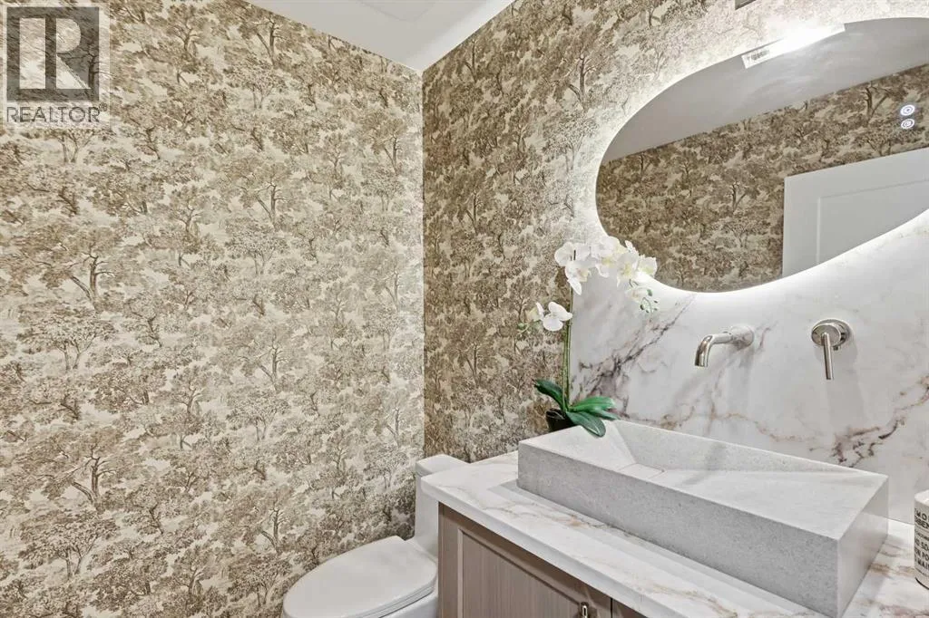 A rare Varsity Estates offeringâwhere mature trees, quiet streets and modern Tuscan warmth create a home that feels like a private sanctuary. With tree-lined views from nearly every room, the setting is as impressive as the design.Step inside and the space unfolds with intention. Wide-plank oak floors and a striking open-riser staircase with wood treads and black spindles create an architectural welcome, drawing you to the main living level.The great room is wrapped in oversized LUX windows and anchored by a full-height stone fireplace with custom built-insâmade for slow mornings and effortless evenings. It flows into the showpiece kitchen, where the expansive 14' island becomes the heart of the homeâtopped with a waterfall quartz counter and book-matched veining that reads like art. Rift-cut white oak cabinetry and a fluted rift-cut canopy over the gas range set a refined tone, paired with Monogram appliances. Daily luxuriesâwater purifier and instant hot waterâkeep it beautifully functional, while the scale and flow make hosting effortless.The dining area opens to the back deck for seamless indoorâoutdoor livingâan entertainerâs dream and the kind of layout where gatherings feel natural, meals linger longer, and memories are made.Outside, the backyard is an oasis: private, mature, and layered. A generous deck off the dining room sets the stage for summer dinners, while an expansive secondary deck tucked into the heart of the yard is surrounded by greeneryâideal for hosting, lounging, or quiet mornings with coffee. With birdsong and the wind moving through the treetops, it feels far more like a backyard sanctuary than inner-city living.The primary retreat was designed to immerse you in that calm, with a massive picture window, warm wood accents and natural tones that invite you to exhale. A huge walk-in closet with custom built-in organizers completes the suite, including a makeup desk set beneath a window for natural light. The spa-like ensuite cont inues the experience with a generously scaled tiled shower with glass doors, a fluted freestanding tub that blends effortlessly into the fluted tile feature wall, and in-floor heatingâfinishes that feel cohesive and intentional from space to space.Downstairs, the lifestyle continues with a lounge-ready media space, wet bar and glass-front wine room, plus a dedicated gym and a generous lower-level âsecond primaryâ with large above-grade windows and tranquil backyard views. A hidden storage room adds a fun pop of personality.Including an insulated, heated double garage with EV rough-in and a hard-wired security system. In Varsity Estates, youâre minutes to top schools, Market Mall, the University of Calgary, Foothills & Childrenâs Hospital, LRT access, and the Bow River pathway networkâone of Calgaryâs most complete, connected communities.This isnât just a homeâitâs an experience, and a rare Varsity Estates luxury offering that doesnât come along often. (id:27476)
