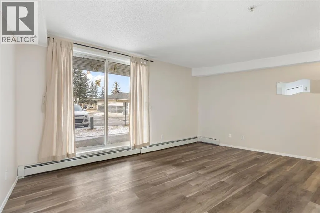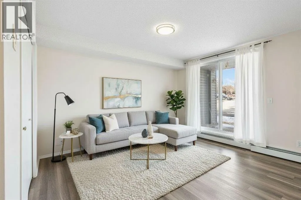 Affordable and move-in ready main floor condo offering comfortable, low-maintenance living in a convenient location. This bright unit features an open-concept layout with functional living space and low-maintenance laminate flooring throughout. The kitchen flows seamlessly into the living and dining area, creating a practical space for everyday living and entertaining. Enjoy the added convenience of in-suite laundry and a spacious ground-level patio, perfect for relaxing or summer BBQs. The unit has been professionally cleaned, making it truly move-in ready. The building offers excellent value with all utilities included in the condo fees and a secure environment with monitored security cameras. A dedicated surface parking stall with electrical outlet is included, along with plenty of visitor parking for guests. Pet lovers will appreciate that small dogs are permitted with board approval (maximum two pets per unit). Ideally located just off Stoney Trail, this home provides quick access to transit, including the MAX Purple BRT line with direct access to downtown. Youâre minutes from East Hills Shopping Centre, featuring Costco, Walmart, Cineplex, and numerous restaurants and services, as well as the Peter Lougheed Hospital. For everyday convenience, Tim Hortons is just a short walk away. Outdoor enthusiasts will enjoy being close to the Rotary/Mattamy Greenway and Elliston Park, home to Calgaryâs annual GlobalFest fireworks festival. With its affordable price, low-maintenance lifestyle, and unbeatable access to shopping, transit, and amenities, this property is ideal for first-time buyers, down-sizers, or investors looking for a solid opportunity. (id:27476)