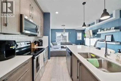 EXTENSIVELY UPGRADED | Former Truman Show Home | LIGHT & BRIGHT | 3 Bed & 2.5 Bath | ATTACHED HEATED DOUBLE GARAGE | West Exposure | This is not your typical townhouse! It features high-end luxurious finishes. Located on a quiet, central street in the sought-after community of Cornerstone is this 3 level, open concept townhouse. This home is HEAVILY upgraded as it was a former show home. Thereâs an attached HEATED double garage. High-efficiency furnace & hot water tank. Vinyl floors. The open concept floor plan gives the home a grand feeling. Neutral color palette with various built-in features all over the home. HIGH-END finishes with all the bells & whistles. This home was designed to perfection! The main floor features a spacious foyer upon entry. Youâll find a generous bedroom on the main as well as a utility room and an attached double garage. The second level features open concept upon entry and is full of NATURAL light from the oversized windows. 9 FT ceilings. The upgraded kitchen includes ceiling height cabinets with soft close doors, a pantry, a large central island, premium quartz countertops, and stainless appliances. To complete the main floor, thereâs a dedicated dining area with a stone feature wall, a half bathroom, and a large living room with various built-ins. Step outside and youâre greeted with an enormous finished patio with west exposure off of the second level. The third level features 2 generous master bedrooms. Both masters include a spacious walk-in closet and their own 4 piece bathroom. The primary master bedroom has a wonderful tray ceiling. Thereâs also dedicated laundry as well. The front yard has been landscaped and mowing is covered within the low condo fee. Youâll love the large common area full of green space. The bus stop is only a 30 second walk away from this quiet street. It shows like-new! Great for INVESTORS or those looking to live in an excellent property. Youâre looking at it! Cornerstone is a well-established communit y that features many upcoming schools & amenities in the district. Truly a breathtaking property. (id:27476)