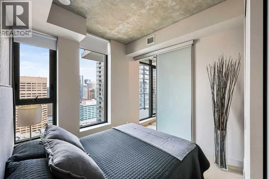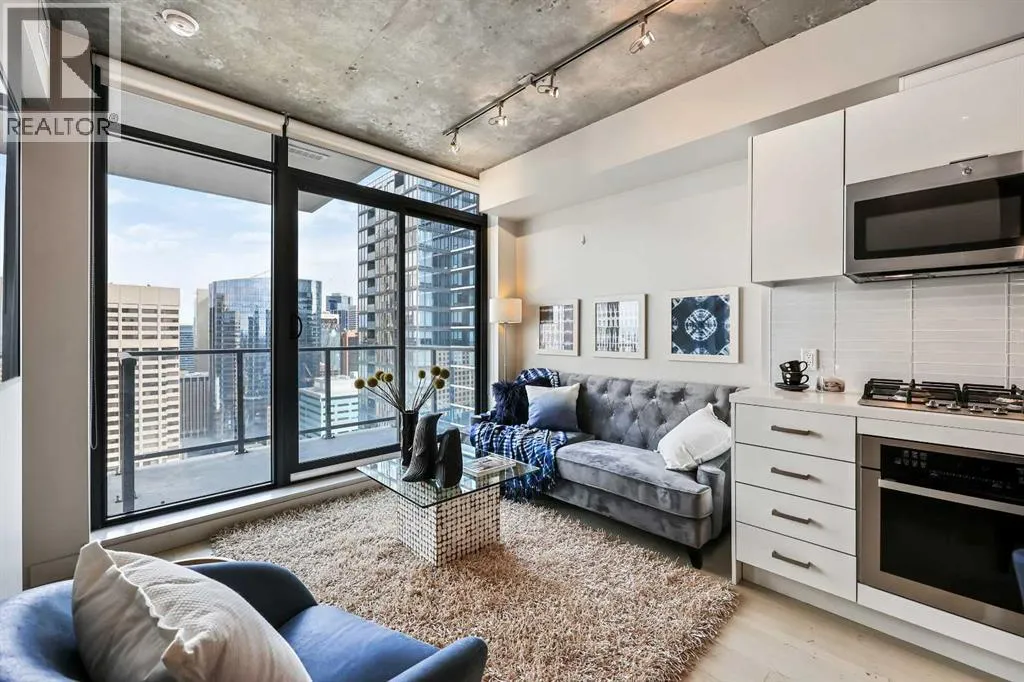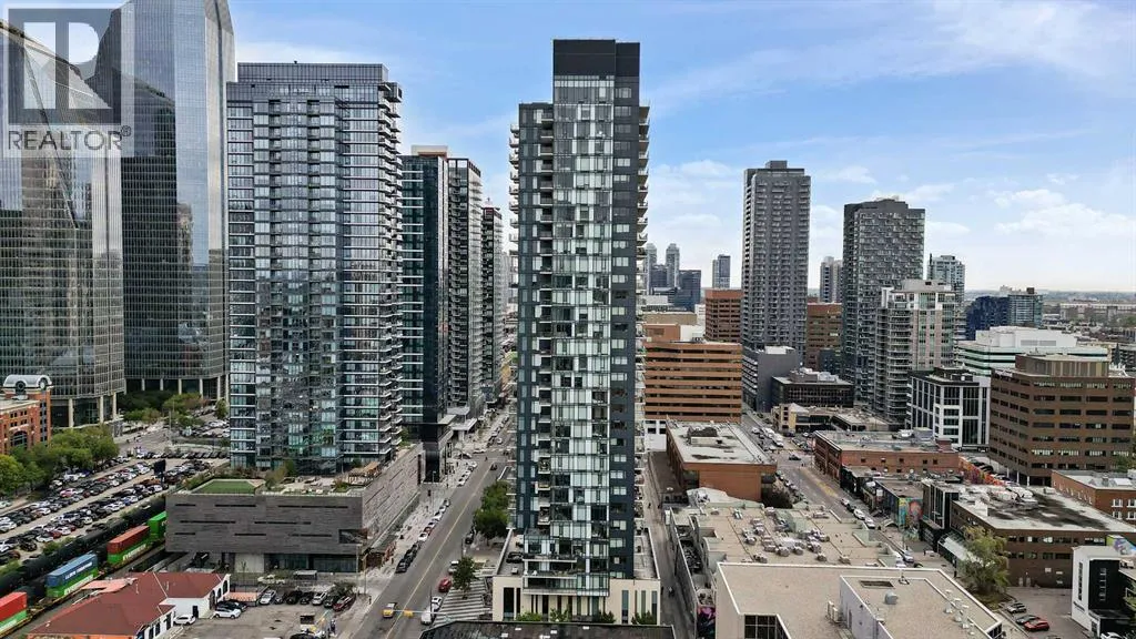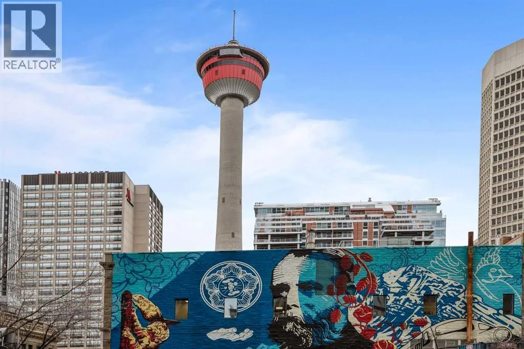 Experience elevated downtown living in this stylish one-bedroom residence in the highly sought-after 6th and Tenth building. Perched on the 14th floor, this thoughtfully designed home offers stunning city views, including a direct sightline to the iconic Calgary Tower. Designed with modern urban living in mind, the unit features striking 9-foot exposed concrete ceilings and expansive floor-to-ceiling windows that flood the space with natural light. Step out onto your private balconyâcomplete with a gas BBQ hookupâperfect for relaxing or entertaining while enjoying the city skyline. The contemporary kitchen is both sleek and functional, offering quartz countertops, stainless steel appliances, and a gas cooktop. In-suite laundry adds everyday convenience, while the smart, efficient layout maximizes every square footâideal for professionals, investors, or those seeking a low-maintenance downtown lifestyle. Residents enjoy access to impressive building amenities including a Sky Garden Lounge with an outdoor pool, a fully equipped fitness centre, landscaped terrace, secure bike storage, and 24-hour concierge and security services. Situated in the heart of the city, the location is unbeatable. You're just steps from CORE Shopping Centre and surrounded by some of Calgaryâs best dining and coffee spots, including Monogram Coffee, Analog Coffee, The Beltliner, Pigeonhole, Last Best Brewing & Distilling, and National on 10th. For outdoor recreation, take advantage of nearby green spaces like Princeâs Island Park and the scenic Bow River Pathway system, perfect for walking, running, or cycling. Commuting is effortless with a bus stop just two blocks away and the LRT only four blocks from your door. This is a fantastic opportunity to own in one of downtown Calgaryâs most vibrant and desirable communities. (id:27476)