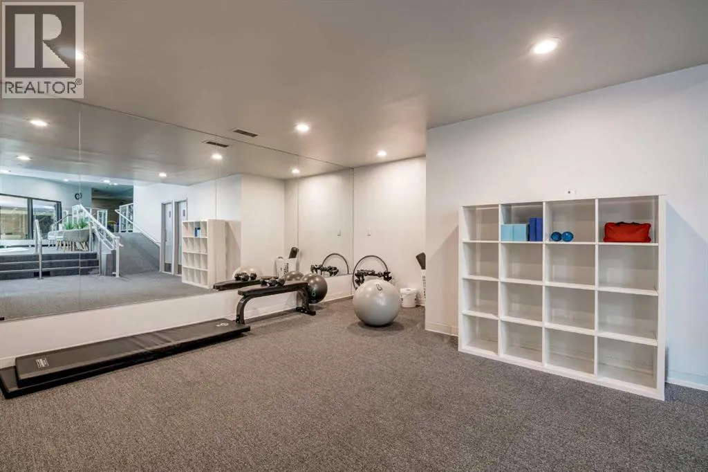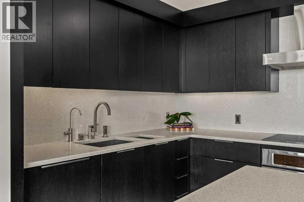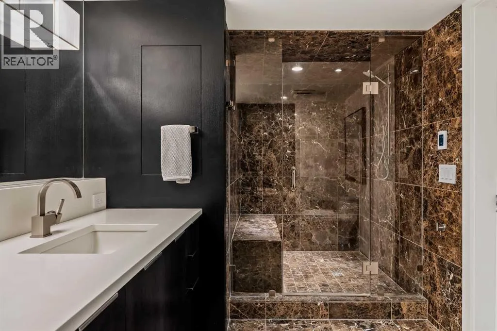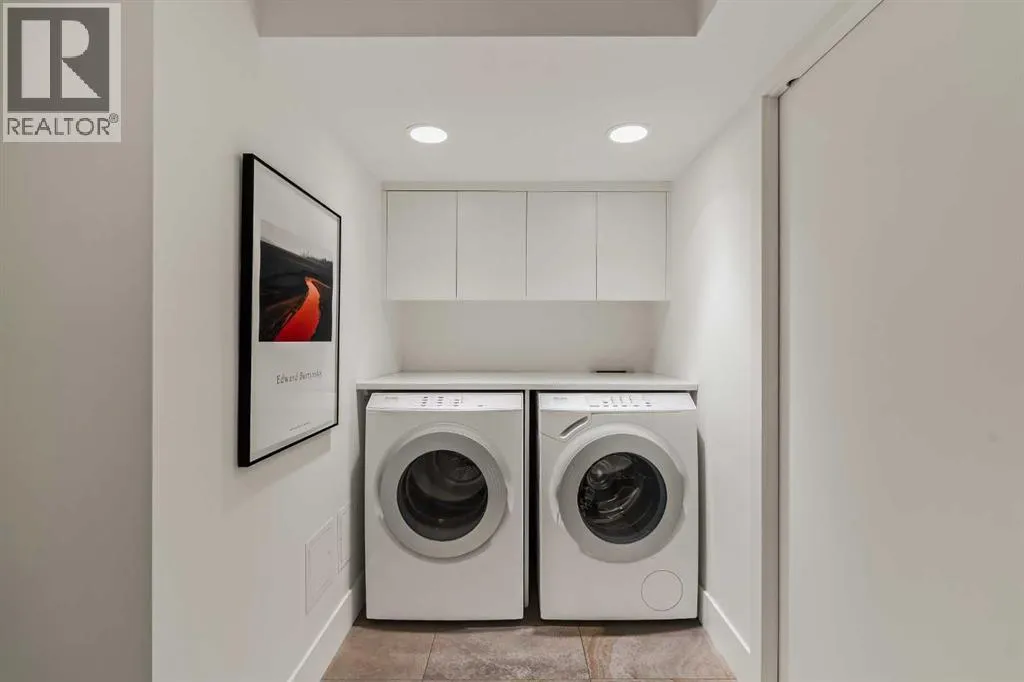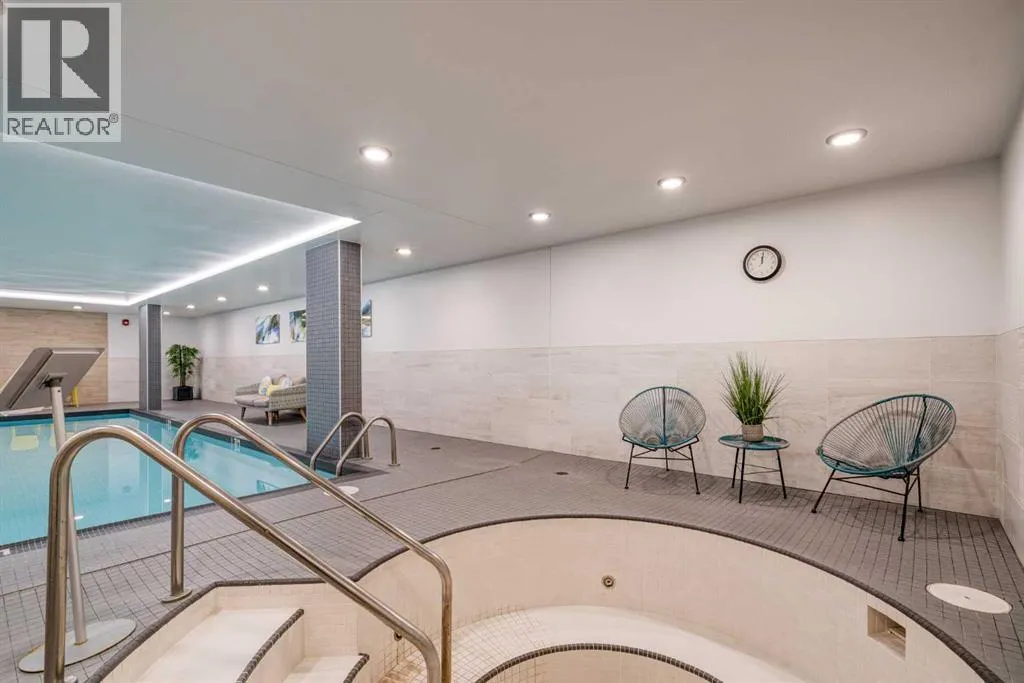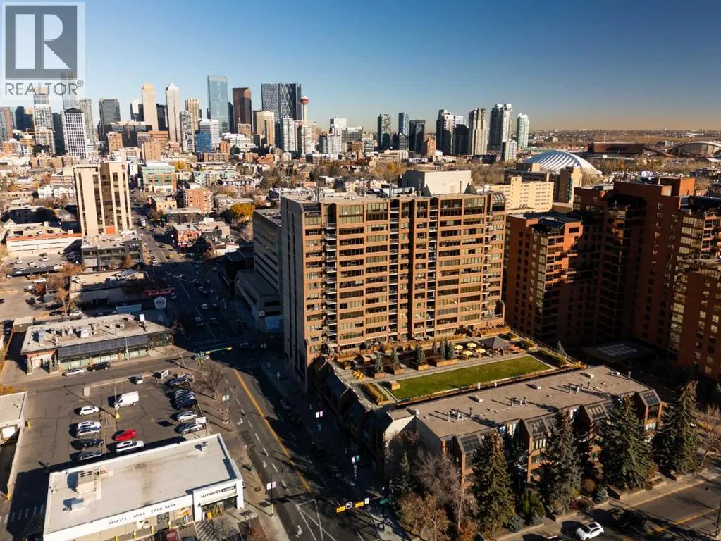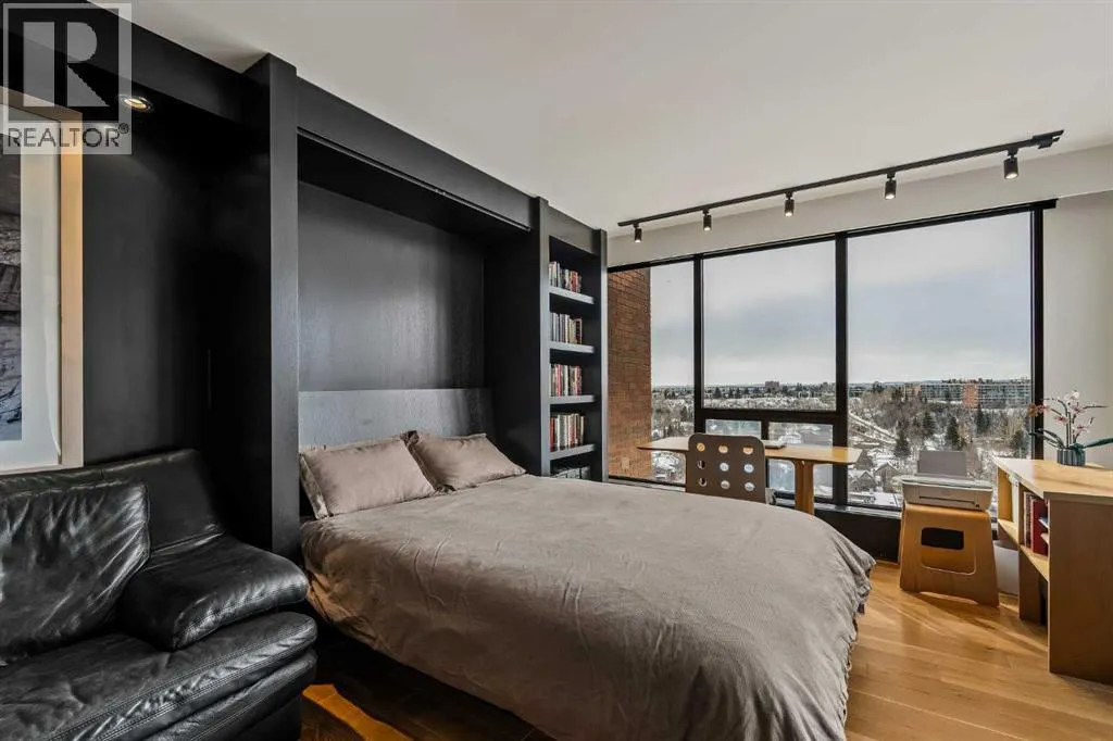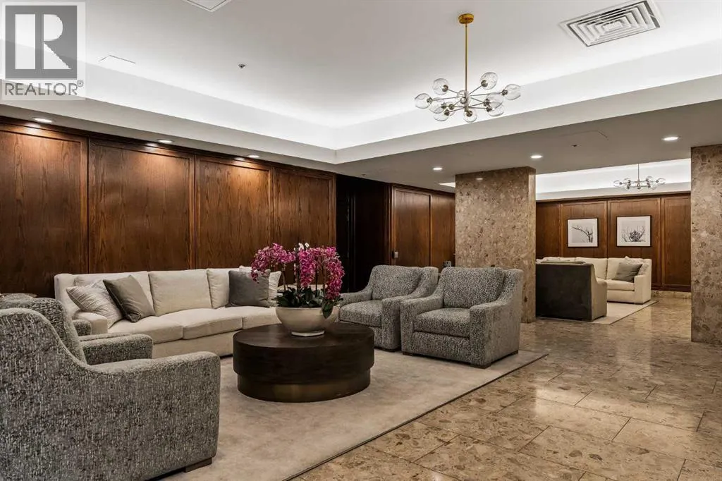 Architecturally renovated, this remarkable 2 storey penthouse delivers over 2,300 sq ft of refined living space with sweeping river valley and mountain views in the heart of Mission. Positioned within Roxboro House, one of Calgaryâs most established concrete buildings, the home places river pathways, restaurants, cafés and downtown access within an easy walk while maintaining a quiet elevated setting above the city. Dramatic double height ceilings define the main living space where floor to ceiling windows frame expansive views and fill the interior with natural light throughout the day. Custom millwork and built-in library shelving introduce architectural character while a striking Bocci designer light installation creates a sculptural focal point above the living area. Marble fireplace surrounds add warmth and elegance while hardwood flooring extends throughout the home to create a cohesive and timeless finish. Entertaining flows easily between the living and dining areas where open sightlines toward the river valley form an impressive backdrop for gatherings. Quartz countertops and a full height quartz backsplash highlight the beautifully renovated kitchen where extensive custom cabinetry and a large central island support both daily routines and larger entertaining. Walk-in pantry storage keeps the space organized while built-in speaker wiring enhances the atmosphere for hosting. Adjacent bar cabinetry incorporates three wine fridges with capacity for approximately 750 bottles, creating a dedicated entertaining feature rarely found in condominium living. Upper level design introduces a flexible den retreat with its own fireplace and access to a second balcony, offering an ideal setting for a home office, lounge or private reading space overlooking the city skyline while an included Murphy bed allows the space to easily accommodate overnight guests when needed. Primary bedroom accommodations prioritize comfort and privacy through large windows, blackout blinds an d extensive custom storage solutions. Heated floors in the lavish ensuite provide everyday comfort while modern fixtures enhance the spa-inspired atmosphere. Air conditioning supports year-round comfort and upper level laundry adds everyday convenience. Two private balconies extend the living space outdoors while showcasing panoramic mountain and river views. Tandem underground parking accommodates 2 vehicles and an assigned storage unit adds valuable extra space. Roxboro House residents enjoy secure entry with front desk service along with exceptional amenities including an indoor pool, hot tub, sauna, fitness room, woodworking shop, library and billiards lounge, party room and a beautifully landscaped sky terrace with BBQ areas and outdoor gathering spaces. Mission remains one of Calgaryâs most vibrant inner-city neighbourhoods where river pathways, parks, restaurants and boutique shopping create an exceptional walkable lifestyle just minutes from downtown. (id:27476)