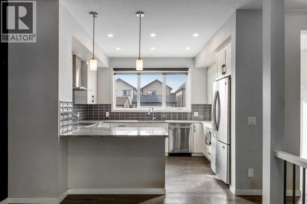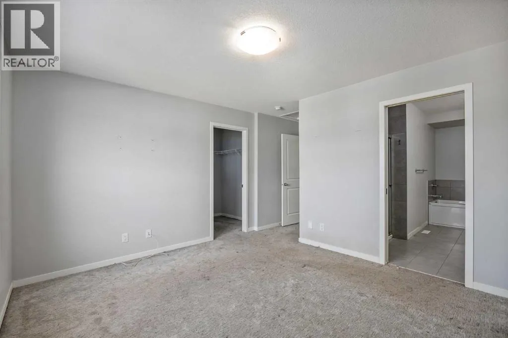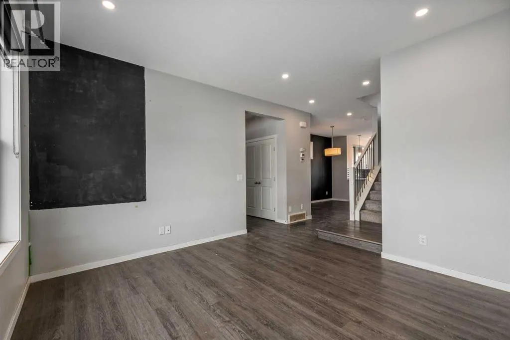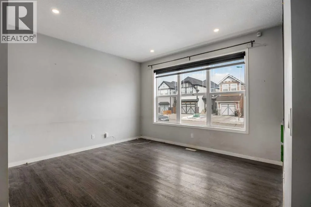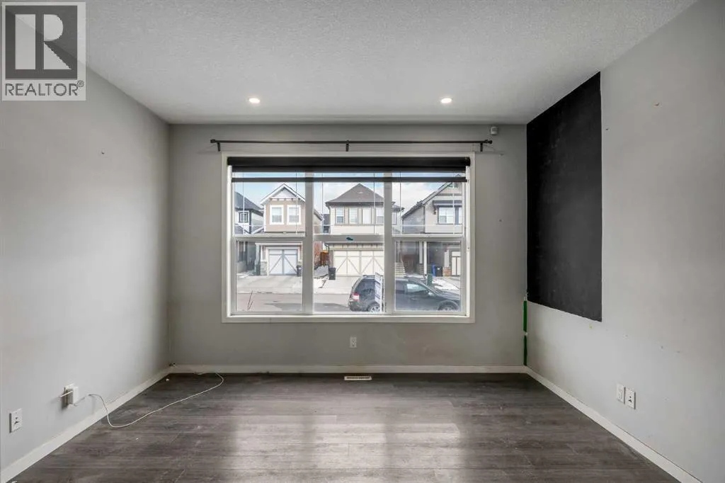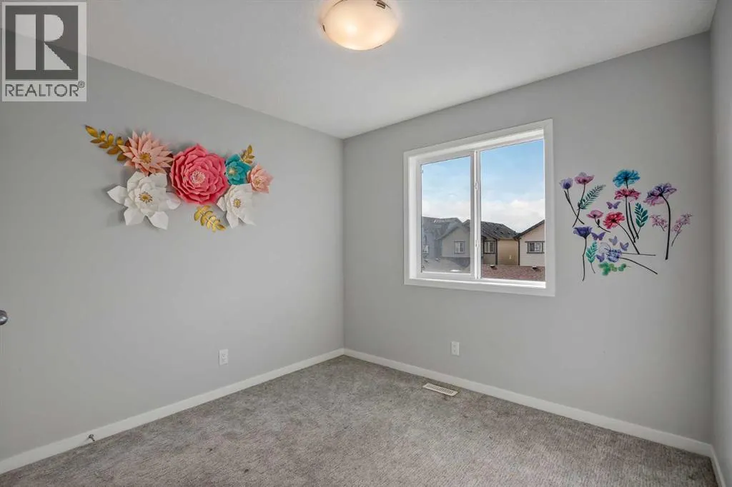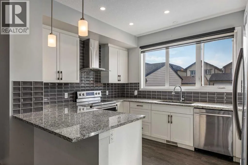Excellent opportunity for a first-time buyer, an expanding family or an investor. Located in Mahogany on Calgaryâs SE edge, with quick access to downtown or Albertaâs natural treasures this 2.5 storey, 1,588 sq. ft., 3 bedrooms and 2.5 bathroom home allows for plenty of space to grow. The east-facing front yard has timesaving, low maintenance landscaping. On entering the foyer note the wide plank laminate flooring throughout and the high ceilings. On the right, the living room has lots of natural light due to the large front window. An adjacent den could be utilized as a home office. The dining room and kitchen are open concept. The dining area is substantial and would easily accommodate large gatherings. The kitchen is strikingly decorated in white and grays. White, modern cabinetry, stainless appliances and hood fan, light gray, quartz countertops and darker gray tiled backsplash plus an oversized window over the undermount, double sink make for a well-lit, inviting work area. A mudroom with an abundance of shelving leads to the rear deck and a 2-pc. bath complete this level. The carpeted second level boasts a generous primary bedroom with walk-in closet and an impressive 4-pc. tiled ensuite with double vanity. Two additional bedrooms share a 4-pc. bath. Laundry facilities with handy cabinets and shelving are conveniently located on this level. The lower level is unfinished and provides further options for development and expansion. The backyard is fully fenced with an expansive wooden deck for summer enjoyment. Three vehicles have room on the parking pad at the rear of the property which is accessed via the back lane. As noted, this home is close to Stoney and Deerfoot Trails, 52nd Street SE which leads to nearby shopping and restaurants, schools, playgrounds, Mahogany Lake and Wetlands and the South Health Campus. Take the leap and seize this incredible opportunity today! (id:27476)