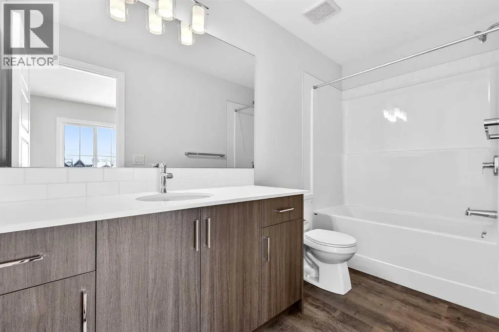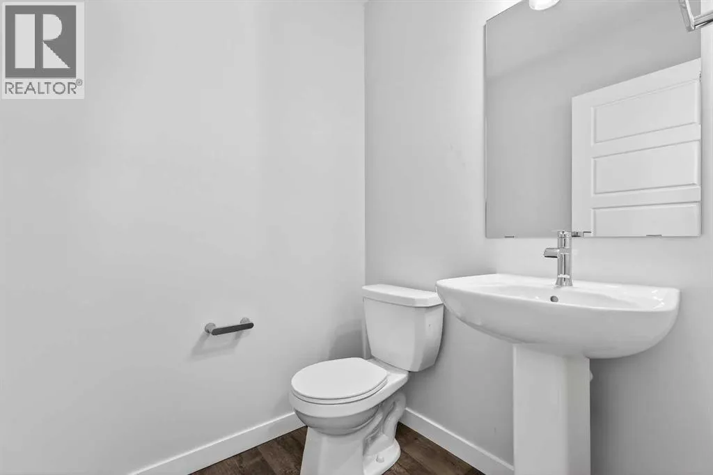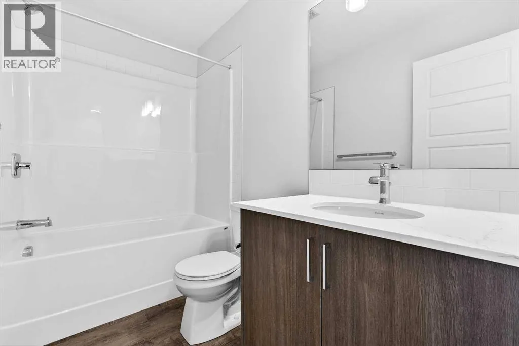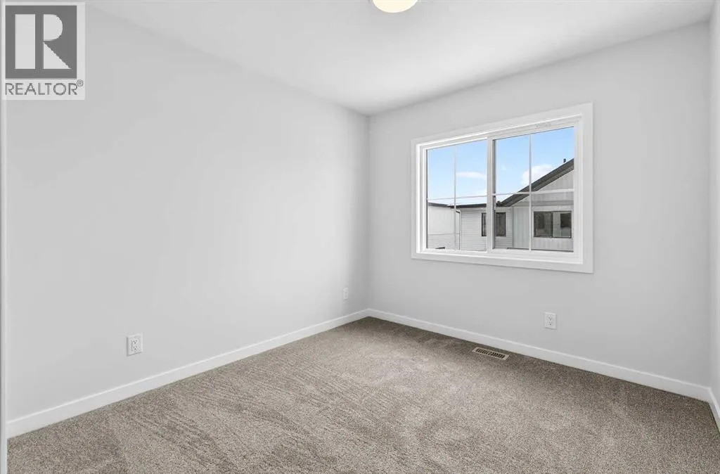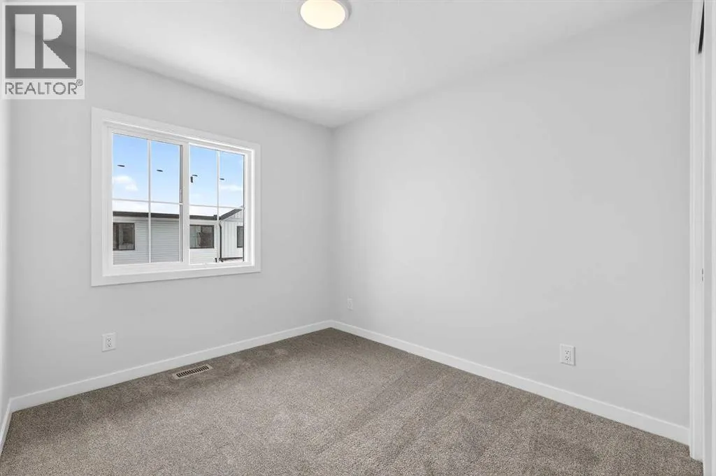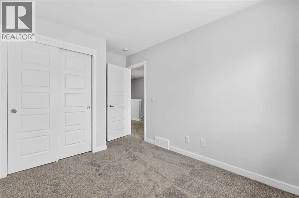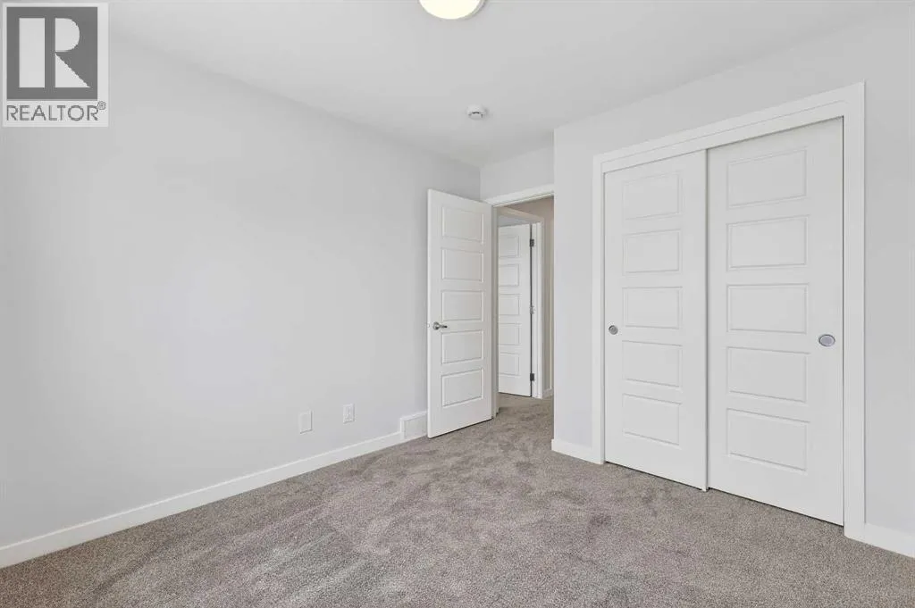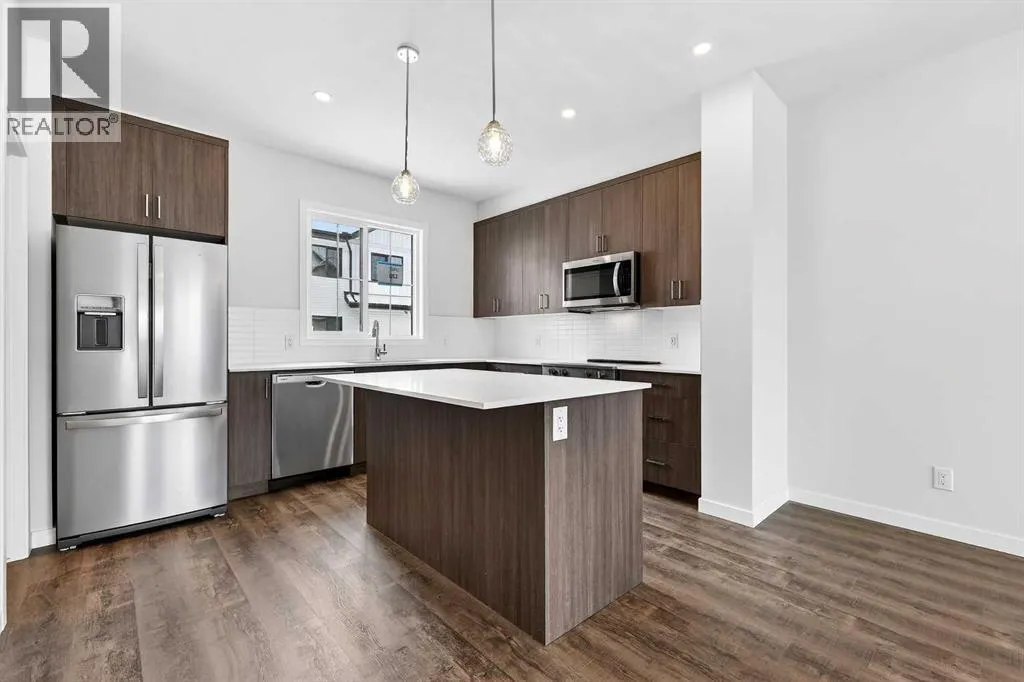 Open House this Saturday and Sunday from 12-5pm. Please go to the Show Home located at 1746 Rangeview Dr SE for access.StreetSide proudly presents this exceptionally popular interior-unit townhome, where expansive living areas meet modern comforts and sophisticated finishes. The thoughtfully designed floorplan features three spacious upper-level bedrooms and two and a half well appointed bathrooms, complemented by a versatile lower-level den perfect for a home office or quiet retreat. The heart of the home is an inviting open-concept main floor, anchored by a large gourmet kitchen featuring a functional breakfast bar for casual dining. This bright living space transitions seamlessly to a private balcony, offering a perfect setting for outdoor relaxation.The interior showcases high end craftsmanship, including modern dark slab-style cabinetry with a full bank of drawers for maximum storage. The kitchen is further elevated by polished white quartz countertops and a full suite of premium stainless steel appliances. Durable luxury vinyl flooring runs throughout the primary living areas, while the stairs and upper level are finished with plush carpet over an 8lb underlay for superior comfort. Additional conveniences include an attached double car garage and a lifestyle defined by maintenance free living and professionally maintained landscaping.Located in the vibrant community of Rangeview, Calgaryâs premier garden-to-table neighborhood, this home offers a unique balance of village-like serenity and urban convenience. The development centers around a lush courtyard garden, providing residents with unparalleled access to community gardens, educational programming through the Home Ownerâs Association, and year-round local markets. Enjoy the ease of proximity to local amenities and major routes while living in a master-planned community that celebrates connectivity and style. (id:27476)
