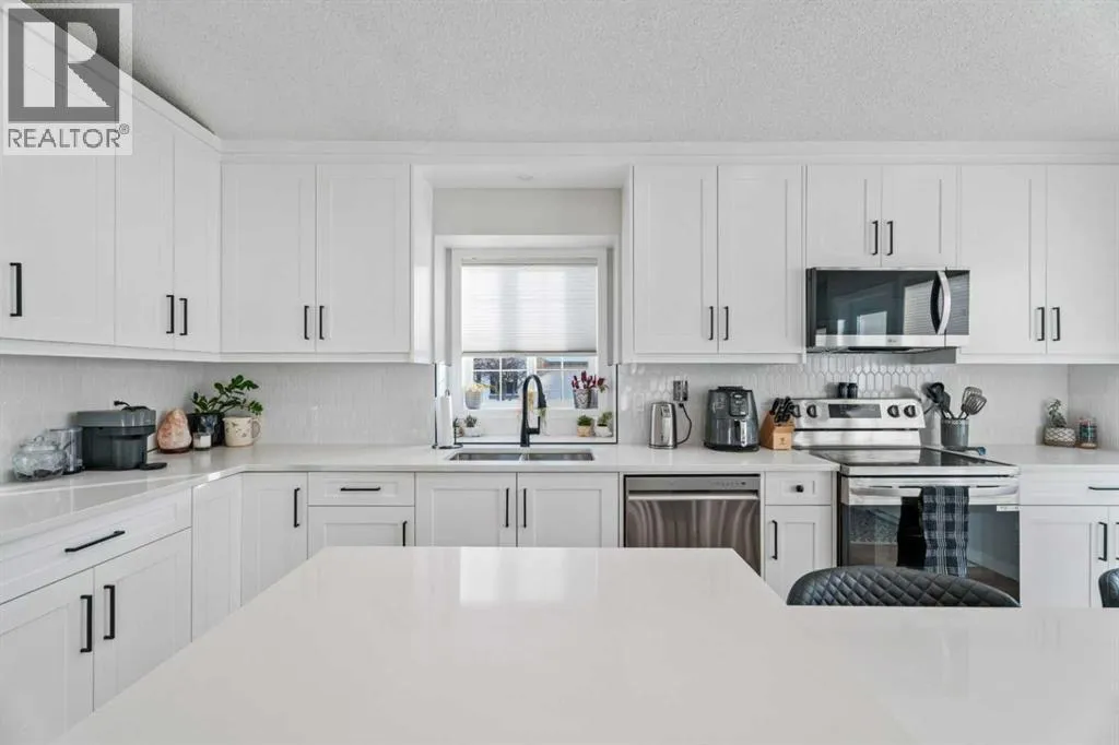Welcome to this beautifully updated 3-bedroom, 3-bathroom family home nestled in the highly sought-after Rocky Ridge community! Step inside and be greeted by a bright, open-concept living area featuring fresh paint throughout, brand-new luxury vinyl plank flooring, and all-new modern blinds that perfectly frame the large windows. The heart of the home â a stunning gourmet kitchen â boasts sleek quartz countertops, brand-new stainless steel appliances, soft-close cabinetry, and a spacious island perfect for casual meals or entertaining. All the bathrooms have been completely renovated with contemporary finishes, including new vanities, stylish tile work, and brand-new toilets for that fresh, move-in-ready feel, there is also a laundry room on the main floor with a newer washer & dryer. Comfort is guaranteed year-round with a brand-new high-efficiency furnace and brand-new central air conditioning. Additional recent upgrades include a convenient new natural gas line run directly to the backyard â ready for your dream BBQ setup. The fully finished basement offers a huge recreation room, the third bedroom (or ideal home office/guest suite) and plenty of storage. Outside, enjoy the west facing private fenced backyard with a large deck, mature trees, and plenty of room for kids and pets to play. The attached double garage, extra-wide driveway, and quiet location add the finishing touches to this turn-key property. With every major system recently replaced or upgraded â including the roof (2023), furnace, central AC, and more â this home truly offers worry-free living in a fantastic location close to parks, schools, shopping, and transit. Pride of ownership shines throughout â this one wonât last! Schedule your private showing today. (id:27476)