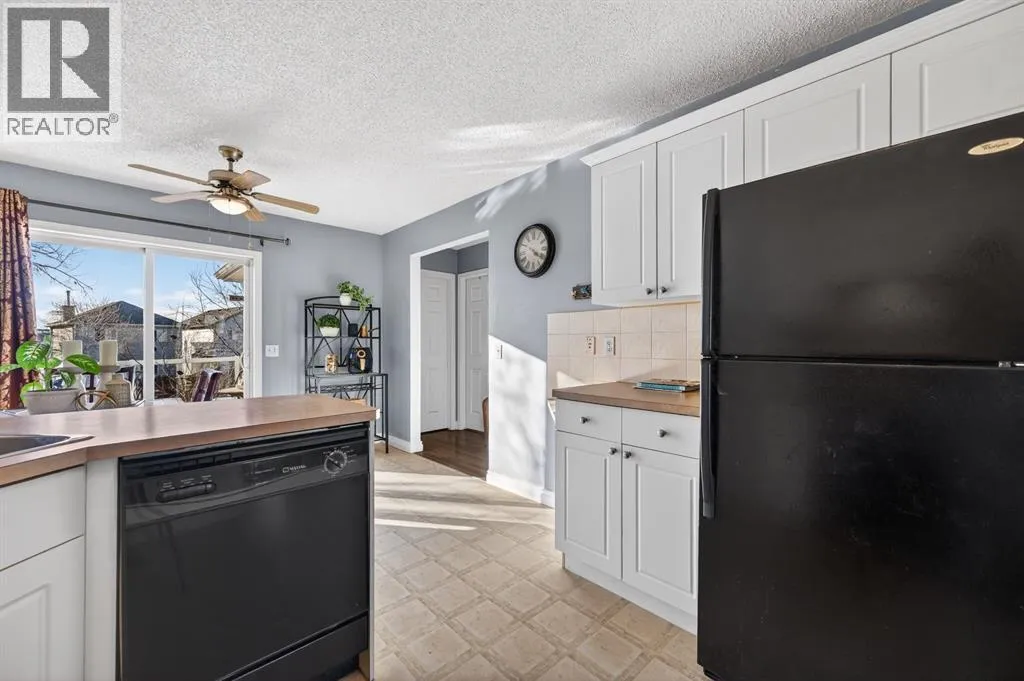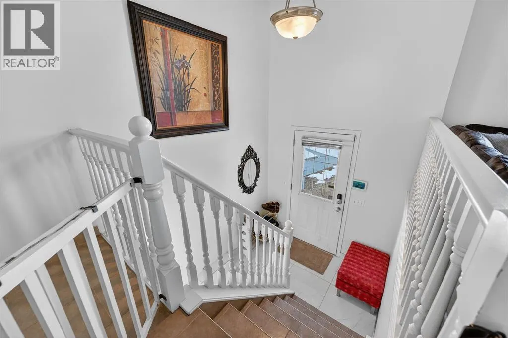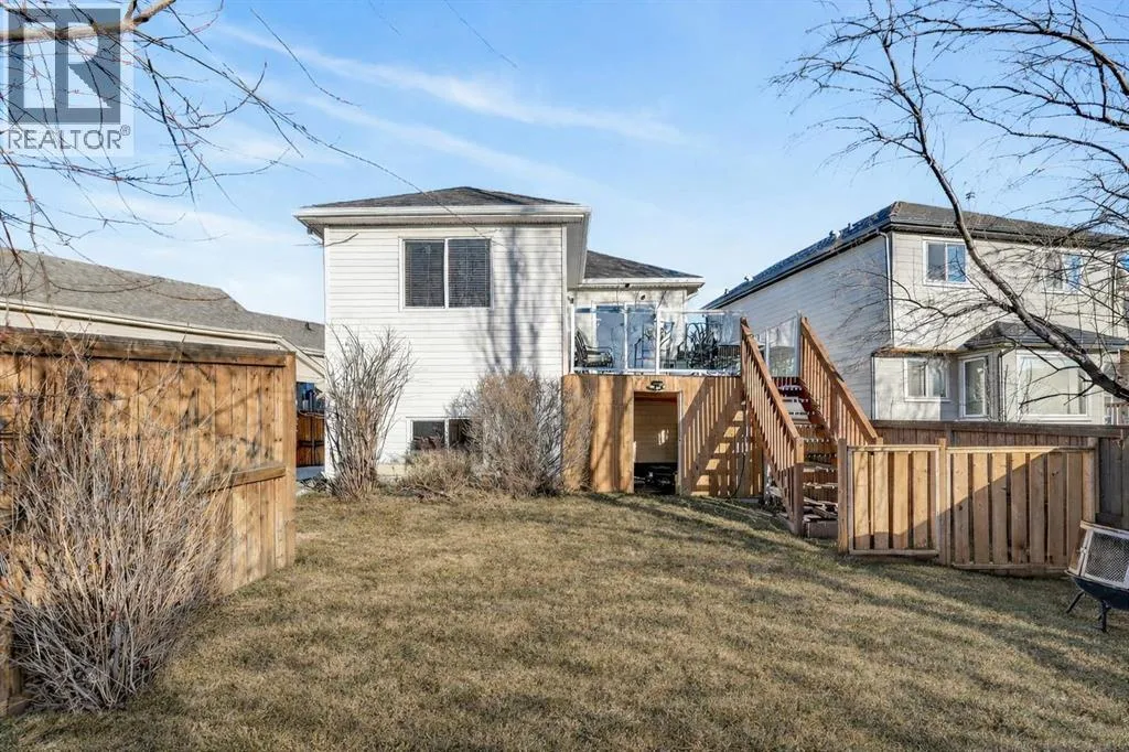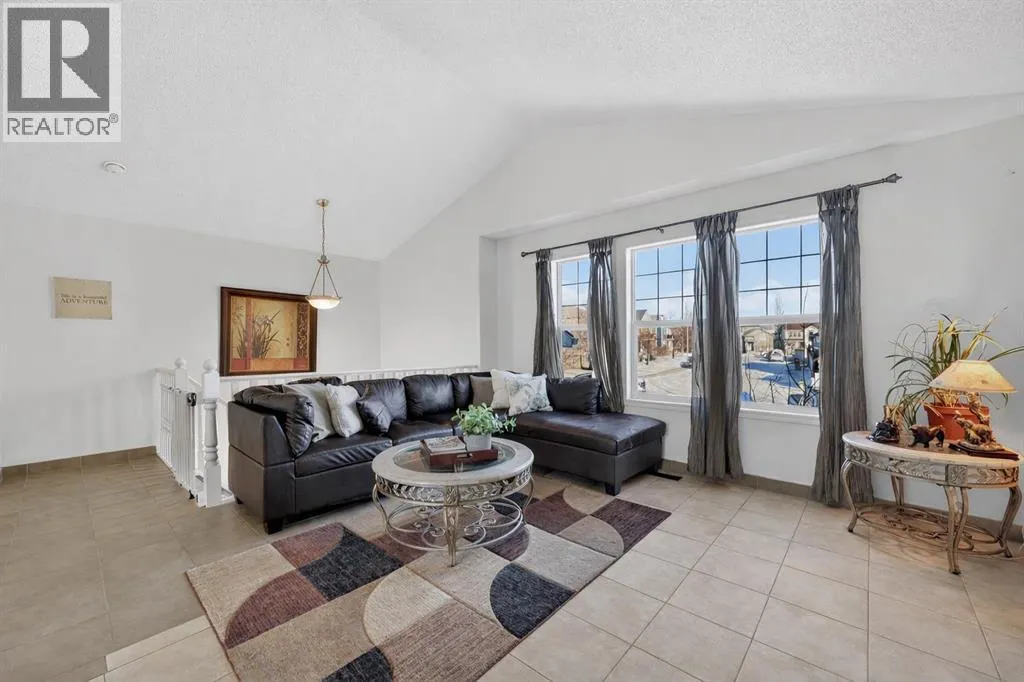 Welcome to this beautifully maintained bi-level home in the heart of Coventry Hills, offering over 1742 sq ft of thoughtfully developed living space on a spacious pie-shaped lot. This property is the perfect setting for first time buyers, young couples, or a growing family. From the moment you step inside, soaring vaulted ceilings create a bright, airy feel and an impressive first impression. Large west facing windows flood the main living space with natural light, making the home feel warm and inviting all day long. The living room is anchored by a stunning gas fireplace with a stone surround, the perfect place to unwind after a long day. The main level is as functional as it is stylish and inviting. The well equipped kitchen features ample counter space, black appliances, and a generous dining area designed for hosting friends and family. Whether itâs casual weeknight dinners or weekend gatherings, this space truly brings everyone together. This level also hosts two spacious bedrooms, including the primary bedroom with ample closet space. A full 4-piece bathroom is conveniently located just adjacent to the bedrooms, creating a practical and comfortable layout for everyday living. The lower level truly feels like an extension of the home rather than a basement, thanks to the bi-level design and large windows. Here youâll find a spacious recreation room with endless possibilities, family movie nights, a playroom, home gym, or games area. This lower area also features two additional bedrooms and a full bathroom, laundry room and additional storage space. The flexible layout in this design is ideal for a home office, guest space, or growing children who need room to spread out. Tile and laminate flooring run throughout, and numerous recent updates make this home move in ready. Step outside to enjoy the beautifully maintained yard, complete with a deck, staircase to the lower yard, and convenient storage tucked beneath the stairs. The large pie shaped lot offers incr edible outdoor space, perfect for summer barbecues, kids and pets to play, or simply relaxing in the sunshine. Located just minutes from shopping, parks, schools, and Vivo for Healthier Generations, one of Calgaryâs premier recreation facilities. This home also offers excellent access in and around the city and convenient access to transportation. Coventry Hills remains one of Calgaryâs most sought after family-friendly communities. Bright, spacious, and perfectly located, this is a home you can truly grow or downsize into. (some photos have been digitally altered for virtual staging) (id:27476)