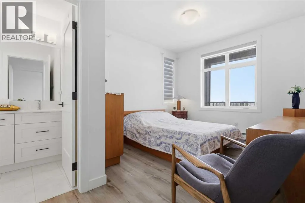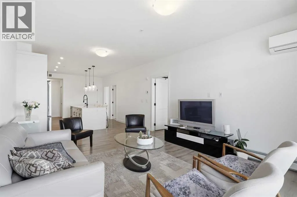Welcome to Unit 314 at 20 Sage Hill Walk NWâa bright and spacious corner unit offering 971 Sq.Ft. of upgraded living space in the heart of Sage Hill. With nearly 1,000 Sq.Ft., 9-ft ceilings, and large windows throughout, this home is filled with natural light and feels exceptionally open and inviting.The upgraded kitchen is a true standout, featuring thicker quartz countertops, an extended island, under-cabinet lighting, and a full built-in appliance package including a cooktop, wall oven, built-in microwave, and chimney-style hood fanâcreating a sleek, integrated look that perfectly complements the modern design.The open-concept layout flows seamlessly into the living and dining areas, making it ideal for both entertaining and everyday living. Step outside onto the private balcony and enjoy the fresh air, while air conditioning keeps the home comfortable during warm summer months. Custom window coverings throughout the unit are included, adding both style and functionality.The primary bedroom retreat offers a large walk-in closet and a beautiful ensuite featuring dual sinks and a tiled shower. A generously sized second bedroom and full 4-piece bathroom provide flexibility for guests, family, or a home office. Youâll also appreciate the convenient mudroom-style entry with a closet for shoes and storage, along with a stacked washer and dryer.Additional highlights include titled underground parking and a well-maintained building in a highly desirable location.Situated just steps from Sage Hill Crossing and Sage Hill Quarter, youâll enjoy incredible convenience with Starbucks, T&T Supermarket, Walmart, Chipotle, Tim Hortons, The upgraded kitchen is a standout feature, showcasing thicker quartz countertops, an extended island, under-cabinet lighting, and a sleek built-in appliance package including a cooktop, wall oven, built-in microwave and chimney-style hood fan. The modern open-concept layout flows seamlessly into the living and dining areas, creating the perfect space for entertaining or relaxing.Step outside onto the private balcony and enjoy the fresh air, while central air conditioning keeps the interior comfortable year-round.The primary bedroom retreat offers a large walk-in closet and a beautiful ensuite with dual sinks and a tiled shower. A spacious second bedroom and full 4-piece bathroom provide flexibility for guests, family, or a home office. Youâll also appreciate the convenient mudroom-style entry with a closet, plus stacked washer and dryer for added functionality.Additional highlights include titled underground parking and a well-maintained building in a highly desirable location.Situated steps from Sage Hill Crossing and Sage Hill Quarter, youâll have Starbucks, T&T Supermarket, Walmart, Chipotle, Tim Hortons, restaurants, and everyday amenities all within walking distance.A rare opportunity to own a bright, upgraded corner unit with exceptional space and convenienceâthis one truly must be seen in person to be fully appreciated. (id:27476)